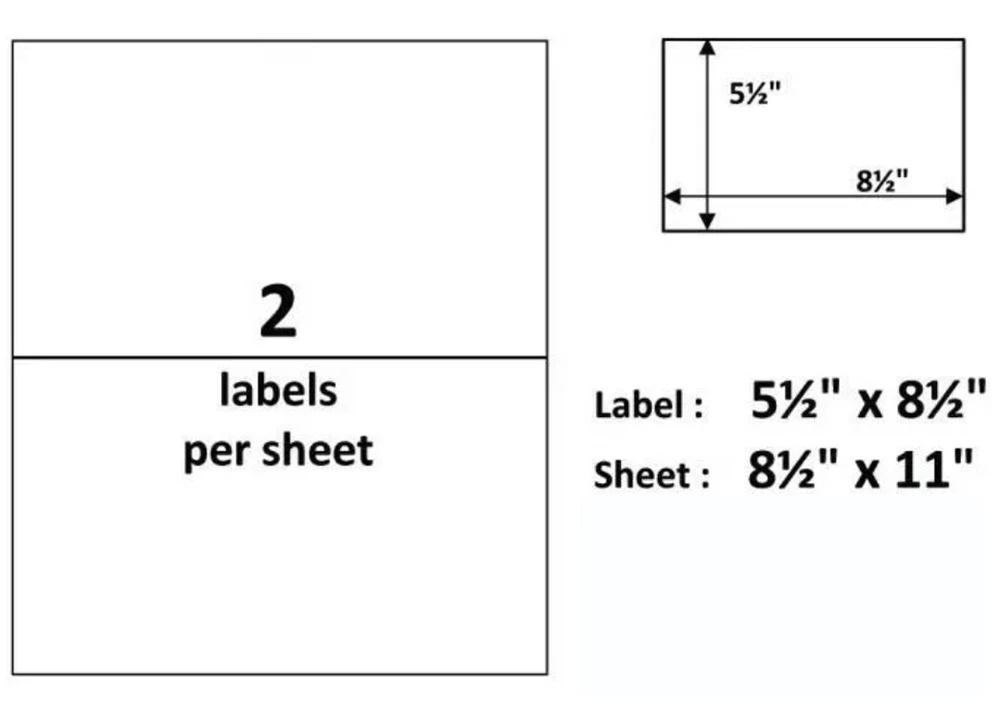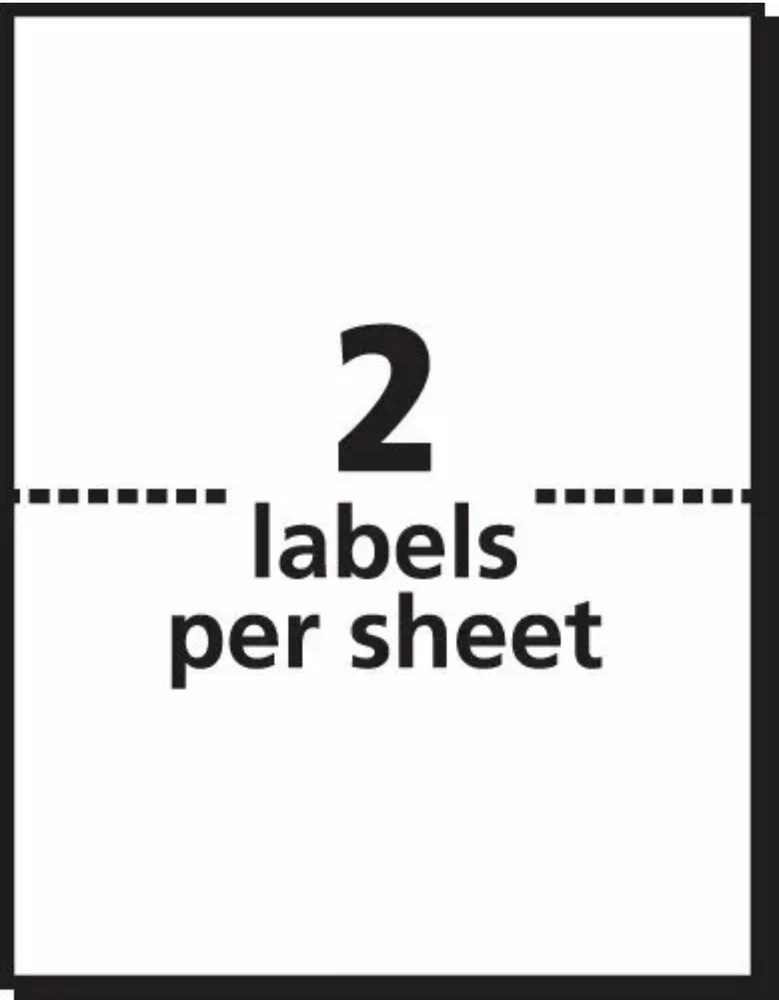 Self Adhesive Shipping Labels 2 on 8.5x11 Sheet USPS, UPS, FedEx, DHL + HIGH QUALITY LABELS MADE IN THE USA 25 Pages of Shipping Labels @ 2 Per Sheet 50 total labels Sheet size = 8.5" x 11" Each label is 8.5" X 5.5" self-sticking easy peel and removes easily from the wax lined backing sheet NO FRAME AROUND LABELS EACH LABEL IS 1/2 SHEET Label Paper Thickness .18mm They will work with all the major shippers: USPS, UPS, Fed Ex, DHL. These labels work with most ink-jet and laser printers. The manufacturer could not possibly test them on every laser printer out there . I GLADLY ship to APO/FPO addresses and INTERNATIONALLY, to any place a U.S. citizen can legally ship to; however, it is the customer's obligation to know and work within their country's customs/import laws. MY MOTTO: TREAT and DEAL WITH OTHERS as I WANT TO BE TREATED AND DEALT WITH. If I make a mistake, and I am human so I will, I'll try to make things right by my customer where possible and within a reasonable time frame. We DO NOT refund for shipping & handling on refund or exchange except where the item is either defective or significantly not as described. We will replace items, whenever possible, if damaged in shipping but you MUST email us with pictures of both the damaged, or non-damaged, shipping container AND the damaged item. No refund or replacement without this. SUGARAVENUE CREATIONS & COLLECTIBLES We sell a wide range of items. I try to research everything as fully as possible from as many sources as time and energy permit. However, I do not claim to be an expert in most things that I sell as it would be impossible to be an expert in everything. I always welcome more information from those who know more about an item. I respect all copyright laws, customs laws and other applicable laws where commonly known. Thank You!!