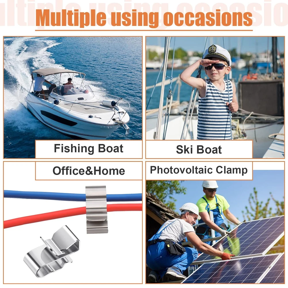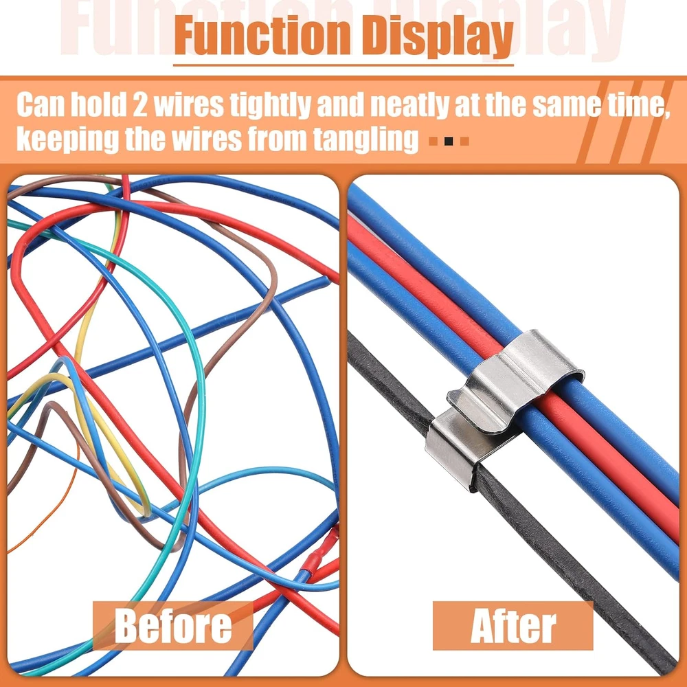 Abundant in quantity: the package comes with 50 pieces of trailer wire clips, can be widely applied in your daily life, sufficient for your using demands; With such a large quantity, you can also share the wire clips for trailer with your family members or friends generously, bringing them lots of convenience Reliable workmanship for lasting service: made of quality stainless steel, the double wire stainless steel clips are sturdy in structure, well polished with no pointed edges, hardly fading or rusting; Moreover, the wire clamps for electric wires adopt barbed and curved design, can hold 2 wires tightly and neatly at the same time, not easy to falling off, keeping the wires from tangling Compact and portable: the trailer clips are designed with a total length of approx. 22.5 mm/ 0.89 inches, convenient for you to store them and carry around; The applicable cable diameter of the trailer light clips ranges from approx.6 mm/ 0.24 inches to approx. 6.5 mm/ 0.26 inches, can be applied to panels that are approx. 1.3 mm/ 0.05 inches to approx. 2.5 mm/ 0.1 inches in width Convenient to apply: you can finish installing the wire panel clips in a few seconds, just clip them on targeted positions by hand, no tools or instructions needed, not occupying too much time and energy; To manage your wires, you just need to clip them on the wire frame clips, 2 wires for each clip, and it's also easy for you to remove them, leaving no traces on your panels or wires Multiple using occasions: there is a wide range of occasions for the wire harness clips, for example, you can apply the trailer wiring harness clips to kayaks, fishing boats, trailers, workbenches, offices and more, helping you organize your wires and cables, thus keeping them tidy, saving you space Product Description Reliable workmanship for lasting service Great for hiding and protecting wires or keeping wire harnesses in place. Zhengmy Trailer Wiring Clips Do you annoy that the wires are loose and scatter around? Do you annoy that it is hard to find the clips separately? The clips will help you solve the problem. It will help you better hold the wire to the boat or trailer frame. Reliable workmanship for lasting service Compact and portable Convenient to apply Multiple using occasions