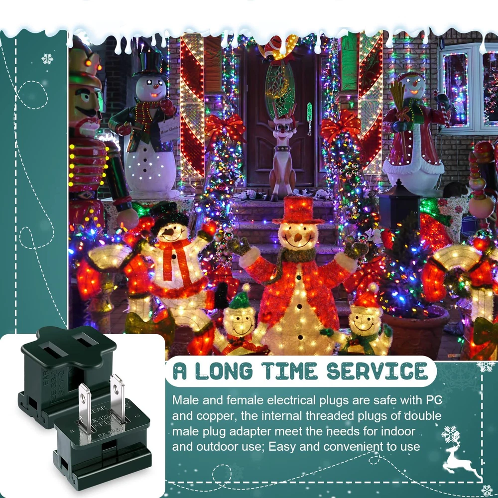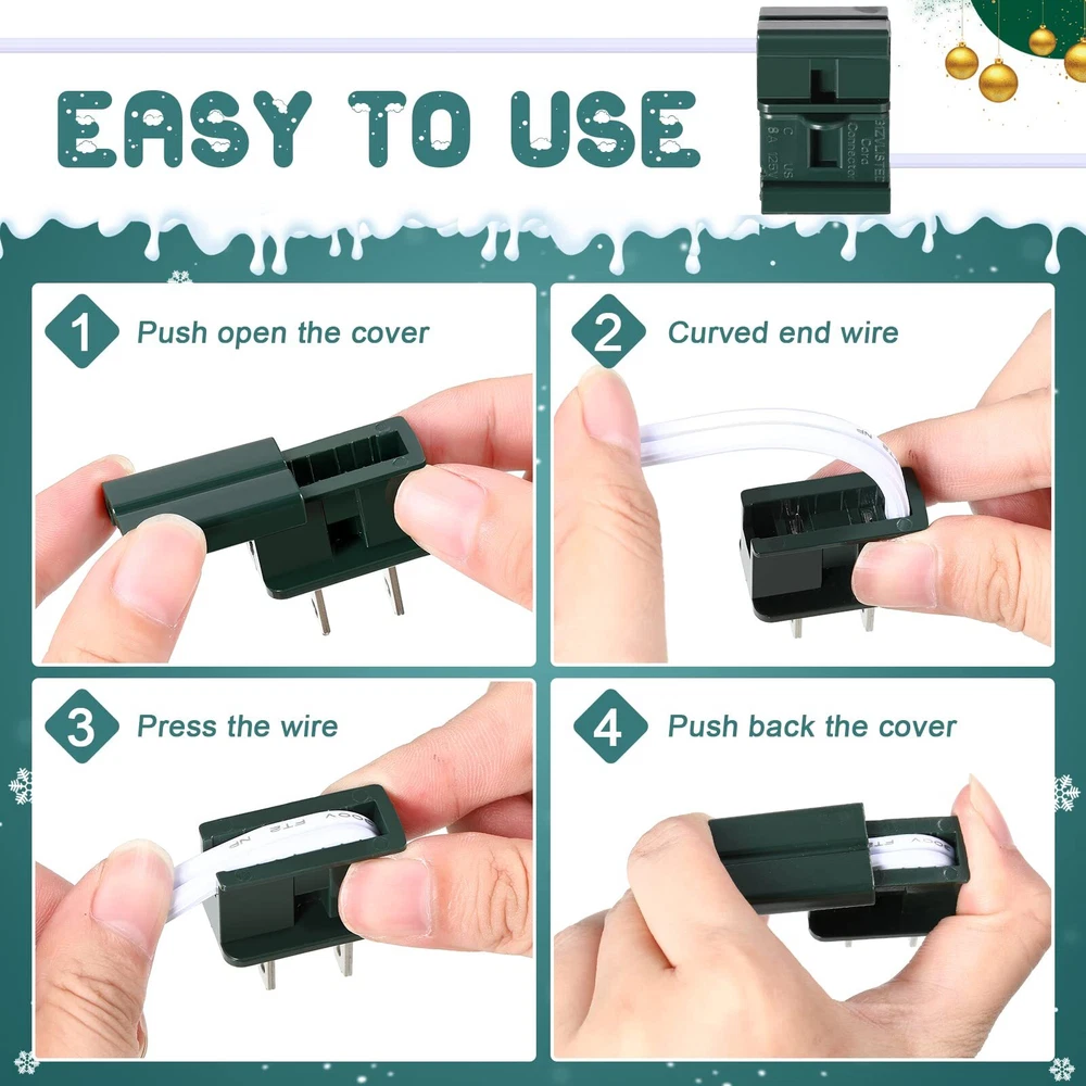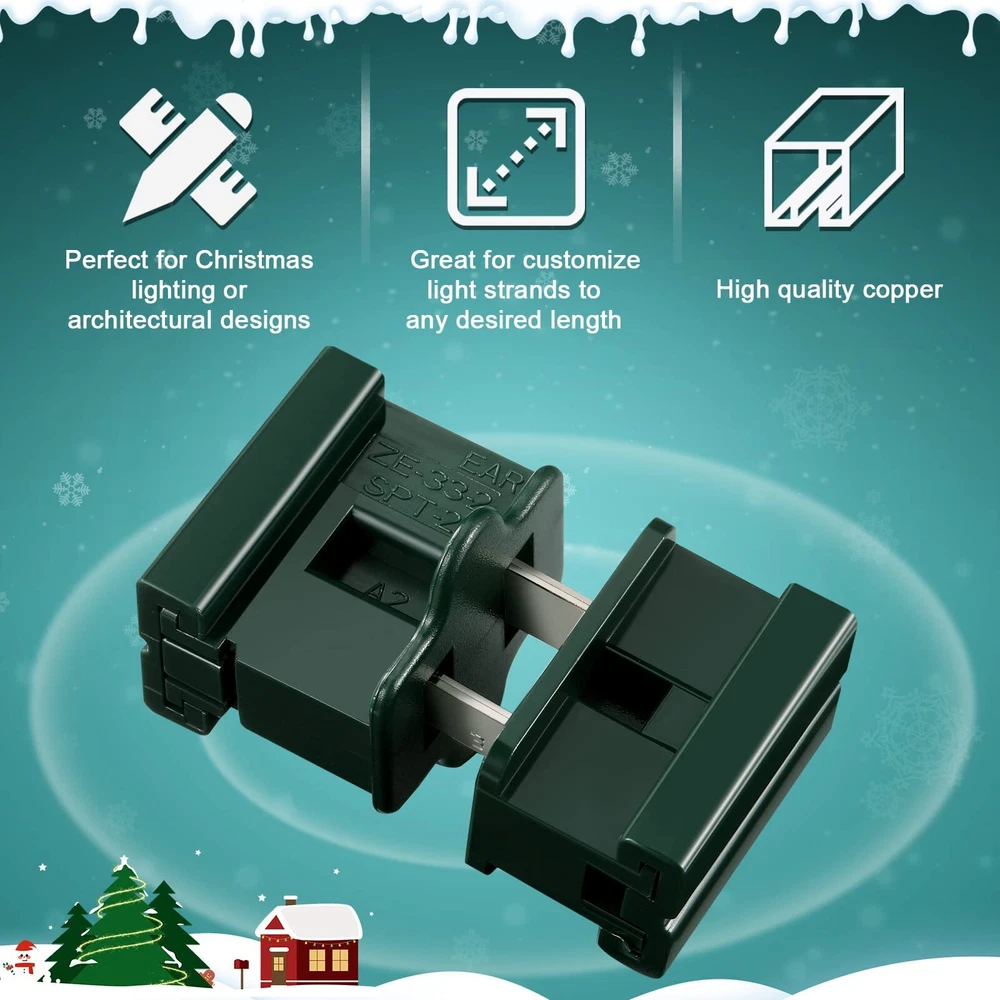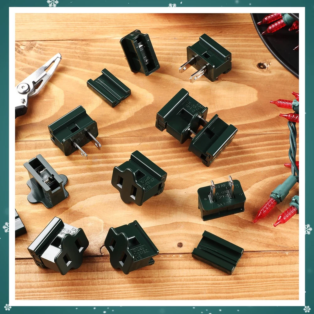 Features: Suitable for: Capable of 6 amps/ 125 volt. Simple to use: Suitable for customizing any length of light silk, cut the wire to the desired length, then slide the wire top clip into the plug to engage the wire. Suitable for Christmas and others: The male and female connectors are nice Christmas complements to lighting and architectural design. Add to the custom run to provide power. Specifications: Material: PC and copper Color: green Size: moderate size/ capable of 6 amps/ 125 volt Package includes: 25 x Green female plugs 25 x Green male plugs Notes: Manual measurement, please allow slight errors on size. The color may exist slight difference due to different screen displays. Pointed parts included, please keep away from little kids. Suitable for Daily Use: you will receive 25 pieces of male and 25 pieces of female Christmas light plugs, enough for you to use and replace at Christmas or in your daily life, and you can also share them with others A Long Time Service: male and female electrical plugs are safe with PC and copper, the internal threaded plugs of double male plug adapter meet the needs for indoor and outdoor use; Easy and convenient to use Simple Operation: this electrical plug is suitable for customizing light wires of any length; You can cut the wire to the desired length and then slide the clip on the top of the wire onto the plug, to make the wire join Versatile Usage: the green male and female electrical plugs suitable for daily use, and bring convenient to you; They are also fit for Christmas lights, to provide electricity; Enjoy your Christmas holidays Size Information: the male slip plug has proper size, which is easy and convenient for you to apply; You can use them if you want, just remember they are capable of 6 amps/ 125 volt; Just attach a plug where you need it