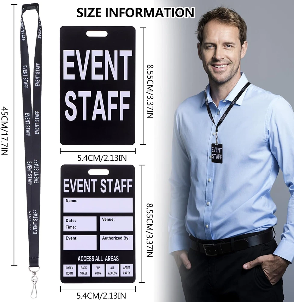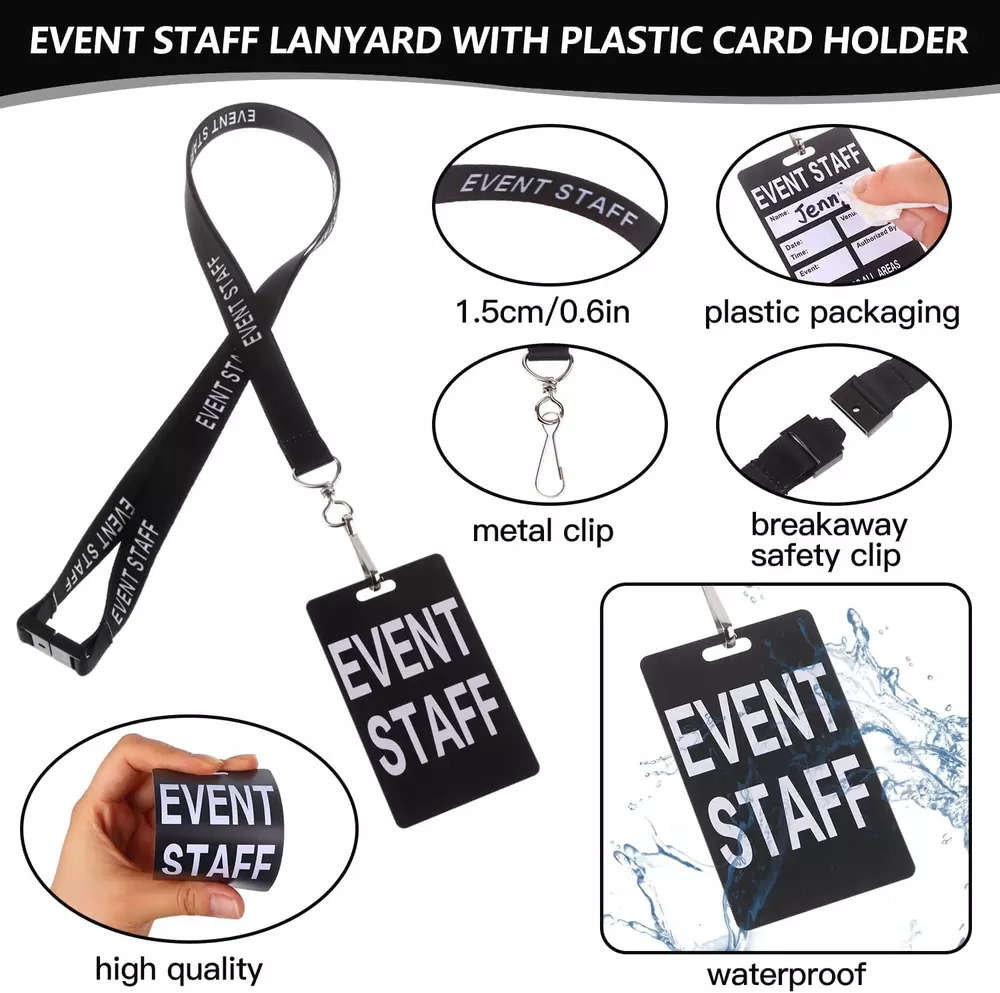 Package Includes: you will get 50 pcs of event staff passID cards and 50 pcs black lanyards.Sufficient quantities to meet your daily needs. High-quality material: The event staff badge with lanyard is made of PVC material, which is not easy to break and deform. And the lanyard with metal buckle is made of polyester, which is soft and wear-resistant, not easy to fade and can be used repeatedly for a long time. Appropriate size:The size of each event staff plastic badge is about 85.5x54mm/3.37x2.13 inches, the appropriate size is convenient for you to carry around without taking up too much space. The length of the lanyard is about 17.72 inches (the size after being folded in half) to fit most people. Reusable: Event staff cards are durable and suitable for long-term repeated use; you can write your name, event date, event name, visiting area, etc. on it. Erase information after use to continue reuse. Both the name badge and lanyard are in bold yellow to quickly help others identify the event staff. Wide Application: The event staff lanyard with badge is suitable for schools, fundraisers, parties, churches, summer camp staff, companies, event guides or other occasions. Keep your company and your party safe by identifying things like names. Product Description