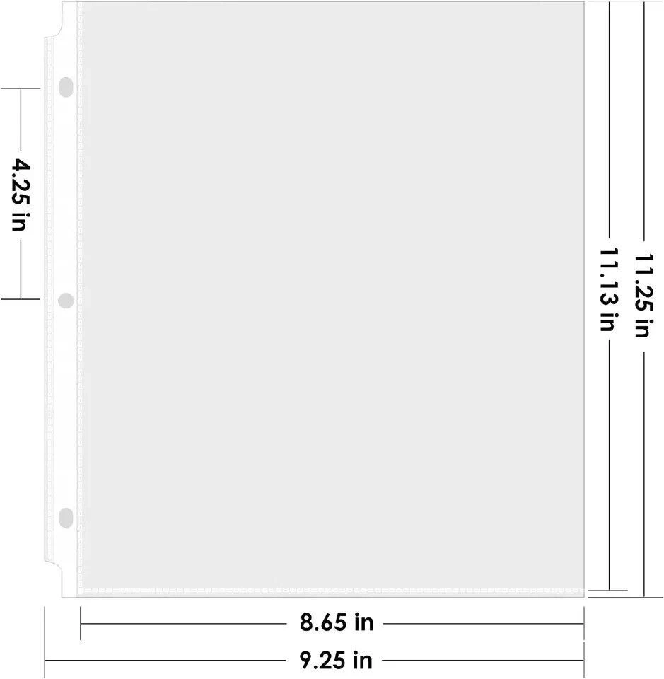 50 Sheet Protectors, 8.5 X 11 Inch Clear Page Protectors for 3 Ring Binder, 50 Sheet Size Letter Number of Items 50 Color Clear Material Polypropylene (PP) Material Type Polypropylene (PP) Manufacturer Part Number -sheet protector004 Style 50 Pack Item Weight 10.72 ounces Product Dimensions 11 x 8.5 x 0.1 inches Size 8.5 x 11 in 8.5 inches x 11.0 inches x 0.1 inches. Weight: 10.72 oz ITEM DESCRIPTION Document Protection: Each 9.25 x 11.25 inch paper protector can hold 8.5 x 11 inch letter size paper, 50 pack. 2 sheets of paper can be placed in one pocket. Easy Access Top Loading: Pape protectors are for easy top loading, the sleeves are nonstick. Your document is easy to put in the take out, and it is writable for daily use, great for your office and school supplies. Crystal Clear Visibility: The 3 hole sheet protectors are super clear for you to read the document words and images. And Also provide good visibility. The document and photo will not fade, you can store them for a long time. Durable and Sturdy: Made of premium quality polypropylene, PVC free, reinforced edges, fit for standard 3 ring binder. No tear or damage over time. We provide good customer service, any quality issues, please feel free to contact us. Versatile and Practical: The paper protector is ideal for keeping and organizing recipes, photos, important documents, certificates, and music sheets. Sheet Size Letter Number of Items 50 Color Clear Material Polypropylene (PP) Material Type Polypropylene (PP) Manufacturer Part Number -sheet protector004 Style 50 Pack Item Weight 10.72 ounces Product Dimensions 11 x 8.5 x 0.1 inches Size 8.5 x 11 in 8.5 inches x 11.0 inches x 0.1 inches. Weight: 10.72 oz ITEM DESCRIPTION ---Document Protection: Each 9.25 x 11.25 inch paper protector can hold 8.5 x 11 inch letter size paper, 50 pack. 2 sheets of paper can be placed in one pocket. ---Easy Access Top Loading: Pape protectors are for easy top loading, the sleeves are nonstick. Your document is easy to put in the take out, and it is writable for daily use, great for your office and school supplies. ---Crystal Clear Visibility: The 3 hole sheet protectors are super clear for you to read the document words and images. And Also provide good visibility. The document and photo will not fade, you can store them for a long time. ---Durable and Sturdy: Made of premium quality polypropylene, PVC free, reinforced edges, fit for standard 3 ring binder. No tear or damage over time. We provide good customer service, any quality issues, please feel free to contact us. ---Versatile and Practical: The paper protector is ideal for keeping and organizing recipes, photos, important documents, certificates, and music sheets. 50 Sheet Protectors, 8.5 X 11 Inch Clear Page Protectors for 3 Ring Binder, 50 Sheet Size Letter Number of Items 50 Color Clear Material Polypropylene (PP) Material Type Polypropylene (PP) Manufacturer Part Number -sheet protector004 Style 50 Pack Item Weight 10.72 ounces Product Dimensions 11 x 8.5 x 0.1 inches Size 8.5 x 11 in 8.5 inches x 11.0 inches x 0.1 inches. Weight: 10.72 oz ITEM DESCRIPTION Document Protection: Each 9.25 x 11.25 inch paper protector can hold 8.5 x 11 inch letter size paper, 50 pack. 2 sheets of paper can be placed in one pocket. Easy Access Top Loading: Pape protectors are for easy top loading, the sleeves are nonstick. Your document is easy to put in the take out, and it is writable for daily use, great for your office and school supplies. Crystal Clear Visibility: The 3 hole sheet protectors are super clear for you to read the document words and images. And Also provide good visibility. The document and photo will not fade, you can store them for a long time. Durable and Sturdy: Made of premium quality polypropylene, PVC free, reinforced edges, fit for standard 3 ring binder. No tear or damage over time. We provide good customer service, any quality issues, please feel free to contact us. Versatile and Practical: The paper protector is ideal for keeping and organizing recipes, photos, important documents, certificates, and music sheets. Sheet Size Letter Number of Items 50 Color Clear Material Polypropylene (PP) Material Type Polypropylene (PP) Manufacturer Part Number -sheet protector004 Style 50 Pack Item Weight 10.72 ounces Product Dimensions 11 x 8.5 x 0.1 inches Size 8.5 x 11 in 8.5 inches x 11.0 inches x 0.1 inches. Weight: 10.72 oz ITEM DESCRIPTION Document Protection: Each 9.25 x 11.25 inch paper protector can hold 8.5 x 11 inch letter size paper, 50 pack. 2 sheets of paper can be placed in one pocket. Easy Access Top Loading: Pape protectors are for easy top loading, the sleeves are nonstick. Your document is easy to put in the take out, and it is writable for daily use, great for your office and school supplies. Crystal Clear Visibility: The 3 hole sheet protectors are super clear for you to read the document words and images. And Also provide good visibility. The document and photo will not fade, you can store them for a long time. Durable and Sturdy: Made of premium quality polypropylene, PVC free, reinforced edges, fit for standard 3 ring binder. No tear or damage over time. We provide good customer service, any quality issues, please feel free to contact us. Versatile and Practical: The paper protector is ideal for keeping and organizing recipes, photos, important documents, certificates, and music sheets.
