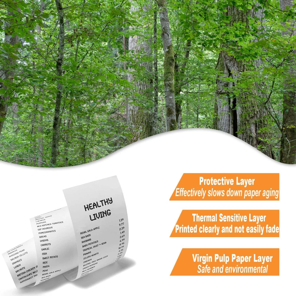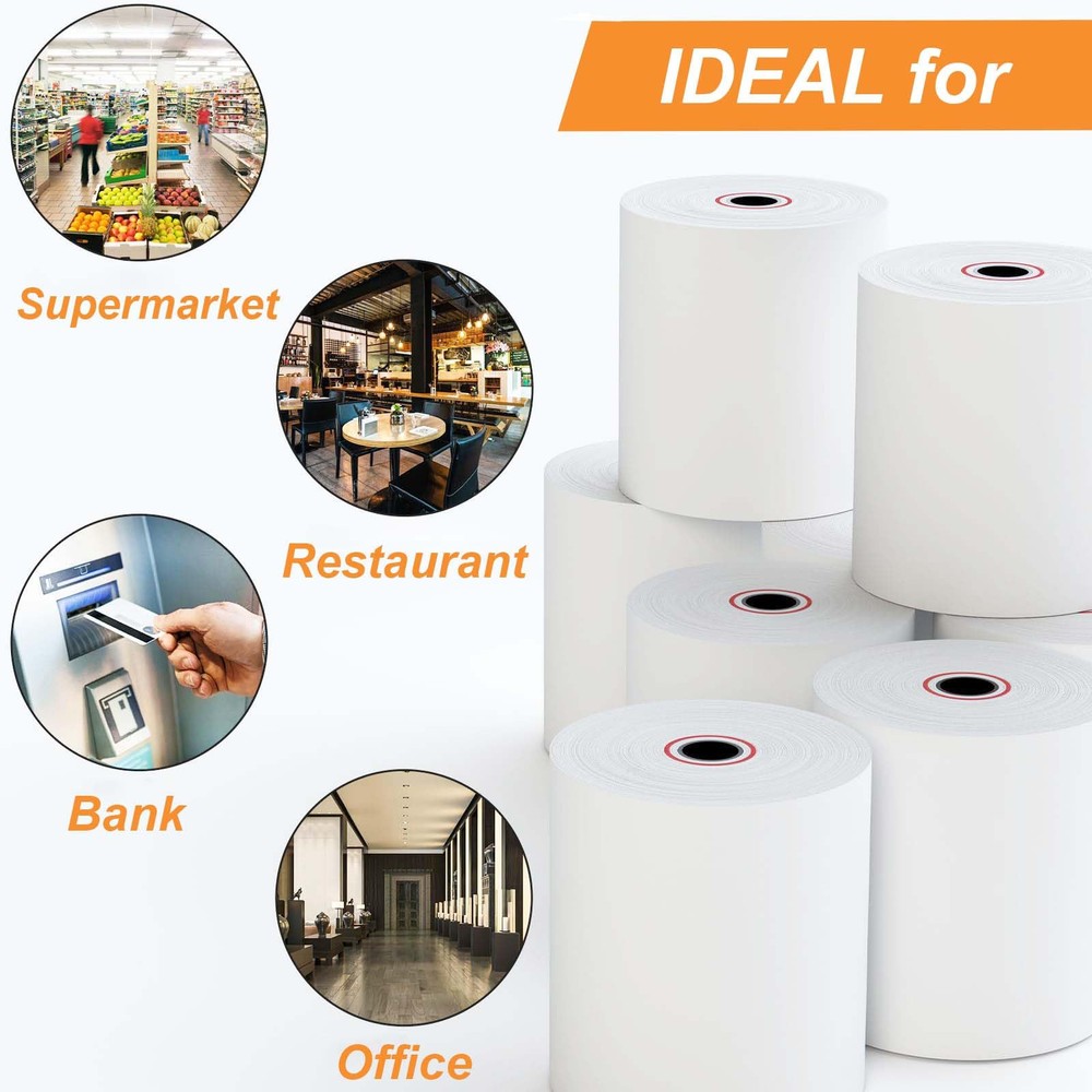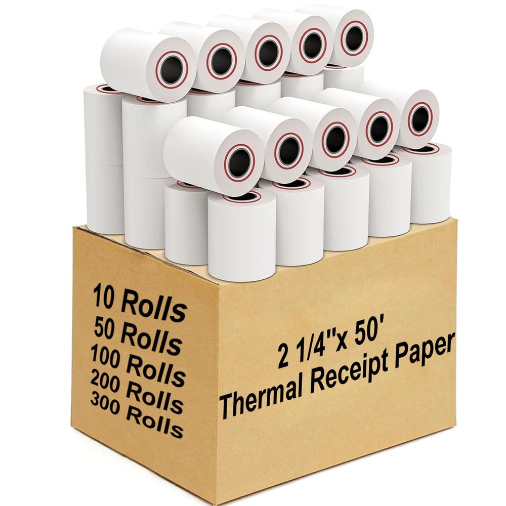 2 1/4" x 50' Thermal Cash Register Receipt Paper 100 Rolls per carton 1/2' Inner diameter core Top quality paper deliver crisp, clear images Each Paper Rolls has an end of warning signal All dimensions are measured manually with deviation (ranged)at 0.01-0.12 inch. If by any chance they are not, we are sorry for that.