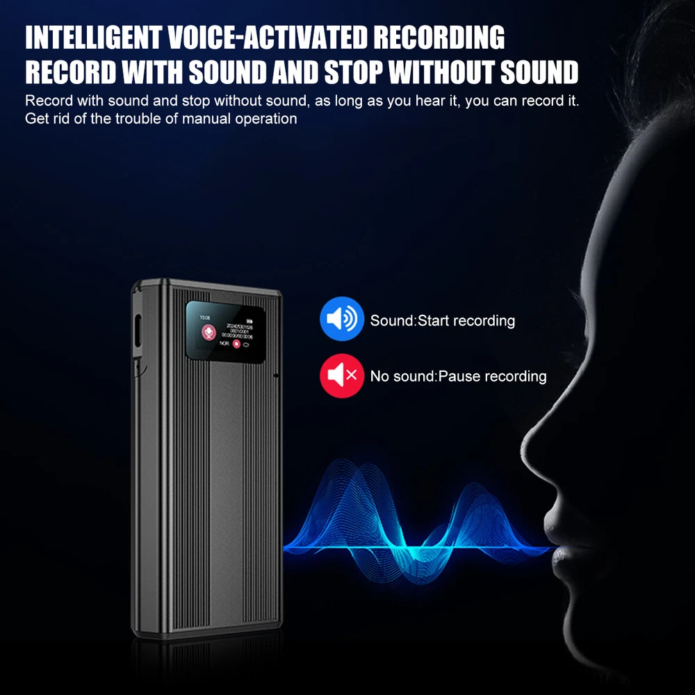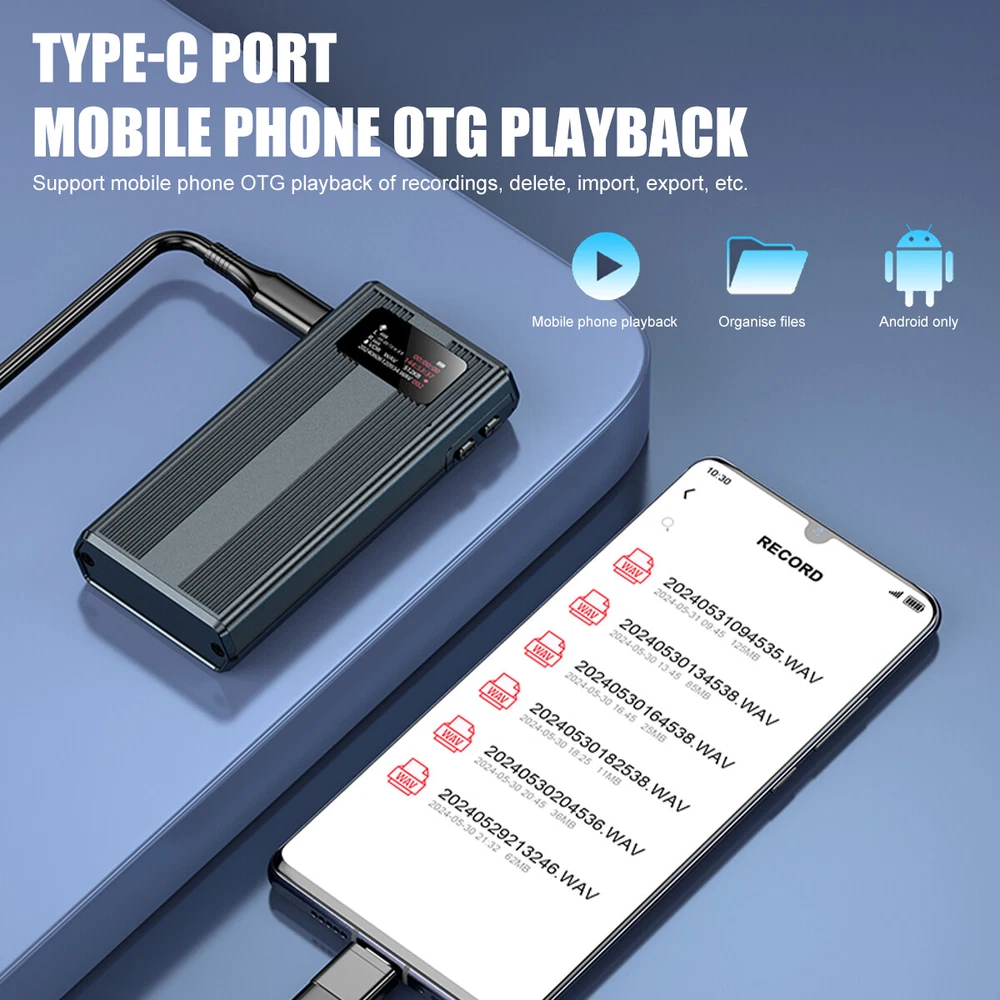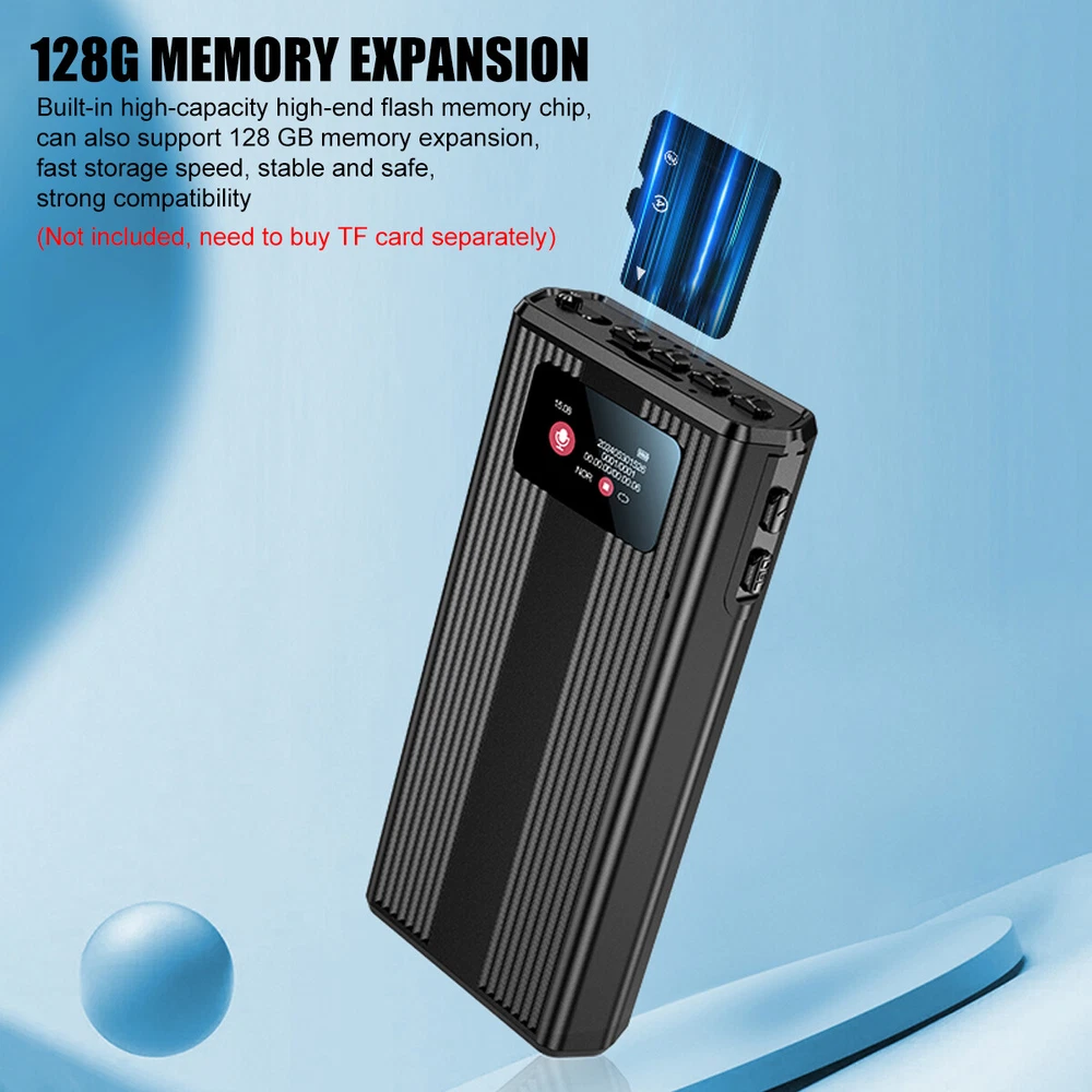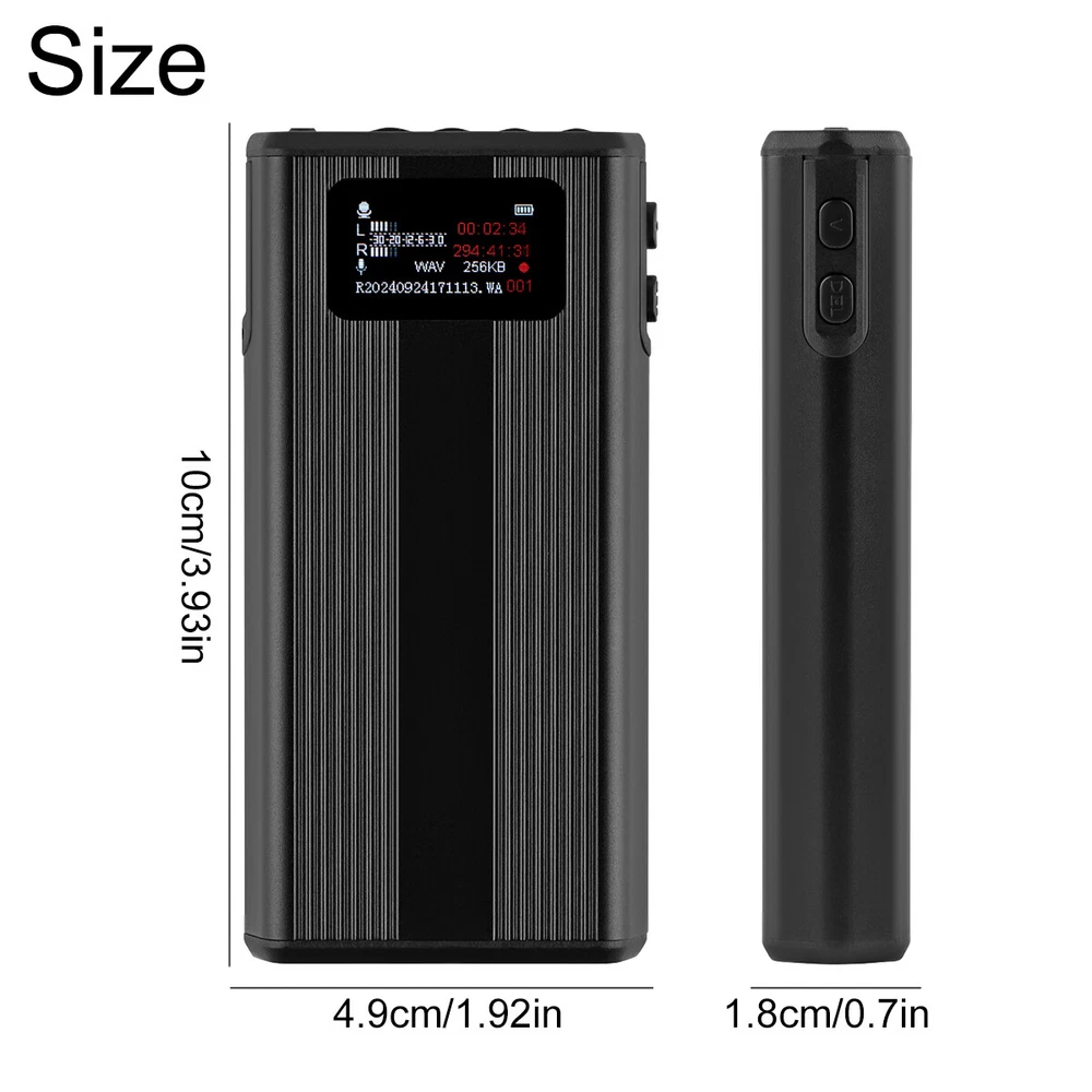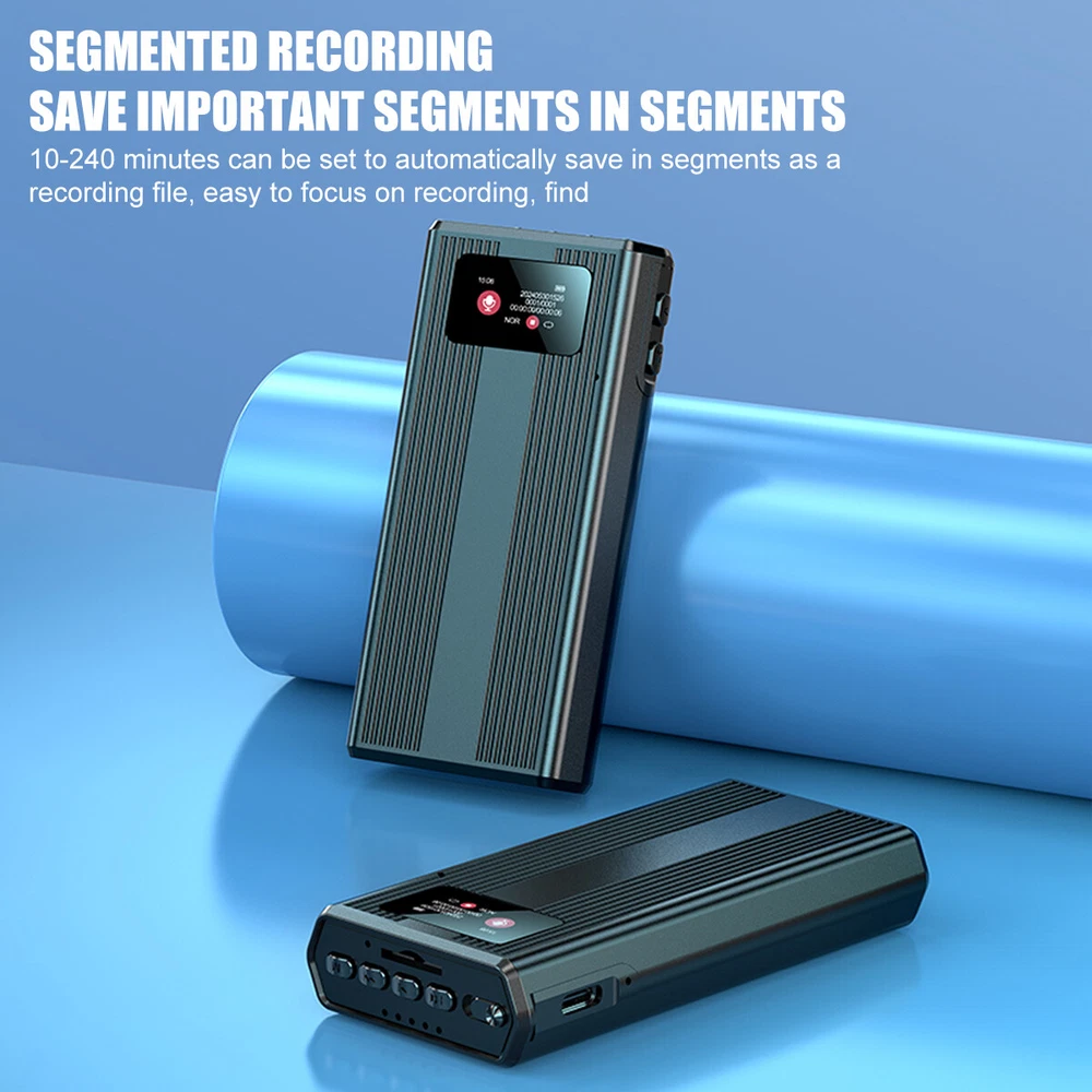 Product Description Product features: 1. 500-hour battery life: the built-in large-capacity battery of the recorder can record continuously for up to 500 hours after being fully charged, and it can be used for up to 180 days in standby, and it can play the recording continuously for 400 hours. The long battery life can avoid frequent charging and improve the use experience. 2. Upgrade screen display: product upgrade, increased operation screen display, real-time view of working status, simple menu and file browsing, and operation to delete files, etc. Compared with no screen model, the experience is greatly improved. 3. High-quality recording at 1536 kbps: The omni-directional array panoramic 6D surround stereo microphone is adopted to realize high-fidelity restoration of human voice, multiple optimization of environmental noise and mixed noise, adjustment of balanced sound quality, improvement of recording clarity, and adjustment of recording bit rate. 4. One-click recording and one-click saving: humanized toggle key design, one-click quick opening of recording, one-click quick saving of recording files, simple operation and no complicated learning process. 5. Support voice-activated recording: after the voice-activated recording mode is turned on, the recording starts when the sound is detected, and it automatically enters the standby state after the recording is completed, saving battery and storage space. 6. OTG connection of mobile phone: support OTG function to connect with mobile phone to transmit recording files, or import music files for use as MP3 music players. 7. Magnetic attraction: Built-in powerful magnet is attached to the surface of iron objects, which is suitable for various scenes. 8. File encryption function: you can set the power-on password. Without the password, you can't use it, you can't copy audio files, and protect important files from disclosure. 9. Built-in 32G memory, supporting 128G expansion: The product comes with 32G large-capacity memory, which can be used for recording for hundreds of hours at low bit rate. At the same time, it supports the expansion of 128G capacity memory card, large memory, and increases the recording time several times. Parameters: Material: metal Size: 100*49*18mm Product weight: 119g Functions: recording, playback, music playing, voice recording, etc. Display screen: 0.96 inch color screen Built-in storage: 32G Expandable storage: maximum support for 128G TF card (excluding). Duration: 500 hours of full-charge recording and 400 hours of playing. Standby time: 180 days Charging interface: Type-C Charging input: 5V 1A Recording folder: 999 files Recording format: WAV Recording sampling rate: 32/16/24/32/48KHz. Recording bit rate: WAV 256/512/768/1024/1536Kbps. Playback formats: MP3, WAV, WMA, APE, FLAC. Recording segmentation: 1GB saves a file by default. Distortion: > 70dB Microphone: Omni-directional capacitor MIC Headphone interface: Type-c stereo jack Working temperature: -10℃ ~ 40℃ OTG function: support Support for connecting computer systems: Windows XP & Vista/2K/Me/98 (Need to Install the Driver)/Mac OS 10/Windows 7/Windows 10. List of storage space, bit speed and time length: Product specifications 8 GB 16GB 32GB RecordingTime 256kbps About 72h About 144h About 288h 512kbps About 36h About 72h About 144h 768kbps About 24h About 48h About 96h 1024kbps About 18h About 36h About 72h 1536kbps About 12h About 24h About 48h Precautions: 1. Illegal use of products is prohibited. 2. Keep away from strong magnetic and electric fields. 3. Do not disassemble the product or replace the battery by yourself. Packing list: Recorder x1 USB charging line x1 Headphone x1 Headphone patch cord x1 Instruction x1 Payment Shipping Terms Returns Contact Us We accept PayPal only. If buyer want to delay the payment because of financial problem, please contact me by the ebay message within 3 days Payment via PayPal (PayPal accepts all major credits/debit cards and eCheque) ECheque payment will tak e 3-10 days to get clear, thus DELAYing the shipment. Handling time: 1 business day (Orders are not processed on weekends & holidays) Tracking information will be sent once item is shipped. Local pick-up is unavailable at the moment. For international shipping and shipping to Guam, Hawaii and Alaska, Please contact us before placing the order. Item is shipped to ebay address. Leaving correct address can minimize delay. For any issues with Defects, Return, Item Exchange request, please contact us first and send us a message first before opening any type of case or request. We devote ourselves making EVERY CUSTOMER in 100% Satisfactory and resolve any problem. We highly value and appreciate your business. Thank you. No returns will be accepted without an RMA number. Please contact us for the RMA number. Return is acceptable within 30 days of delivery. Return for replacement or money back is optional. Returned items must be in the brand new, unaltered and resalable condition. Seller is not responsible for any labor cost, expense in a dealer store, or damage due to wrong installation. Return is accepted within 14 days after the buyer's receiving the item. (Excluding contrived damagement or misusage).100% money-back Guaranteed! All product will be tested in 100% before delivery.If the item is defected by the processing of postage,Buyer has up to 14 days from date of receipt for exchange of a new one.All shipping charges for returned products are to be paid by the buyer,Please contact us for the return address All messages will be answered within 24 office hours. Please contact us either by clicking "contact seller" in the "purchase history" section or simply click "ask a question" at the bottom of this page. If you are unsatisfied with our item or service, please contact us before leaving any feedback. We are committed to resolve all issues in a friendly and satisfactory manner. We always reply to messages within 2 business days (off-duty at weekend). If yo