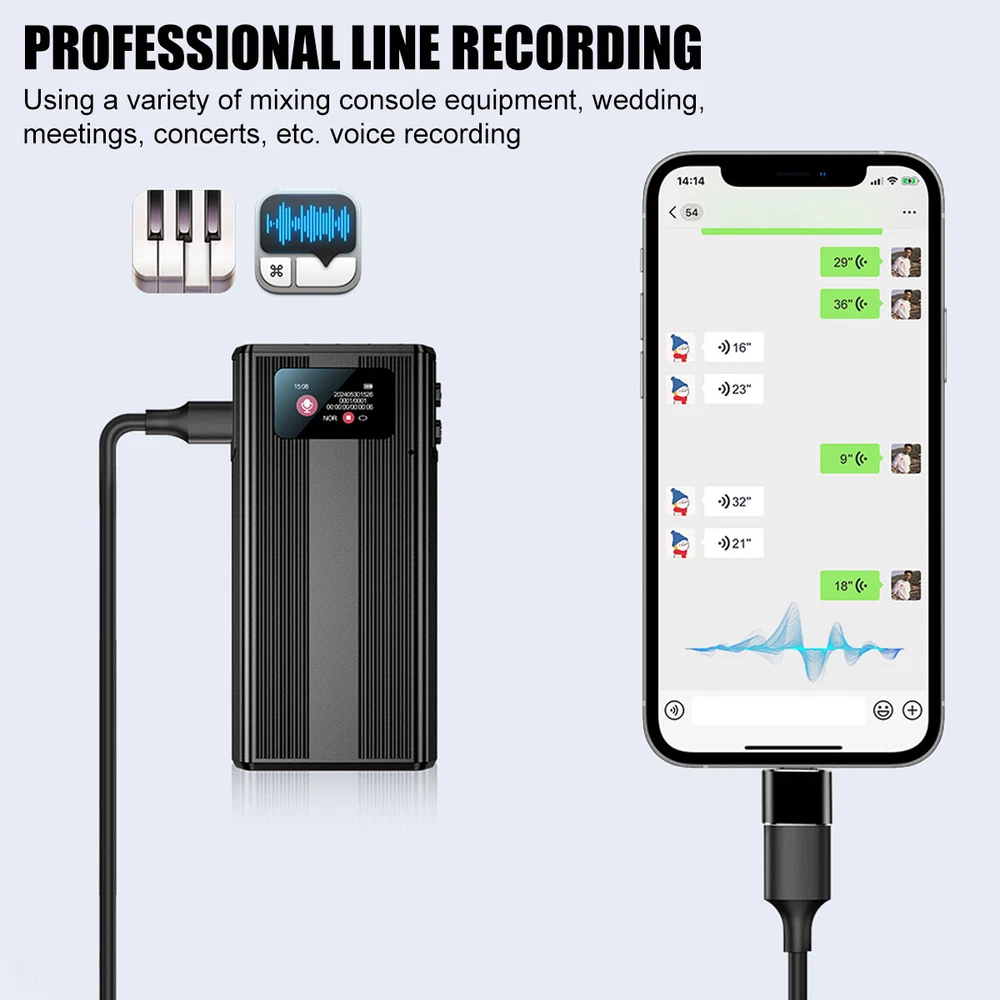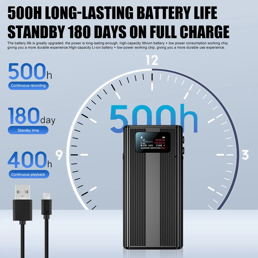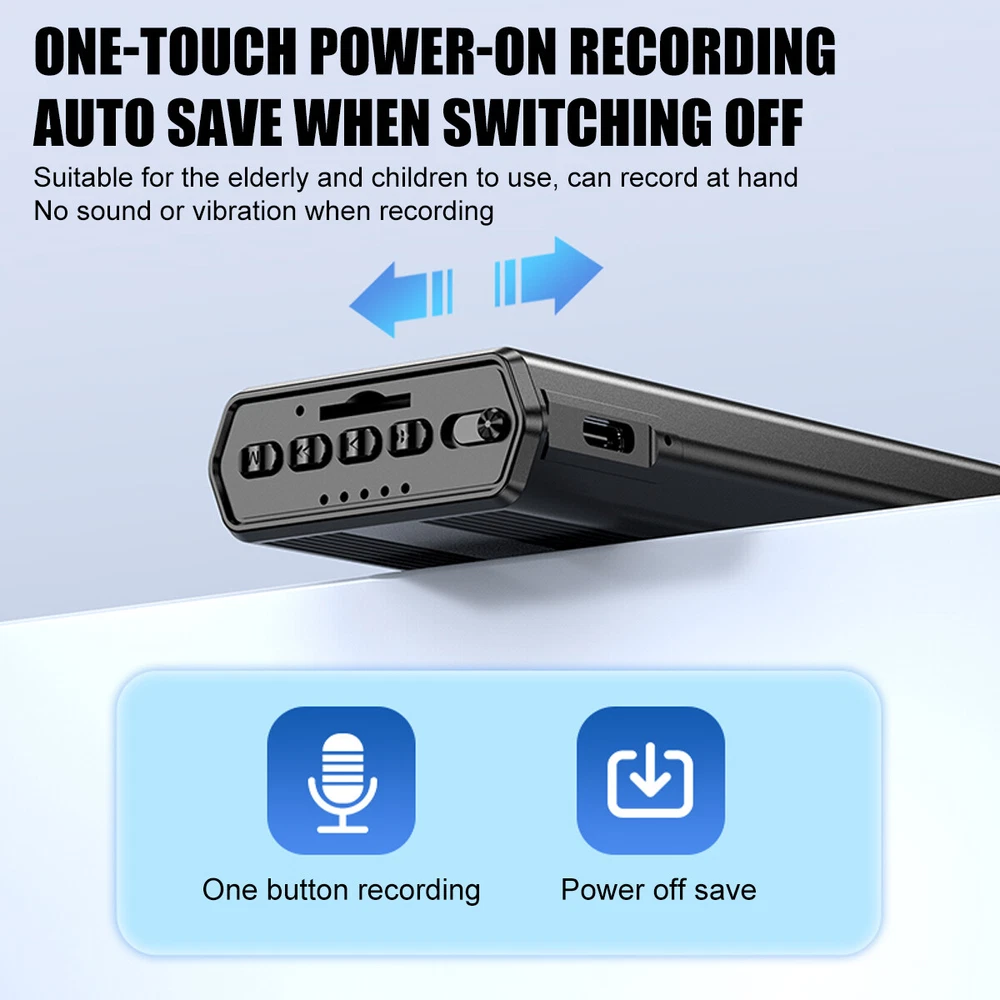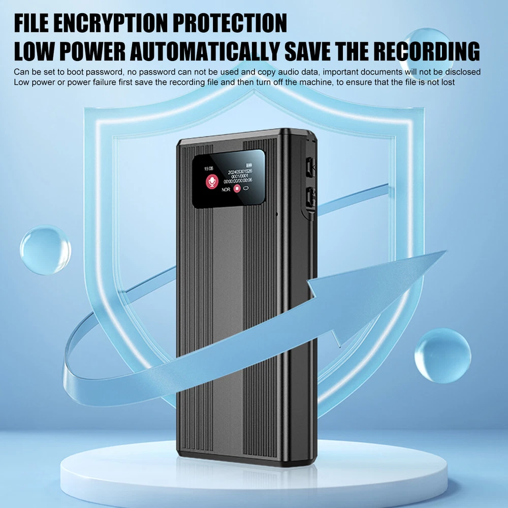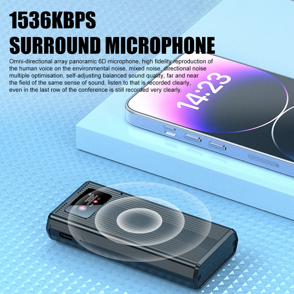 Product Description Product features: 1. 500-hour battery life: the built-in large-capacity battery of the recorder can record continuously for up to 500 hours after being fully charged, and it can be used for up to 180 days in standby, and it can play the recording continuously for 400 hours. The long battery life can avoid frequent charging and improve the use experience. 2. Upgrade screen display: product upgrade, increased operation screen display, real-time view of working status, simple menu and file browsing, and operation to delete files, etc. Compared with no screen model, the experience is greatly improved. 3. High-quality recording at 1536 kbps: The omni-directional array panoramic 6D surround stereo microphone is adopted to realize high-fidelity restoration of human voice, multiple optimization of environmental noise and mixed noise, adjustment of balanced sound quality, improvement of recording clarity, and adjustment of recording bit rate. 4. One-click recording and one-click saving: humanized toggle key design, one-click quick opening of recording, one-click quick saving of recording files, simple operation and no complicated learning process. 5. Support voice-activated recording: after the voice-activated recording mode is turned on, the recording starts when the sound is detected, and it automatically enters the standby state after the recording is completed, saving battery and storage space. 6. OTG connection of mobile phone: support OTG function to connect with mobile phone to transmit recording files, or import music files for use as MP3 music players. 7. Magnetic attraction: Built-in powerful magnet is attached to the surface of iron objects, which is suitable for various scenes. 8. File encryption function: you can set the power-on password. Without the password, you can't use it, you can't copy audio files, and protect important files from disclosure. 9. Built-in 32G memory, supporting 128G expansion: The product comes with 32G large-capacity memory, which can be used for recording for hundreds of hours at low bit rate. At the same time, it supports the expansion of 128G capacity memory card, large memory, and increases the recording time several times. Parameters: Material: metal Size: 100*49*18mm Product weight: 119g Functions: recording, playback, music playing, voice recording, etc. Display screen: 0.96 inch color screen Built-in storage: 32G Expandable storage: maximum support for 128G TF card (excluding). Duration: 500 hours of full-charge recording and 400 hours of playing. Standby time: 180 days Charging interface: Type-C Charging input: 5V 1A Recording folder: 999 files Recording format: WAV Recording sampling rate: 32/16/24/32/48KHz. Recording bit rate: WAV 256/512/768/1024/1536Kbps. Playback formats: MP3, WAV, WMA, APE, FLAC. Recording segmentation: 1GB saves a file by default. Distortion: > 70dB Microphone: Omni-directional capacitor MIC Headphone interface: Type-c stereo jack Working temperature: -10℃ ~ 40℃ OTG function: support Support for connecting computer systems: Windows XP & Vista/2K/Me/98 (Need to Install the Driver)/Mac OS 10/Windows 7/Windows 10. List of storage space, bit speed and time length: Product specifications 8 GB 16GB 32GB RecordingTime 256kbps About 72h About 144h About 288h 512kbps About 36h About 72h About 144h 768kbps About 24h About 48h About 96h 1024kbps About 18h About 36h About 72h 1536kbps About 12h About 24h About 48h Precautions: 1. Illegal use of products is prohibited. 2. Keep away from strong magnetic and electric fields. 3. Do not disassemble the product or replace the battery by yourself. Packing list: Recorder x1 USB charging line x1 Headphone x1 Headphone patch cord x1 Instruction x1 Payment Shipping Terms Returns Contact Us We accept PayPal only. If buyer want to delay the payment because of financial problem, please contact me by the ebay message within 3 days Payment via PayPal (PayPal accepts all major credits/debit cards and eCheque) ECheque payment will tak e 3-10 days to get clear, thus DELAYing the shipment. Handling time: 1 business day (Orders are not processed on weekends & holidays) Tracking information will be sent once item is shipped. Local pick-up is unavailable at the moment. For international shipping and shipping to Guam, Hawaii and Alaska, Please contact us before placing the order. Item is shipped to ebay address. Leaving correct address can minimize delay. For any issues with Defects, Return, Item Exchange request, please contact us first and send us a message first before opening any type of case or request. We devote ourselves making EVERY CUSTOMER in 100% Satisfactory and resolve any problem. We highly value and appreciate your business. Thank you. No returns will be accepted without an RMA number. Please contact us for the RMA number. Return is acceptable within 30 days of delivery. Return for replacement or money back is optional. Returned items must be in the brand new, unaltered and resalable condition. Seller is not responsible for any labor cost, expense in a dealer store, or damage due to wrong installation. Return is accepted within 14 days after the buyer's receiving the item. (Excluding contrived damagement or misusage).100% money-back Guaranteed! All product will be tested in 100% before delivery.If the item is defected by the processing of postage,Buyer has up to 14 days from date of receipt for exchange of a new one.All shipping charges for returned products are to be paid by the buyer,Please contact us for the return address All messages will be answered within 24 office hours. Please contact us either by clicking "contact seller" in the "purchase history" section or simply click "ask a question" at the bottom of this page. If you are unsatisfied with our item or service, please contact us before leaving any feedback. We are committed to resolve all issues in a friendly and satisfactory manner. We always reply to messages within 2 business days (off-duty at weekend). If yo