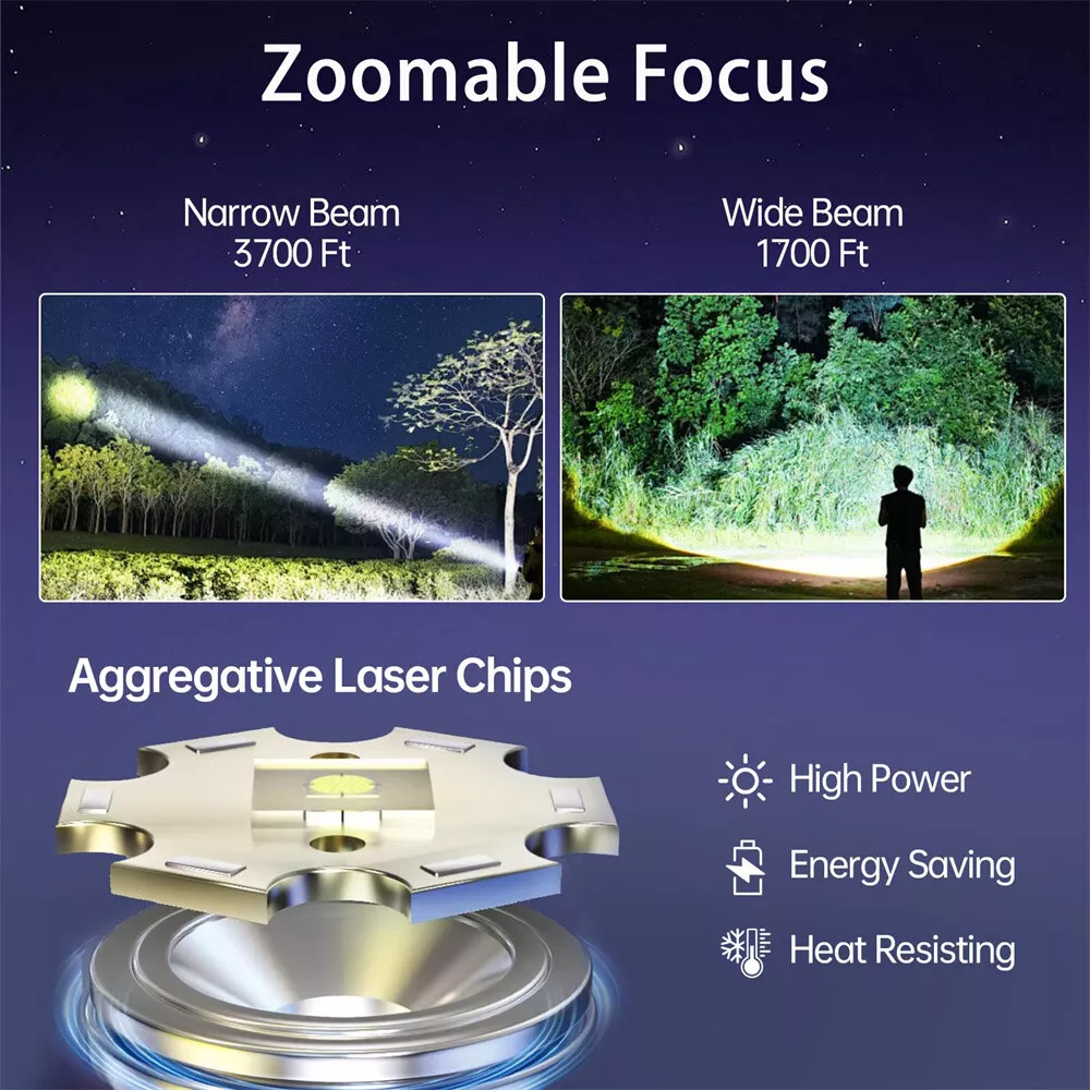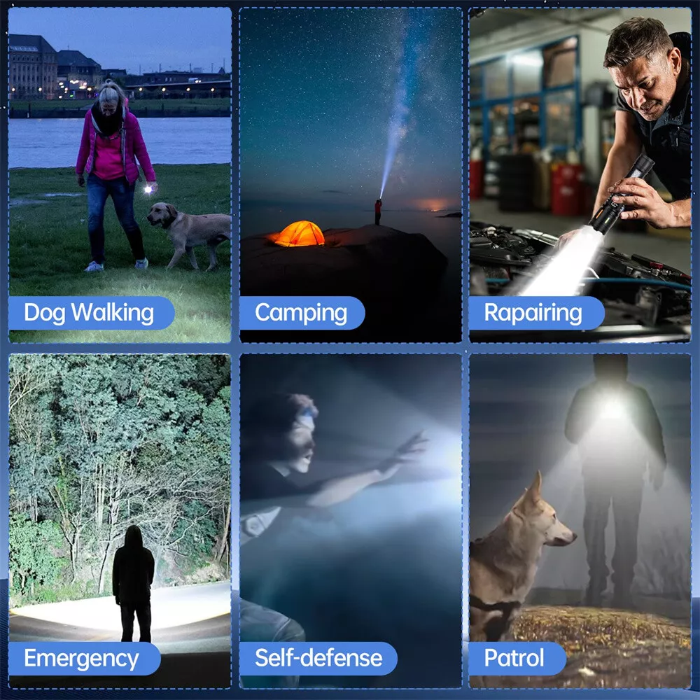 Product Description Description : Super Bright Rechargeable Flashlight: Equipped with upgraded efficient laser Chip LED chips, the rechargeable flashlight emits a stable and super bright lighting. Since the light penetration is stronger than other same-level lamp beads', its beam can pass through dust and fog well, especially suitable for foggy and rainy days with low visibility. 5 Light Modes & Zoomable Focus: There are 5 modes of the rechargeable flashlight: High / Low / Strobe for the main light, and White / Red&Blue Strobe for the COB side light. Equipped with zoomable head, the small rechargeable flashlight high lumens can emit a powerful focused lighting and an extensive extended lighting by adjusting the light head. Fast Charging & Power Indicator: Built-in a rechargeable lithium-ion battery and equipped with more energy-efficient chips, the rechargeable flashlight battery powered working time is up to 7 hours with the low mode. The USB C fast charging input achieves 30% reduction in charging time. It can be charged by power bank, USB plug, etc, with the USB C charging cable. You can clearly see the remaining power at the digital power indicator. IPX6 Waterproof: This flashlight head adopts the high grade black aluminium alloy, and the frame adopts the ABS plastic. The waterproof grade of this flash light reaches IPX6 Waterproof. This rechargeable flashlight is non-slip, shockproof, waterproof, rainproof, dustproof. It can work well in severe outdoor weather conditions, such as rain and snow. It is an ideal outdoor handheld flashlight for working, hiking, camping, repairing, hunting, and Sogidon fishing. Easy to Carry: Led flashlight is equipped with lanyard and pocket clip, which can be hung on your wrist or attach to your pocket , backpack shoulder strap, hat and belt. As its compact design, you carry this small handheld flashlight in your pocket or the car glove compartment. Specification : Product Type: Flashlight Color: Black Weight: 180g Waterproof: IPX6 Working Time: 4-7hrs Charging Time: 3.5-5hrs Material: Aluminum, Plastic Battery Capacity: 3000mAh Power Source: Battery Powered Charging Method: Type-C Charging Size: 15.3*3.5*2.8cm / 6.02*1.38*1.1inch Lighting Mode: 5 Modes(High / Low / Strobe for the main light; White / Red&Blue Strobe for the COB Side Light) Package Included: 1 x Flashlight 1 x USB Cable Note: Due to the different monitor and light effect, the actual color of the item might be slightly different from the color showed on the pictures. Thank you! Please allow 1-2cm measuring deviation due to manual measurement. Payment Shipping Returns Contact Us 1. This is the payment method we can accept: Paypal 2. You can checkout and pay immediately after the auction ends or you complete the purchases. If you need an eBay invoice sent to you by Email, please contact us before making payments. 3. Once the checkout is completed, you will not be able to include any additional purchases. We start to process and fulfill your order once payment is received. New purchases after the checkout will be processed separately. 4. Payments are expected within 4 days after the order is confirmed. Unpaid item (UPI) strike may be filed with eBay upon non-receipt of payment. 1. How much is the shipping & handling (S&H)? Our shipping and handling charges are clearly stated in the Shipping and Payments section of the item page, and we provide Free Shipping for most items. 2. For multiple purchases, the combine shipping discount will be automatically calculated when you check out and pay all of your purchases together. Items checked out separately may not be combined and the combine shipping discount will not be offered automatically. 3. Please make sure the correct Ship-To address is entered before checking out. Once the payment is completed, you may not be able to change the shipping address. We shall not be held responsible for any wrong or undeliverable addresses. 4. We usually ship within 1-2 business days of receiving cleared payment. 1. We put buyer's satisfaction at top priority. If you're not pleased with your purchases, we'll be happy to make an exchange or refund the item total price less Shipping and Handling (S&H) charges within 30 days of your purchases. 2. For any Exchange, Refund or Return, the item must be in its original condition, including the box, packaging, and all the accessories or gifts. 3. We'll provide prepaid return shipping label if the return is a result of our error. Postage reimbursement is offered only on standard mails, and it needs to be approved by our staff prior to returning. 4. Please allow up to 7 business days for returns to be processed. 5. Shipping and Handling (S&H) charges are not refundable. 1. Customer satisfaction is very important to us and our feedback rating reflects this satisfaction. If you have any question or concern, please contact us via eBay message. 2. We respond to all eBay messages as quickly as possible. Though your question will usually be answered very soon, please allow us up to one business day before you start thinking your message is neglected or the reply is avoided, because there would be time difference, non-working hours or public holidays that have prevented us from making an instant response. Payment 1. This is the payment method we can accept: Paypal 2. You can checkout and pay immediately after the auction ends or you complete the purchases. If you need an eBay invoice sent to you by Email, please contact us before making payments. 3. Once the checkout is completed, you will not be able to include any additional purchases. We start to process and fulfill your order once payment is received. New purchases after the checkout will be processed separately. 4. Payments are expected within 4 days after the order is confirmed. Unpaid item (UPI) strike may be filed with eBay upon non-receipt of payment. Shipping 1. How much is the shipping & handling (S&H)? Our shipping and handling charges are clearly stated in the Shippin