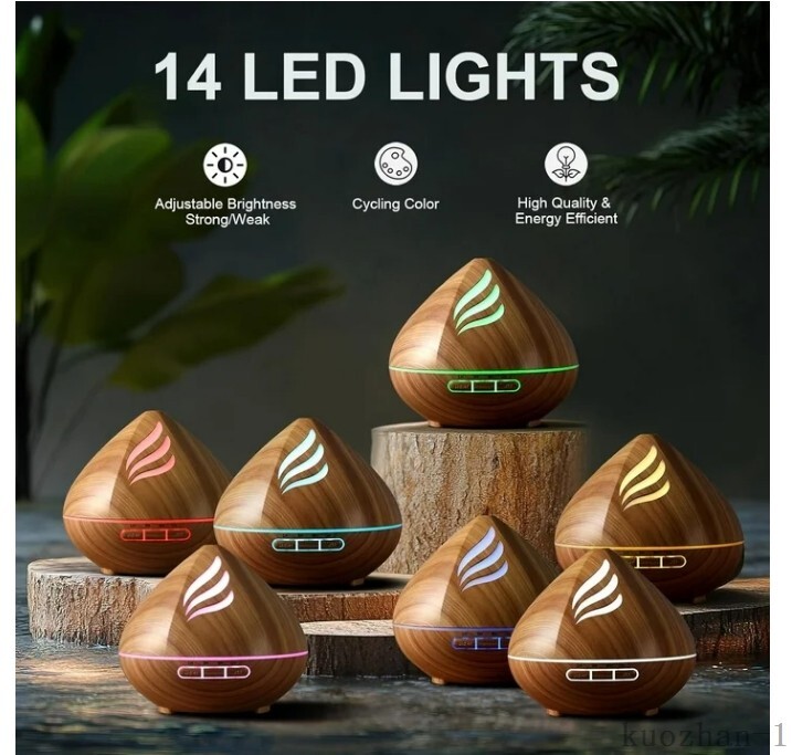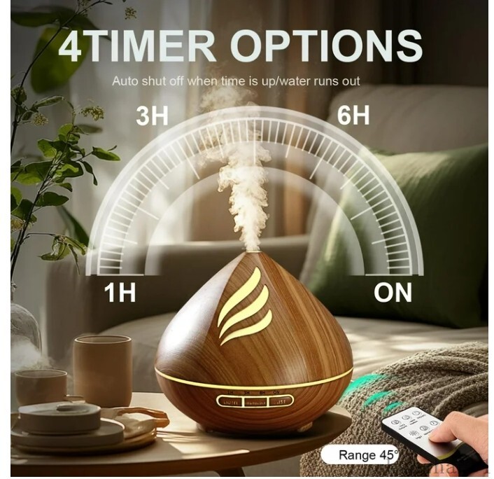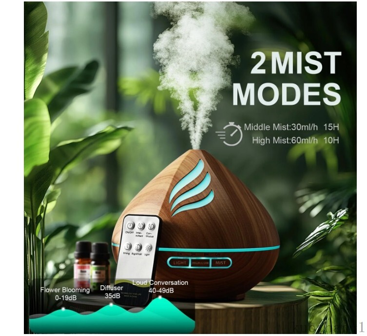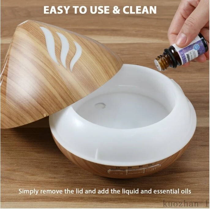 This essential oil diffuser adopts a unique flying wing design, and the bottle mouth is large and easy to disassemble and clean. The essential oils that come with the diffuser can better help you complete the aromatherapy, and the color combination and timing settings of the diffuser can bring you more convenience and make you more comfortable to use. Key Features: Ultrasonic Cold Mist Technology—— This 500ML large-capacity essential oil diffuser can maintain an optimal humidity level of about 60% for you and your family at home. The aromatherapy diffuser is designed with the most advanced ultrasonic cold mist technology, which can evaporate oil and water at a frequency of 2.4MHz, effectively covering 269-368 square feet of space, turning your home or office into a soothing oasis. 8 Scents Aromatherapy—— Our essential oil diffuser is equipped with 8 bottles of high-quality natural plant essential oils. The scents are lemon, lavender, mint, rose, orange, tea tree, vanilla and jasmine. Each bottle of essential oil has 10 ml, which can be used with a diffuser for aromatherapy, diffusing your favorite essential oils to promote a sense of calm and relieve anxiety and stress. This aroma diffuser can also be used as a humidifier to moisturize the air. Timer Setting and Waterless Shutdown—— The essential oil diffuser comes with 4 built-in timer setting modes, with three options of 1H\3H\6H, which can be set by the "MIST" button on the aroma oil diffuser or remote control and can be used continuously for more than 10 hours. In addition, this oil diffuser will automatically shut down when the water runs out, so please feel free to use it. Exquisite Design & Easy to Clean—— Our diffuser uses high-quality ABS resin material as the main body, the material is harmless to health, 3 PP material curves are embellished, and it adopts a unique flying wing shape, which is suitable for a variety of decoration styles and perfectly embellishes your room. The bottle mouth of the essential oil diffuser is large, easy to disassemble and clean, simple, and easy to use. Just inflate with clean water to ensure that the inside of the diffuser is clean and tidy. Suitable for a variety of scenarios—— Our aroma oil diffuser is an ideal choice for all indoor activities, office, reading, exercise, meditation, and sleep, and is also very suitable as a gift for your family and friends. You are not only giving away a scent diffuser but also a wonderful olfactory journey. Product Specifications: Capacity: 500ml Material: ABS+PP Fog volume: 45-60ml/ hour Timer: On /1 H /3 H /6 H Applicable area: 269-368 square feet Noise level: ≤35dB Atomization mode: High/low Lighting: 7 color GRB lights Product size: 6.7x6.7x5.9 inches Package List: 1* 500ml diffuser 8* 10ml essential oil 1* remote control 1* adapter 1* user manual How to use: Move the top cover. Find the adapter in the tank. Add water and essential oil to the aroma diffuser (0.1ml-0.15ml of essential oil per 100ml of water). Electrify the LED light diffuser and turn it on. Adjust the light, mist, and time to your personalized needs. HIGHLIGHT Ultrasonic Cold Mist Technology 8 Scents Aromatherapy Timer Setting and Waterless Shutdown Exquisite Design & Easy to Clean Suitable for a variety of scenarios