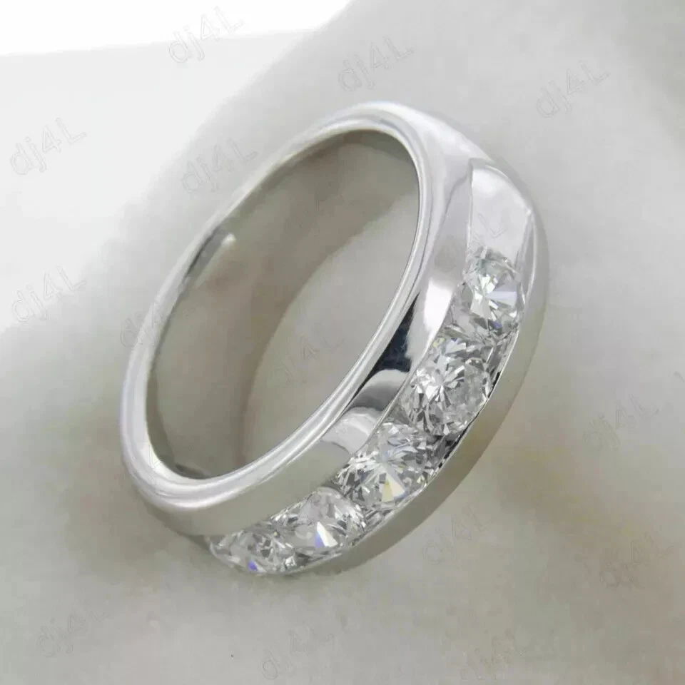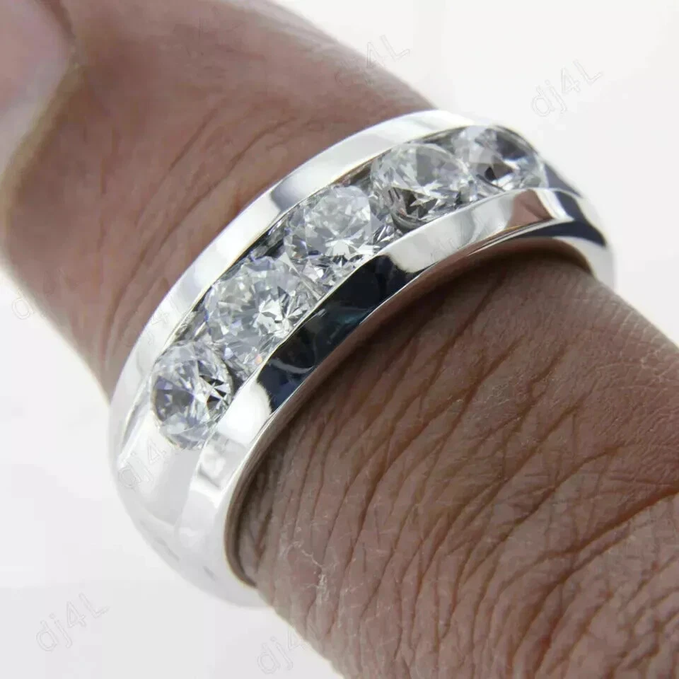 5.0Ct Round Moissanite Men's 5-Stone Wedding Band Ring Real 925 Sterling Silver Customization: Want to add your personal touch to this piece? Contact us and we will create one just for you. Most customization requests include: 1) Ring Resizing 2) Redesign 3) Metal Change (Silver/10K Gold / 14K Gold /18K Gold) 4) Metal Color Change (White/Yellow/Rose/Black) 5) Color Stones (White Topaz, Pink Sapphire, etc) 6) Engraving (Name or any message - no of characters subject to size of jewelry) 7) Anything under the sun that catches your fancy, we will give it a try :) Payment: We accept payment via PayPal only. You can also pay using your credit card, via paypal, by using paypal as a guest. Payment is required within 3 days of the sale of an item. Shipping: International shipments are usually delivered within 2 to 6 weeks, depending on the time taken to clear customs. We are not responsible for any delays due to customs. Please note that all countries charge a duty on imported goods. A customs clearing charge is also imposed in many countries. We are not responsible for the amount of duty or any other related charges. Terms & Sale: We want to ensure that you are completely satisfied with your purchase. If not, then please let us know before leaving any feedback and allow us to work with you to completely resolve any issues that you might be facing. You can return the item for a full refund LESS shipping, within 14 days of item(s) receipt date. There is no restocking fee. 100% Satisfaction Guaranteed. All returns must reach us within 14 days after the item was delivered to you the item must be in the original condition and with the original tags attached. Contact Us: You can contact us by clicking on 'ask seller a question'