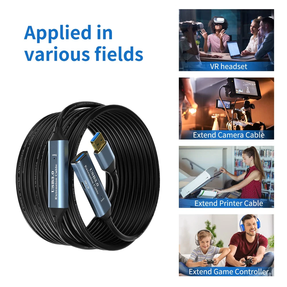 This USB 3.0 extension cable is a game-changer! The 50ft length gives plenty of reach, and the active repeater ensures strong signal without lag. Fast 5Gbps data transfer and 2A charging work flawlessly—no more cutting corners with short cables. Sturdy construction, reliable performance, and easy plug-and-play setup. Perfect for extending devices like printers, VR headsets, or setting up a workstation. No drop in speed even at full length, and it handles heavy files smoothly. A must-have for anyone needing extra USB range without sacrificing quality!