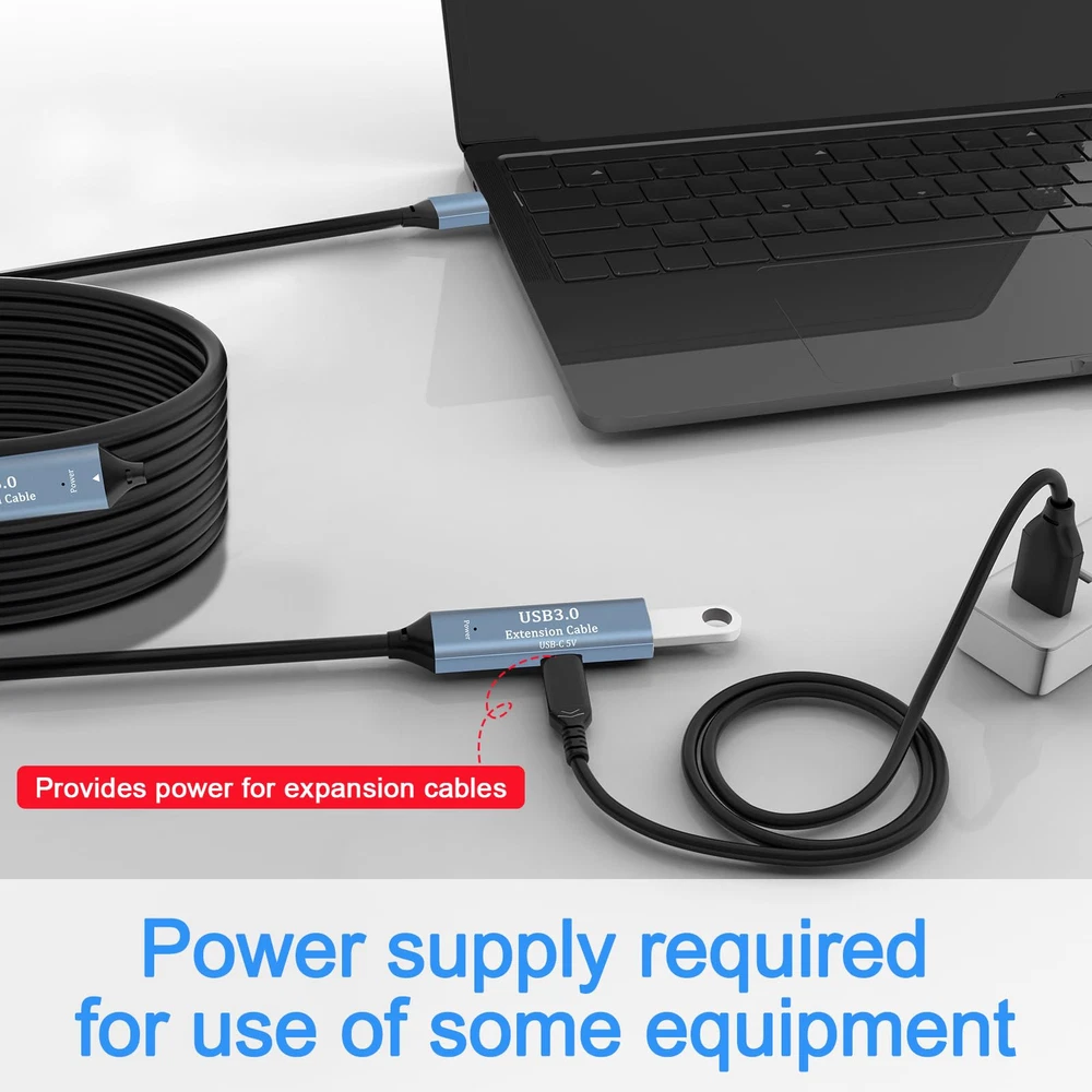 Introducing the USB 3.0 Extension Cable Set, the perfect solution for all your USB extension needs. This set of high-quality USB extension cables comes in 16.4/33/50/65/82/100FT length options so you can choose the right length for your needs. With a male-to-female USB cable design, this USB extender cable supports phone charging and data transmission sync with a charging speed of up to 2A and a data transmission speed of 5 Gbps. This makes it ideal for quickly transferring data and charging your devices in a matter of minutes. The USB cable extender is also extremely durable and sturdy thanks to its braided shield and aluminum alloy connector. Additionally, this USB 3 extension cable is compatible with a wide range of USB peripherals such as webcams, cameras, phones, USB hubs, mice, keyboards, printers, hard drives, headsets, Xbox, lights, WiFi adapters, controllers, and microphones, making it the perfect accessory for both personal and professional use. With easy plug-and-play installation, no driver is needed, making it very convenient to use. Upgrade your USB cable game with the USB 3.0 Extension Cable Set and never worry about short cables again! 【Universal Compatibility】 This USB extension cable is widely for both USB 3.0 and USB 2.0 peripherals, USB extension cable with 6 lengths (16.4/33/50/65/82/100FT)can connect remotely to your computer,keyboard, mouse, Webcam, GamePad Playstation, Xbox, printer, scanner, camera, USB flash drive, card reader, hard drive and many more devices,without any data lag or loss. 【5Gbps Data Transfer&Fast Charging】This USB 3.0 extension cable is capable of both charging and data transfer, with a charging speed of 2A and a ata transfer rate up to 5Gbps - 10X faster than USB 2.0 (480 Mbps). A 5V USB-C port on the side for charging USB-C devices.Also Compatible USB 2.0, 1.1 and 1.0. This extension cable for USB 3.0 is ideal for both daily use and office work. It eliminates the need to worry about short cables causing issues with long-distance connections, and you no longer have to awkwardly bend down under desks or behind TV tables to access USB ports. The USB extender is constructed to be highly durable and robust, boasting a braided shield and aluminum alloy connector. The cable is built with various layers of protection to reduce interruptions, and has connectors that are gold-plated and resistant to corrosion, leading to clear signal transmission and a prolonged lifespan of the cable. If you have any inquiries regarding our product, don't hesitate to get in touch with our trustworthy customer service team, who will respond within 24 hours. The package includes one USB 3.0 Extension Cable.