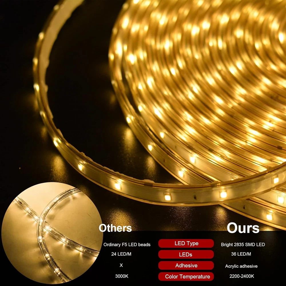50Ft Solar LED Strip Lights Outdoor, 540 LED Long Strip Lights IP68 Fully