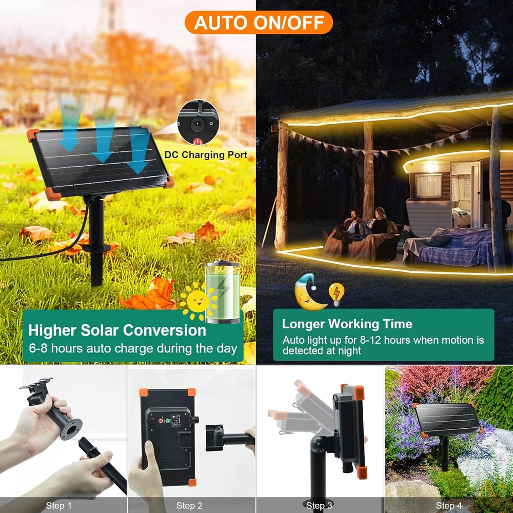 Store New Arrivals Add to Favorite View Feedback Contact 50Ft Solar LED Strip Lights Outdoor, 540 LED Long Strip Lights IP68 Fully Description Item model number S-15MStripL Light Source Type LED Style Modern Number of Items 1 Power Source Solar Powered Number of Light Sources 540 Control Method Remote Theme Space Batteries Included? No Controller Type Remote Control Batteries Required? No Average Life 50000 Hours Material Acrylic Seasons [ALL] Package Dimensions 9.72 x 8.78 x 2.52 inches Included Components Light kit inlcuded, Big solar panel, Remote control Bulb Features Dimmable Indoor/Outdoor Usage Outdoor Light Color Warm White Water Resistance Level Waterproof Item Weight 2.23 pounds Specific Uses Outdoor Indoor Decoration Occasion Christmas Special Features Auto On/Off, Dimmable, Timer, Waterproof, Cordless Special Feature Auto On/Off, Dimmable, Timer, Waterproof, Cordless Part Number S-15MStripL Color Temperature 2700 Kelvin Color Warm White Wattage 5 watts Voltage 24 Volts Shade Material Plastic brand Unbranded Super Long & Bright: Solar LED strip lights come in a generous length of 50ft with 540 bright and durable LED, enabling you to decorate large areas with ease, enhancing the ambiance of your space Long Working Time: This solar panel has a built-in 7200mAh rechargeable battery, which has a long battery life. LED strip lights can last for 3-5 nights when fully charged. The solar strip lights will be charged auto in the daytime and start working in darkness. So please install the solar panel under sunshine for effective battery charging 100% Waterproof: Designed to withstand various weather conditions, our solar strip lights are IP68 waterproof rated, making them suitable for outdoor use throughout the year Powerful Self-adhesive: LED light strip comes with strong acrylic tape, you can easily install on the smooth, clean, dry surfaces , such as on wooden boards, wood, rough surfaces, etc. Flexible and Cuttable: The strip lights are flexible and can be bent or shaped to fit around corners, trees, or any other object. They can also be cut at marked intervals to meet your specific length requirements Multi-function Remote: You can control the lights strip faster and more portable: ①8 Lighting modes ② Brightness adjustment ③3 Timer function. (Directly point the remote control at the solar panel to control the lights) Package Included: 1x long strip lights; 1 x big solar panel with plastic ground spike and nails; 1 x remote control; 10 x cable ties; 1 x Solar panel charging cable (can be charged in case of insufficient light) Product Description 50Ft 540 LED Long Strip Lights Solar Powered Super-long solar LED waterproof strips lights can decorate large areas to create a warm, cozy and romantic atmosphere. These LED strip lights are energy-efficient,saving you money on electricity bills. Remote Control Using the remote control to switch 8 different lighting modes, adjust the brightness and set timer IP68 Waterproof Waterproof strip lights with acrylic fully wrapped Design perfect for outdoor and indoor use Flexible & Cuttable Soft strip lights is bendable to create different shapes and patterns and cutted the length you need Strong Adhesive LED strip light is made of acrylic gel with great strong adhesive power Stick on any dry flat surface 1 Remote Control 2 Fully Waterproof 3 Flexible & Cuttable 4 Sturdy Adhesive Specification Strip Length 50ft (15m) LED Quantity 540 LEDs Light Color: Warm White Waterproof Rating IP68 Material Plastic Solar panel 7V 7200mA Solar Panel Size 23*12cm Package Contents 1x 50ft LED strip lights, 1x solar panel, 1x remote control, mounting accessories, user manual 7200mAh Rechargeable Large Solar Panel Longer Working Time Solar Strip Lights Power by Solar: 6-8 hours auto charge during the day, Auto light up for 8-12 hours at night.Not limited by space and power supply Powered by USB : Charging by pluging into DC port during rainy and cloudy weather,it can last for 3-5 nights when fully charged. Not worrying about rainy days Widely Application for Outdoor and Indoor Decoration Waterproof and rechargeable design will illuminate your surroundings in a magical glow. Create a charming atmosphere for outdoor and indoor decoration, like garden, patio, stair, walkways, swimming pools, etc. Can it manually turn on during the day time? Yes, but the solar panel has light sensor function, If you want it to turn on during the day, cover the solar panel with a dark colored cloth or upside down the solar panel Can the strips be cut to fit required lengh? Yes, you can cut along the scissors line. The part connected to the solar panel will continue to work as before.but the other component will no longer light up without connector. Can it convert to use electricity power instead of solar? Yes,you can plug in to the DC charging port to store power ABOUT US We offer the best prices around on high quality products. Our E-store includes media such as books, movies, music and games while offering electronics, toys, sporting apparel, clothing, tools, general home, garden items and more. SHIPPING We are always working hard to ensure your package arrives as soon as possible. Please understand that some factors like weather, high postal traffic, and the performance of shipping companies are outside of our control. We offer free shipping to the lower 48 states and ship within 2 business days of payment, usually sooner. We do not accept P.O. Boxes. Please provide a physical address. For shipping outside of the continental USA, we only use eBay's Global Shipping Program.The item is shipped to KY and then sent to the rest of the world. International customers are responsible for all duties and taxes. Continue to check out in order to calculate costs for shipping the item to your country. Messages regarding eBay's Global Shipping Program MUST be directed at eBay EXCLUSIVELY. RETURNS We offer a 30-Day Return Policy on items which you are not completely satisfied with. You have t