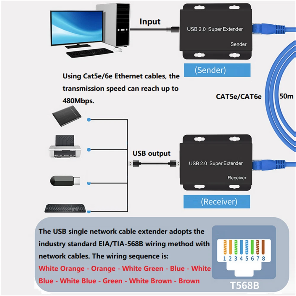 This USB extender is a game-changer for long-distance setups! It works flawlessly up to 50m using Cat5e/6/7 cables, maintaining stable connections for all my USB devices. The 4-port hub is super convenient, and I love that it supports keyboards, printers, and webcams without lag. Setup was plug-and-play on my Windows PC, and the speed feels just like a direct connection. Perfect for extending my workspace or home office setup!