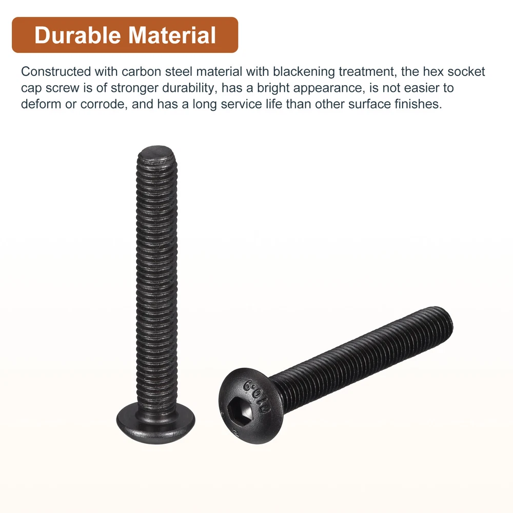 Document Product Details:Material: Carbon SteelFinish: Black OxideThread Type: Full Thread; Coarse ThreadThread Dia: M5Thread Pitch: 0.8mm/ 0.03"Thread Length: 35mm/ 1.38"Head Dia.: 9.5mm/ 0.37"Head Thickness: 2.75mm/ 0.11"Package Content: 50pcs x Button Head Hex Socket ScrewsMaterial - Constructed with carbon steel material with blackening treatment, the hex socket cap screw is of stronger durability, has a bright appearance, is not easier to deform or corrode, and has a long service life than other surface finishes.Feature - The button socket head cap screw is designed with an inner hex drive style and pan head, providing a higher torque and clamping force, as well as offering a wider bearing surface and high tensile strength. Application - Good replacement parts and construction fasteners for use in most machinery industries, automotive industries, electronics industries, manufacturing applications, die fixtures, and clamps.Installation - To access this hex drive screw, you will need to use a hex wrench to tighten or loosen. The socket button head design enhances torque capabilities, allowing for greater clamping force. For optimal results, it is recommended to use a retaining washer to securely lock the hex drive in place. 50PCS M5-0.8x35mm Button Head Socket Cap Screw Hex Drive Full Thread Fasteners Product Details: Material: Carbon Steel Finish: Black Oxide Thread Type: Full Thread; Coarse Thread Thread Dia: M5 Thread Pitch: 0.8mm/ 0.03" Thread Length: 35mm/ 1.38" Head Dia.: 9.5mm/ 0.37" Head Thickness: 2.75mm/ 0.11" Package Content: 50pcs x Button Head Hex Socket Screws Material - Constructed with carbon steel material with blackening treatment, the hex socket cap screw is of stronger durability, has a bright appearance, is not easier to deform or corrode, and has a long service life than other surface finishes. Feature - The button socket head cap screw is designed with an inner hex drive style and pan head, providing a higher torque and clamping force, as well as offering a wider bearing surface and high tensile strength. Application - Good replacement parts and construction fasteners for use in most machinery industries, automotive industries, electronics industries, manufacturing applications, die fixtures, and clamps. Installation - To access this hex drive screw, you will need to use a hex wrench to tighten or loosen. The socket button head design enhances torque capabilities, allowing for greater clamping force. For optimal results, it is recommended to use a retaining washer to securely lock the hex drive in place. Hot Item Payment 1.We accept eBay payment . 2.Payment must be received within 7 business days of auction closing. Shipping 1.We ship to your eBay or Paypal address. Please make sure your eBay and Paypal address is correct before you pay. 2.Items will be shipped within 1-3 business day when we received payment. 3.Delivery time depends on destination and other factors. Description Policy 50PCS M5-0.8x35mm Button Head Socket Cap Screw Hex Drive Full Thread Fasteners Product Details: Material: Carbon Steel Finish: Black Oxide Thread Type: Full Thread; Coarse Thread Thread Dia: M5 Thread Pitch: 0.8mm/ 0.03" Thread Length: 35mm/ 1.38" Head Dia.: 9.5mm/ 0.37" Head Thickness: 2.75mm/ 0.11" Package Content: 50pcs x Button Head Hex Socket Screws Material - Constructed with carbon steel material with blackening treatment, the hex socket cap screw is of stronger durability, has a bright appearance, is not easier to deform or corrode, and has a long service life than other surface finishes. Feature - The button socket head cap screw is designed with an inner hex drive style and pan head, providing a higher torque and clamping force, as well as offering a wider bearing surface and high tensile strength. Application - Good replacement parts and construction fasteners for use in most machinery industries, automotive industries, electronics industries, manufacturing applications, die fixtures, and clamps. Installation - To access this hex drive screw, you will need to use a hex wrench to tighten or loosen. The socket button head design enhances torque capabilities, allowing for greater clamping force. For optimal results, it is recommended to use a retaining washer to securely lock the hex drive in place. Hot Item Payment 1.We accept eBay payment . 2.Payment must be received within 7 business days of auction closing. Shipping 1.We ship to your eBay or Paypal address. Please make sure your eBay and Paypal address is correct before you pay. 2.Items will be shipped within 1-3 business day when we received payment. 3.Delivery time depends on destination and other factors.