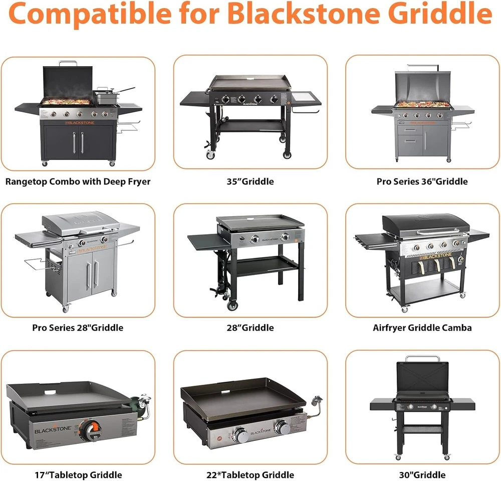50-Pack Blackstone Griddle Accessories 5017 Grease Cup Liners, Aluminum Foil Drip Pan Grease Catcher Cup Liner for Blackstone 17, 22, 28, 36 Inch Griddle, Disposable Grill Grease Tray Perfect Fit : Each grease cup liner measures 8 x 3 x inches and fit the grease tray on your Blackstone griddles 28 inch, 30 inch, and 36 inch. These Blackstone 5017 drip pan liners for the Blackstone 22 and 17 inch models will require you to bend the liners slightly to fit properly No More Messy Grill : The grill drip tray is the perfect accessory for your grease catcher. Specifically designed to collect grease and drippings from cooking delicious food on your gas grill for a clean, mess-free grilling experience Make Cleaning A Breeze : Simply fill the disposable foil drip pan liner and collect the grease and food residue, and once you're done, you can throw it away for a new drip tray, helps with easy cleanup after cooking and seasoning. Set of 50 drip pans to last all Season, price point - a fantastic value Durable AND Space-saving : These drip pan liners are made of high quality aluminum foil, sturdy, heavy-duty, won't break easily, eco-friendly and 100% recyclable. The aluminum drip pans are also stackable to help you save shelf and countertop space. Lightweight and easy to carry, they are a great addition to your outdoor grill Multipurpose : Absorbs and reflects heat more efficiently, withstands extremely high temperatures without warping or melting, perfect for use in the oven or on the grill. Our grease cup liner can also be used in ovens and freezers, ideal for preparing food or preserving food before you get ready to grill. Great for baking, barbecues, grilling, beach, camping, picnics, parties and more