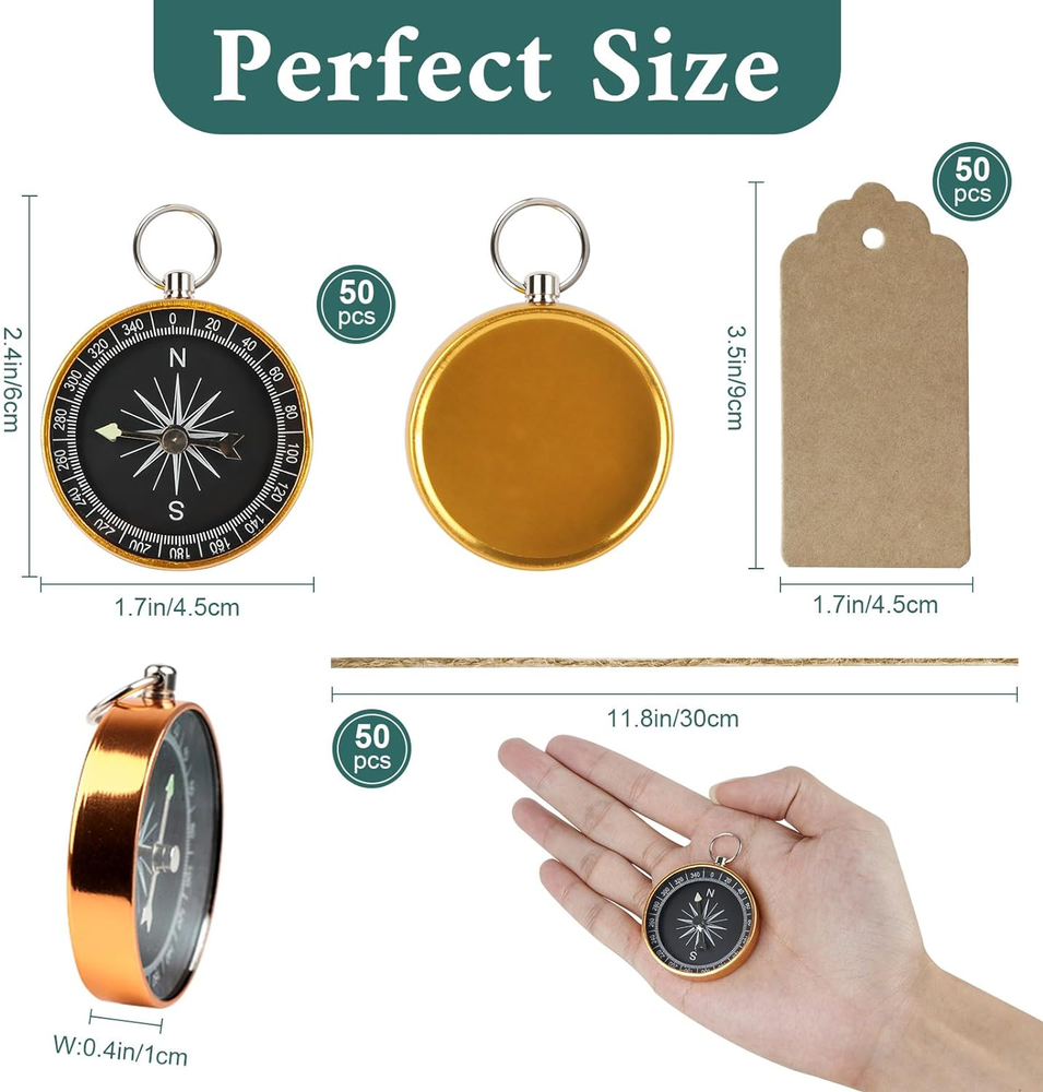 Store New Arrivals Add to Favorite View Feedback 50Pcs Compass Wedding Favors for Guests, Compass Souvenir Gift with Kraft Tags for Travel Themed Party Decorations Nautical Christmas Ornaments Description Mounting Type Wall Mount Batteries required No Is Discontinued By Manufacturer No Product Dimensions 1.8"L x 1.8"W Material Aluminum Item Weight 0.69 Kilograms Special Feature Portable ◆ALL IN ONE - 50pcs Creative Travel Themed Wedding Favors (1.8" in diameter), 50pcs blank kraft gift tags (4" x 2") for easy to write and 50pcs jute twine for hanging, you can't miss it ◆PREMIUM QUALITY - The Mini Compass is made of aluminum alloy, sturdy and durable. Rich exquisite look with gold and black color finishing, ideal for travel themed party favors and table decor ◆OCCASIONS - Perfect for travel themed or nautical themed party decorations, such as a wedding, Christmas, birthday, bridal shower, baby shower, anniversary, graduation, celebration and so on ◆STYLE - Amazing and unique gifts for your family, friends, and guests to thank them for being part of your adventure and wish them safe travel home, they will remember your big day ◆DIY KRAFT PAPER TAGS - Write your friends' names and table numbers to lead them to find their seats. Or write wishes and blessing. You can also hang them to a tree for your guests to collect Product description High-Quality Nautical Gift: Made from premium quality materials, Our 50pcs Compass Wedding Favors are durable and long-lasting. Each compass features a polished brass finish and a sturdy glass face that ensures accuracy. Multi-Functional Party Decorations: The 50pcs compass wedding favors can be used as nautical Christmas ornaments, party decorations, and travel-themed party favors. The compass favors can be incorporated into any décor theme to create a unique and memorable experience for guests. OurWarm is a professional provider of a variety of party decorations, favors and supplies - Wedding, Birthday, Baby Shower, Bridal Shower, Bachelorette Party, Valentine's Day, Mother's Day, Father's Day, Graduation, Mexican Party, Hawaiian Party, Fall, Thanksgiving Day, Halloween, Christmas, Home Decor and More. Package Included 50 x Compass Wedding Favors 50 x Kraft Card Tags 50 x Nature Jute Twines Functions It can be a mini pocket compass with the green fluorescent pointer, which can help you decorate your wedding party, point your guests in the right direction, add excitement to your table decor or be as travel survival gifts. You also can chain it with your keys, bags, and others as a decoration. Features Compass Favors Gold aluminum alloy builds, fashion styling, flip, 360-degree rotating compass. Wedding Souvenirs for Guests Kraft paper materials, harmless for the guest, baby, the bride and bridegroom, and all people. Compass Party Favor Tags The tag cards come with jute twines for easily tying them onto whatever you are labeling. Nautical Wedding Decorations Whether you're planning a wanderlust wedding or taking off for destination unknown, our mini compasses are the cutest. Warm Tips There may be a 1cm-2cm error because of manual measurement. This compass is Unprofessional for outdoor travel and jungle adventure. The compass must be held horizontally and using compass keep away from ferromagnetic objects, high voltage lines, and electromagnetic devices, so as to avoid errors and reduce the sensitivity of the compass. ABOUT US We offer the best prices around on high quality products. Our E-store includes media such as books, movies, music and games while offering electronics, toys, sporting apparel, clothing, tools, general home, garden items and more. SHIPPING We are always working hard to ensure your package arrives as soon as possible. Please understand that some factors like weather, high postal traffic, and the performance of shipping companies are outside of our control. We offer free shipping to the lower 48 states and ship within 2 business days of payment, usually sooner. We do not accept P.O. Boxes. Please provide a physical address. RETURNS We offer a 30-Day Return Policy on items which you are not completely satisfied with. You have the option for a full-refund or an exchange of the item. No returns are available on items shipped outside of the USA. PAYMENT We accept PayPal. CONTACT US This page content is yet to come Please ad us to your favorite seller and visit again later Thank You