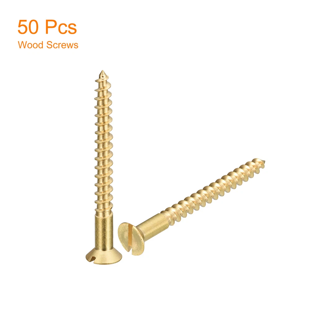 Document Description:Material - These wood screws are made of brass for high strength, wear resistance, corrosion resistance, long-lasting durability and dependability.Countersunk Head Design - Flat head screws can keep the surface flat after installation. Self-tapping screws can be installed without drilling, but pre-drilled holes can better maintain the integrity of the mounting surface.Features - Screws play a role in connecting two or more objects and are an essential necessity in daily life or industrial manufacturing. A flat-head screw is commonly used when the protrusion of the fastener above the mating surface is not acceptable. Clear thread, uniform tooth pitch, and good fastening effect.Wide Applications - Widely used in woodworking, furniture, home, industry, gardening, indoor decorations, or any other DIY crafts for installation, repair, and fixing. Such as thin metal parts, wood fences, cabinets, wardrobes, closets, boxes, wooden walls, and fixing hinges, latches, hasp, etc. into wooden surfaces. Especially suitable for indoor drying places.Notice - Please wear gloves to protect your hands when working and install the screws at a vertical angle of 90 degrees on the working surface to prevent tilt, which will affect the use effect.Specification:Material: BrassThread Dia: M5Total Length: 50mm/1.97-inchHead Dia: 9mm/0.35-inchHead Type: FlatScrew Drive Type: SlottedPackage Content:50 Pcs x Wood Screws 50Pcs M5 x 50mm Brass Slotted Drive Flat Head Wood Screws Self Tapping Screw Description: Material - These wood screws are made of brass for high strength, wear resistance, corrosion resistance, long-lasting durability and dependability. Countersunk Head Design - Flat head screws can keep the surface flat after installation. Self-tapping screws can be installed without drilling, but pre-drilled holes can better maintain the integrity of the mounting surface. Features - Screws play a role in connecting two or more objects and are an essential necessity in daily life or industrial manufacturing. A flat-head screw is commonly used when the protrusion of the fastener above the mating surface is not acceptable. Clear thread, uniform tooth pitch, and good fastening effect. Wide Applications - Widely used in woodworking, furniture, home, industry, gardening, indoor decorations, or any other DIY crafts for installation, repair, and fixing. Such as thin metal parts, wood fences, cabinets, wardrobes, closets, boxes, wooden walls, and fixing hinges, latches, hasp, etc. into wooden surfaces. Especially suitable for indoor drying places. Notice - Please wear gloves to protect your hands when working and install the screws at a vertical angle of 90 degrees on the working surface to prevent tilt, which will affect the use effect. Specification: Material: Brass Thread Dia: M5 Total Length: 50mm/1.97-inch Head Dia: 9mm/0.35-inch Head Type: Flat Screw Drive Type: Slotted Package Content: 50 Pcs x Wood Screws Hot Item Payment 1.We accept eBay payment . 2.Payment must be received within 7 business days of auction closing. Shipping 1.We ship to your eBay or Paypal address. Please make sure your eBay and Paypal address is correct before you pay. 2.Items will be shipped within 1-3 business day when we received payment. 3.Delivery time depends on destination and other factors. Description Policy 50Pcs M5 x 50mm Brass Slotted Drive Flat Head Wood Screws Self Tapping Screw Description: Material - These wood screws are made of brass for high strength, wear resistance, corrosion resistance, long-lasting durability and dependability. Countersunk Head Design - Flat head screws can keep the surface flat after installation. Self-tapping screws can be installed without drilling, but pre-drilled holes can better maintain the integrity of the mounting surface. Features - Screws play a role in connecting two or more objects and are an essential necessity in daily life or industrial manufacturing. A flat-head screw is commonly used when the protrusion of the fastener above the mating surface is not acceptable. Clear thread, uniform tooth pitch, and good fastening effect. Wide Applications - Widely used in woodworking, furniture, home, industry, gardening, indoor decorations, or any other DIY crafts for installation, repair, and fixing. Such as thin metal parts, wood fences, cabinets, wardrobes, closets, boxes, wooden walls, and fixing hinges, latches, hasp, etc. into wooden surfaces. Especially suitable for indoor drying places. Notice - Please wear gloves to protect your hands when working and install the screws at a vertical angle of 90 degrees on the working surface to prevent tilt, which will affect the use effect. Specification: Material: Brass Thread Dia: M5 Total Length: 50mm/1.97-inch Head Dia: 9mm/0.35-inch Head Type: Flat Screw Drive Type: Slotted Package Content: 50 Pcs x Wood Screws Hot Item Payment 1.We accept eBay payment . 2.Payment must be received within 7 business days of auction closing. Shipping 1.We ship to your eBay or Paypal address. Please make sure your eBay and Paypal address is correct before you pay. 2.Items will be shipped within 1-3 business day when we received payment. 3.Delivery time depends on destination and other factors.
