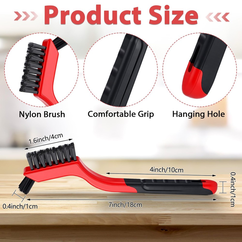 Features: Delicate Work: These nylon cleaning brush are small in size and can be applied for detailed and precise cleaning in small areas, which is good for cleaning corners, small spaces. Nylon brushes are good for cleaning small appliances or more delicate cleaning work, ensuring that you can handle a variety of different tasks with ease. Reasonable Structure: The curved design of the brush head and the uniform curved line design of the handle effectively reduce grip, making the wire brush for cleaning rust easy to operate and control Specifications: Material: nylon, plastic Color: red, black Size: about 7 inches/ 17.78 cm Package includes: 50 x Nylon Cleaning Brushes Notes: Manual measurement, please allow slight errors on size. The color may exist a slight difference due to different screen displays. Bulk Nylon Brushes: you will get a set of 50 pieces of nylon cleaning brushes, suitable for different types of surfaces, which can solve all cleaning problems at home and in the workplace; Sufficient quantity to meet the needs of different places Easy to Clean: the nylon cleaning brush bristles are strong and powerful, easily removing stubborn stains and dirt on the surface and inside the holes of parts, making cleaning more efficient Durable and Comfortable Construction: these parts brushes are made of nylon bristles and sturdy plastic handles; The sturdy and comfortable plastic handles provide a firm grip and can withstand high-intensity use to ensure long-lasting performance Friendly to All Surfaces: these parts cleaning brushes are gentle and effective, and can clean a variety of materials; They are good for removing paint, rust and scale, as well as metal polishing, including stainless steel, ceramics, glass, etc.; Nylon brushes are also suitable for gently cleaning delicate surfaces, and are not easy to cause surface scratches or damage Easy to Carry and Store: these mini portable small cleaning brushes are only 7 inches/ 17.78 cm long, which can be easily carried in the home tool box and cleaning bag; After use, just rinse off the residue to ensure long-term use