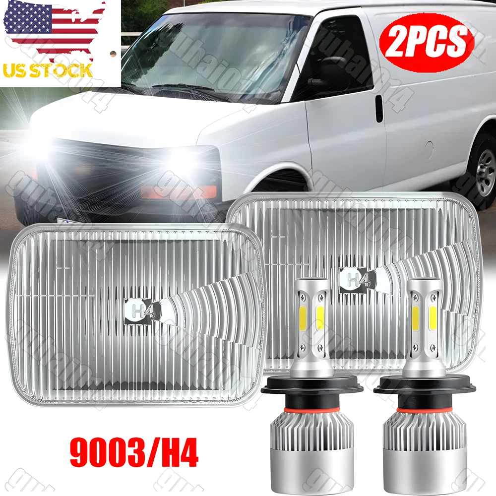 50W Pair 7x6 5x7 LED Headlights Hi/Lo For Chevy Express Cargo Van 1500 2500 3500