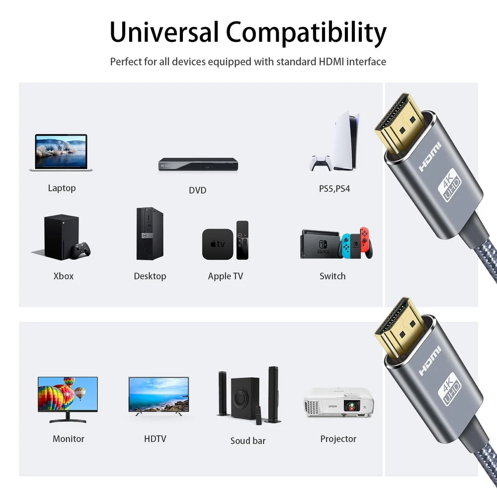 【 High Quality HDMI Cable 】 Ultra-durable nylon-braided with a bend lifespan of 10000+, Pure copper core manufacturing; Built with gold-plated connectors and top imported chips to ensure high-speed and flawless signal transmission 【High Speed】 Our HDMI Cord Supports high dynamic range imaging (HDR) video transmission bandwidth of up to 18 GBPS. The Video resolution clarity is four times as 1080P/60 Video resolution clarity. It can provide a stable and high quality picture image to improve and guarantee the work efficiency and the visual effect of watching movie at home 【 Improvement HDMI 2.0 cable 】 This HDMI Cable meets the latest standard HDMI 2.0 Version, It has been tested for many times on many HDMI devices and certified, Perfectly fit for all devices with HDMI 2.0 standard as well as compatible with previous HDMI 【Compatible HDMI Device】 Compatible with Xbox, Blu-ray players, Fire TV, Apple TV, PS4, PS3, and computers to TVs, displays, A/V receivers, and more 【 Supports 4K Video 】Supports 4K video at 60 Hz, 2160p, 48-bit/px color depth, as well as bandwidth up to 18Gbps, Ethernet, 3D, and Audio Return Channel (ARC)