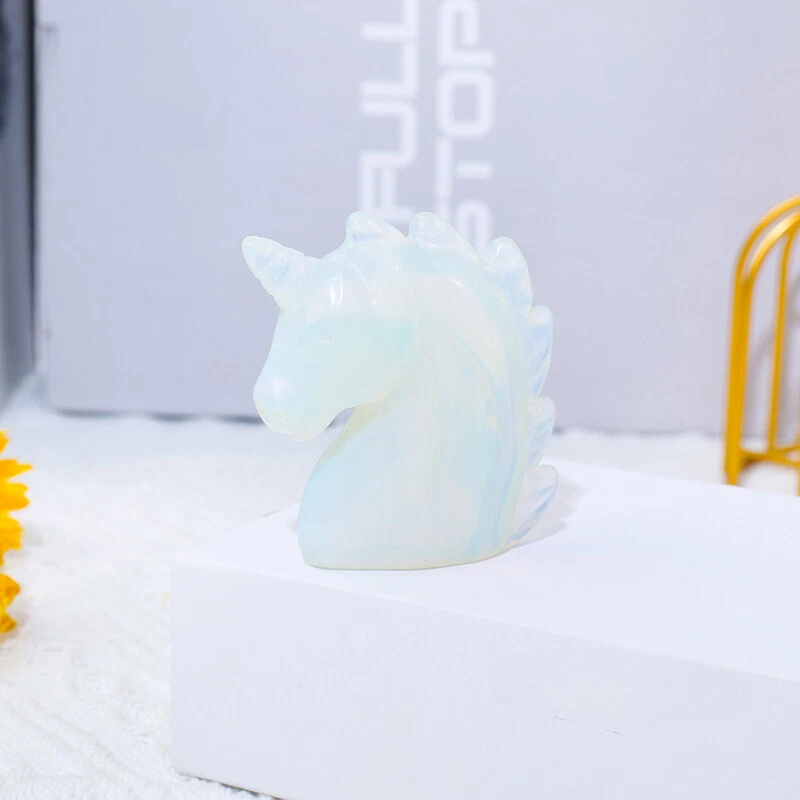 50g Opal Unicorn Natural Quartz Crystal Hand Carved Statue Healing Energy Reiki