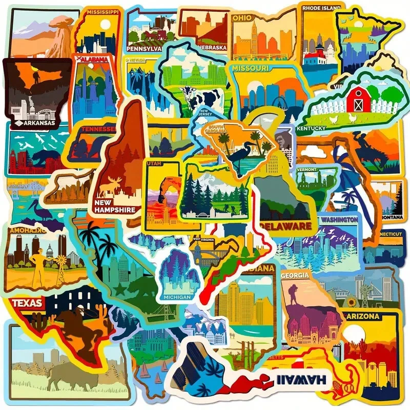 50pc USA America State Stickers Pack Lot Laptop Scrapbook Journaling