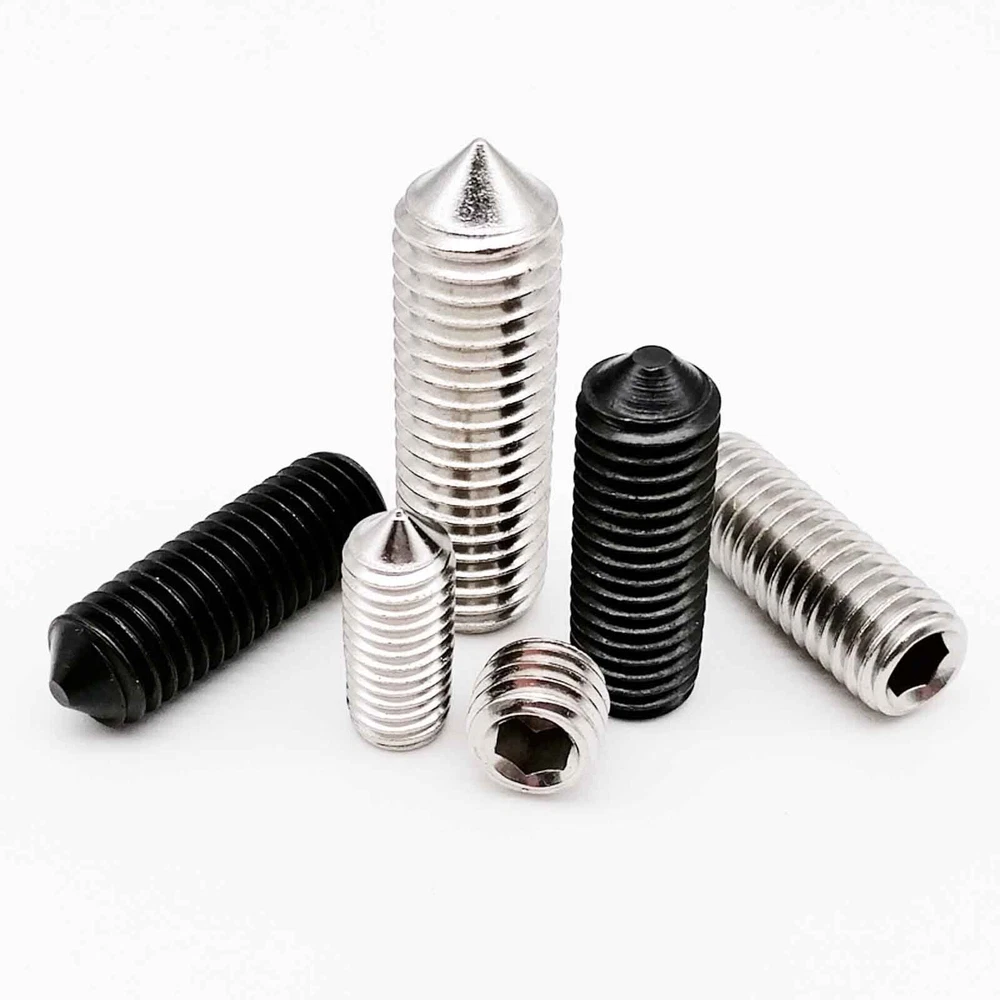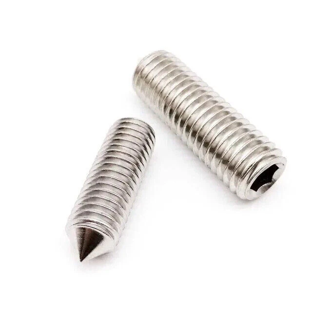There is high quality hex socket cone point grub screw Material: 304 (A2-70) stainless steel / grade 12.9 steel Size : d(thread diameter) x L(total length) Metric thread diameter: M2(2mm)/ M2.5 (2.5mm) / M3 (3mm)M4 (4mm) / M5 (5mm) / M6 (6mm) M8 (8mm) / M10 (10mm) / M12 (12mm) / M16 (16mm) Metric thread pitch: 0.4mm (M2) / 0.45mm (M2.5) / 0.5mm(M3) / 0.7mm(M4) / 0.8mm(M5) / 1mm(M6) 1.25mm(M8) / 1.5mm(M10) / 1.75mm(M12) / 2mm (M16) Thread length: 3mm-30mm On Dec 14, 2024 at 20:16:43 PST, seller added the following information: