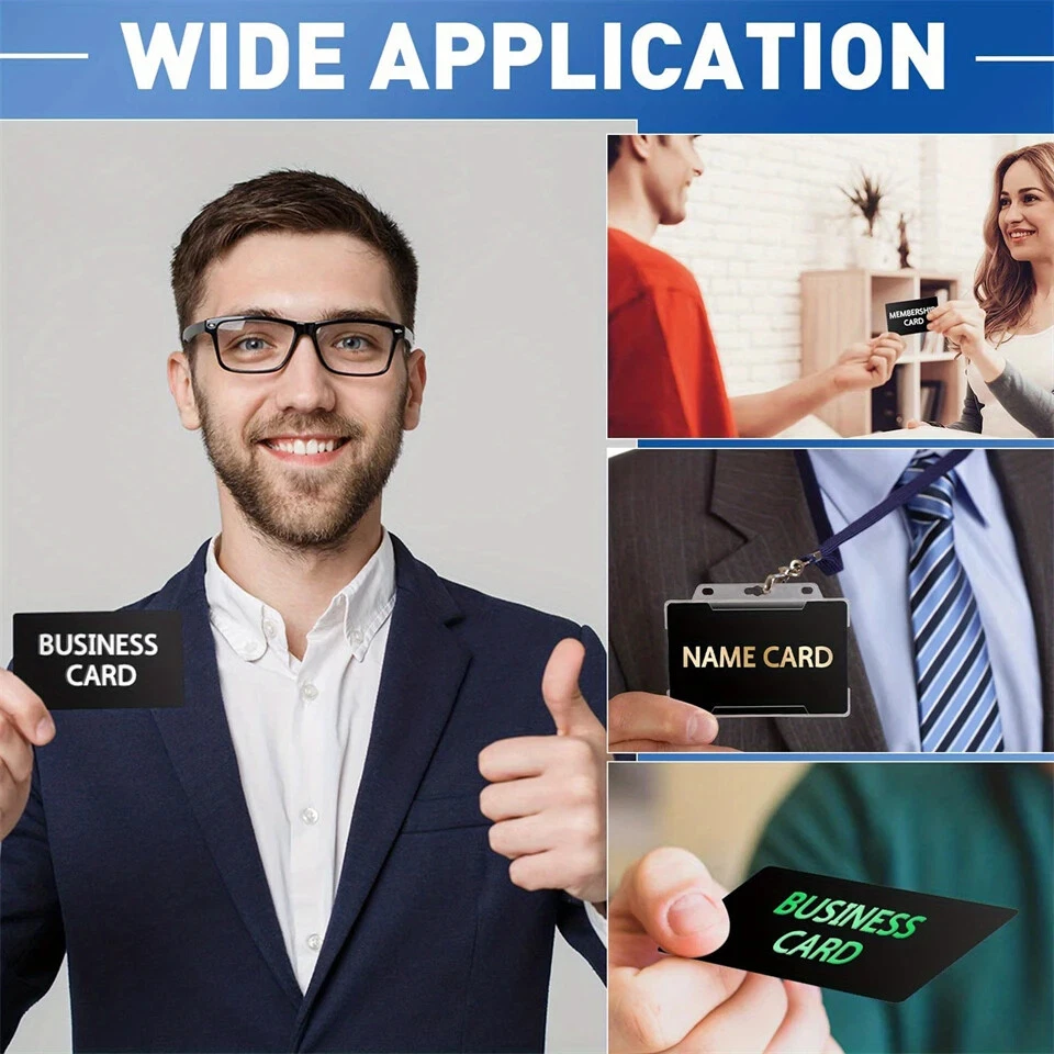 Specification: Size: 3.38 x 2.12 inches (L x W) and 4.72 x 3.15 inches (L x W) size: 86*54mm and 120*80mm Thickness: 0.2mm, 0.3mm,0.45mm, 0.8mm Material: aluminium alloy Package Includes: 50 pcs business cards blanks/case/one color Warm Notice: 1. Please allow slight size errors due to manual measurement. 2. Because of lighting and screen settings, please note there might be slight color difference between the pictures and the actual product.