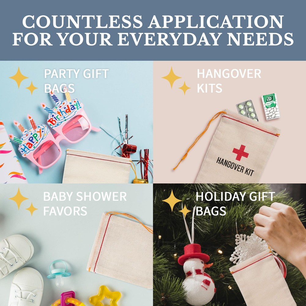 50-Piece Muslin Drawstring Bags - Small Cotton Gift Sachets for Favors & Gifts