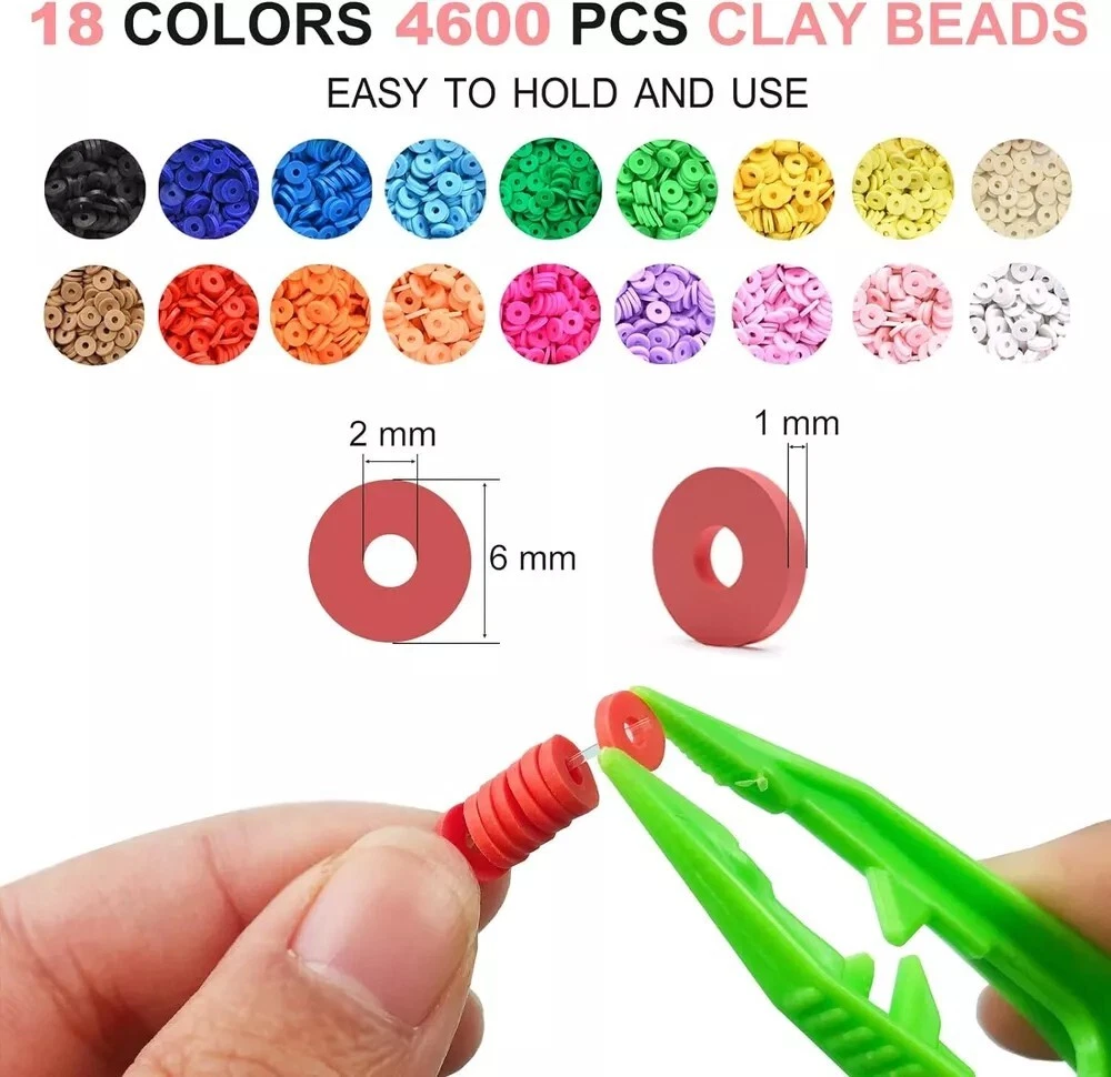 5100 Clay Beads Bracelet Making Kit,Preppy Beads for Crafts for Girls Ages 8-12 Description Item model number RT-Bracelet Making Kit-B5100 Style Clay Beads Age Range (Description) 3 years and up Assembly required No Color Multicolor Included Components 76 Smiley face beads, 204 Letter beads, 52 Colorful heart beads, 4600 Clay beads, 234 Bead accessories Product Dimensions 9.25 x 9.25 x 0.63 inches Material Polymer Clay Beads Item Weight 10.6 ounces Batteries required No Theme Jewelry Item Dimensions LxWxH 9.25 x 9.25 x 0.63 inches Seasons All Seasons Number of Pieces 5100 Model Name Beads for Jewelry Making Brand Redtwo Manufacturer Redtwo PERFECT BRACELET MAKING KIT: All you need included,about 4600 pcs flat polymer clay beads and 500 pcs charms kit( contains 6 complete sets letter beads of A-Z and 48 lesson vowels, spacer beads, clay beads charms, lobster clasp, etc.),1 rolls of 10 meters stretchy strings, a scissors, 2 plastic tweezers ,This complete, expansive jewelry making kit is filled with endless possibilities to be imaginative, to meet all your needs for bracelet making & jewelry making. PREMIUM QUALITY-SAFE TO USE:The diameter of clay heishi beads is 6mm with a 2mm hole and the thickness is 1mm.we stand by our materials, the premium polymer clay beads are handmade with soft clay, so they are safe, eco-friendly, waterproof, skin-friendly and can be worn every day without fading quickly. All materials provided are completely safe and kid-friendly for ages 6+. TO GOT THE GIRLS BUSY: Parents can accompany your children to design various diy jewelry, such as bracelets, necklaces, earrings, anklets, keychains, diy crafts, etc..You can make it super cute! It is great for kids and they will learn new things,more to create fun, beautiful pieces, Children will spend hours creating,So much better use of children time than starting at phone. PERFECT GIFT CHOICE: Why not consider giving this fun bracelets making kit as a gift? This clay bead kit is popular gifts for kids or adult who like to express imagination.A meaningful and cheerful gift choice for birthdays, valentine's day, mother's day, Christmas, thanksgiving day, etc.You can also make unique bracelet and necklace give these friendship bracelets gifts to friends separately. Who doesn’t love a fun bracelet? QUALITY PROMISE: Customer complete satisfaction is very important to us. If you find any problem with our beads, please feel free to contact us. We promise to give you a satisfactory solution within 24 hours. Thank you for supporting our brand REDTWO. Product Description Jewelry making are so fun for grown ups and kids alike,DIY polymer clay beads kit can improve your creativity, imagination, color perception, hands-on ability, concentration and build warm parent-child relationship, friendship and help relieve stress. Are you still worried about knotting? This video will teach you two ways to tie knots Method 1: Knot directly,You don't need to prepare any accessories Method 2: Knot with clamshell beads,Need to prepare 2 clamshell beads,2 jump ring and 1 lobster clasp Please watch the video for detailed tutorial,I hope this video is helpful to you, thank you! Beads for jewelry making kit why we love it? Because All You Need Included.A must for jewelry making lover. A box of about 4600pcs flat polymer clay beads in 18 colors and 500pcs charms kit( contains letter beads, smile beads, colorful heart beads, shells, pendants, jump rings, lobster clasp, etc.), 1 roll of elastic strings, 1 scissors,2 plastic tweezers ,to meet all your needs for bracelets making & jewelry making. BEST TEEN GIRL GIFTS! Imagine Her Reaction as she opens her pretty clay bead box to see a beautiful Jewelry bracelet kit for the first time. It’s a Precious Moment that you’ll want to capture ALUABLE COLLECTION AND GIFTS! How exciting to image your kids getting different charms and beads every day from different creative advent, and when Christmas arrives, she makes her unique bracelet and necklace!