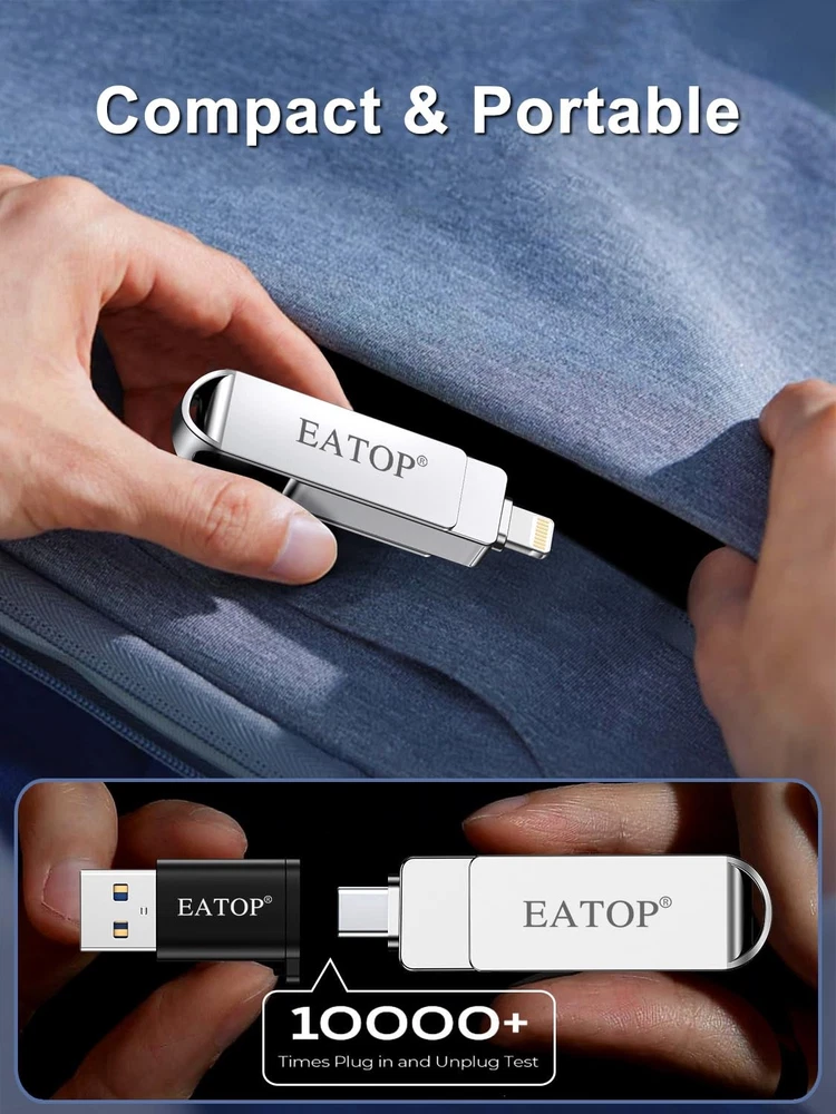 Do you want to make your Phone more convenient? Are you tired of your Phone running out of memory? Do you want to keep enough Phone memory during your trip? Plug and Play, No Application Required! Never lose important documents, videos, photos again thanks to large and reliable Phone flash drives. Free up iPhone and iPad Memory Space Immediately If your iPhone or iPad has almost used up all the memory space, this iPhone USB storage flash drive can help alleviate 512GB of storage space. Whether you like to shoot short videos or take selfies, our iPhone memory stick are perfect for you. Quickly Backup Without Using iTunes or Cloud You can easily backup and manage files at any time. No need of iTunes or Cloud, manage files, pictures and videos through the mobile app to quickly backup to iPhone flash drive, save the storage space of the mobile phone, and at the same time, operations such as forwarding files on the USB drive can be performed. Plug and Play Share your photos, videos, songs and other files between iPhone picture stick easily. You don't have to pay extra for additional storage, just insert iPhone external storage and enjoy the extra space of your flash drive. High Transfer Speed Smart and upgraded chip with high efficiency and stability. read speed up to 30MB/s and write speed up to 15MB/s. The upgraded chip provides you with more efficient storage experience. How to Transfer for iPhone iPad Requires iOS 13 and higher: Simply insert the flash drive into your iPhone iPad, then go to the "Files" app to find "Untitled" and move files to your iPad or iPhone as needed. How to Transfer for Android Android phones need to support OTG, and flash drives can be found in the “File Manager” of most Android devices. 【Plug and Play, No Application Required, Instantly Increases iPhone and iPad Memory Space】If you almost used up all space on your iPhone or iPad, this photo stick for iPhone helps to expand your memory at full storage with 512GB. And usb memory stick for photos is also a great partner for traveling photographers editing on iPad. Using this memory device for your iPhone, iPad or Computers, no worries with the iPhone storage anymore! 【Multi-Port USB Drive】The 3 IN 1 phone photo stick with USB-C Port/ USB-L Port/ USB Port (Independent interface), which is more convenient for data transfer between different devices, so as to get rid of the data cable and iTunes and iCloud, let you switch easily storage space. The Phone thumb drive is designed for use with a wide range of devices, Compatibility iPhone 16/15/14/13/12/11/8/7/6S/SE/XR/XS/XS Max/X Series/iPad Air Series/iPad Pro Series. Also support Android smartphones/Computers and other devices with USB-C Ports. (Tip: For iPhone system version requires iOS 13 or higher, For Android smartphones need to open OTG function) 【Watch Movies, Photos and Play Music Directly From Phone Flash Drive】Store your favorite videos, audios and music on your iPhone's Photo Stick, then seamlessly plug and play on your iPhone or iPad anytime, anywhere. No more need for Internet or WiFi. This iPhone storage device plays videos in many different formats.Pictures stored on the Phone storage device also support different formats. Great way to store all your pictures and videos on an phone external storage device. 【High Transfer Speed】Transfer photos, videos, and files in seconds with our USB stick. With a write speed of up to 15 MB/s and a read speed of up to 30 MB/s, our flash drive for iphone have higher performance than conventional usb storage flash drive. Save time and get more done with iphone photo storage stick. Enjoy the whole relaxing trip with never stuttering or buffering video play on the go. (Tip: No Third-Party Apps Required, Simply insert the flash drive into the iPhone iPad and go to "Files" app) 【How to transfer in iPhone iPad】Requires iOS 13 and higher: Simply insert the flash drive into your iPhone iPad, then go to the "Files" app to find "Untitled" and move files to your iPad or iPhone as needed. 【How to transfer in Android Phones】Android phones need to support OTG, and flash drives can be found in the “File Manager” of most Android devices. 【Kindly Note】1) For Flash Media Devices, 1 megabyte = 1 million bytes; 1 gigabyte = 1 billion bytes. Actual useable capacity may vary. Some of the listed capacity is used for formatting and other functions, and thus is not available for data storage. 2) Up to 30MB/s read speed, write speed is lower. Based on internal testing; performance may be lower depending on the host devices and user’s settings and configurations. 【Kindly Note】The phone case may prevent the proper connection between a phone and a usb flash drive, which could result in the phone being unable to recognize the usb flash drive. In this situation, please do not conclude that the usb flash drive cannot be used, remove the phone case and try again. 【Reliable After-Sales Service】Experience the convenience of high-quality USB memory stick and enjoy our premium customer service at the same time. For the phone flash drive, if you have any questions, we are willing to provide help.