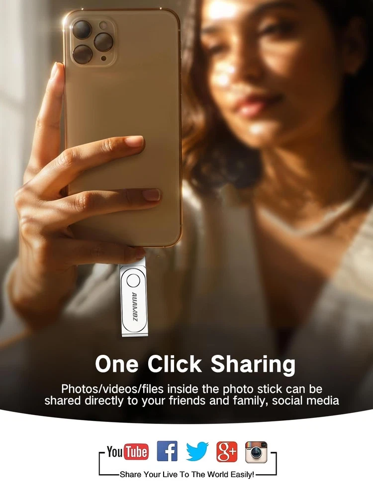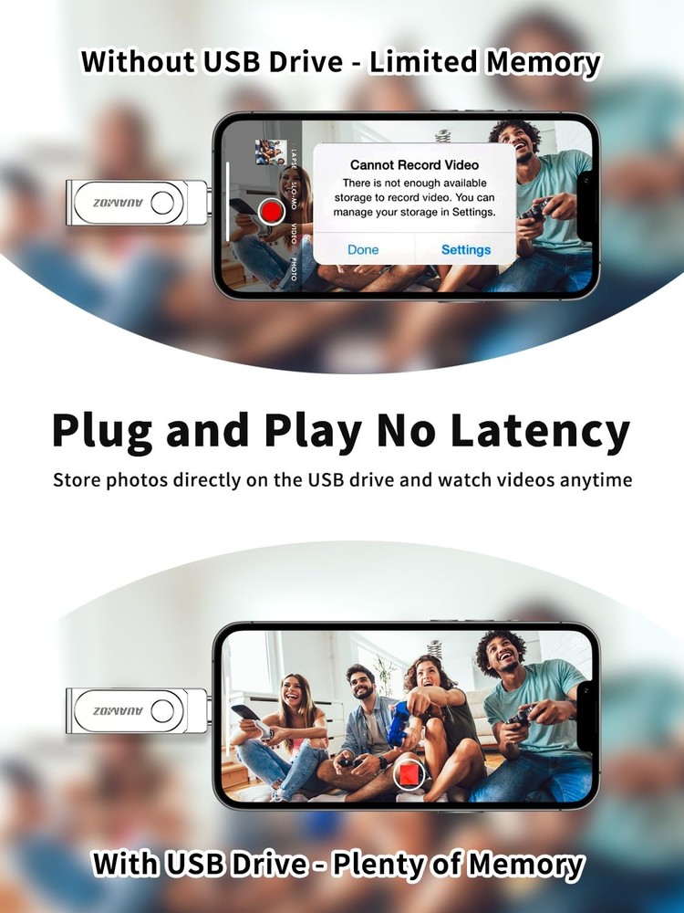 Do you want to make your Phone more convenient? Are you tired of your Phone running out of memory? Do you want to keep enough Phone memory during your trip? Plug and Play, No Application Required! Never lose important documents, videos, photos again thanks to large and reliable Phone flash drives. Free up iPhone and iPad Memory Space Immediately If your iPhone or iPad has almost used up all the memory space, this iPhone USB storage flash drive can help alleviate 512GB of storage space. Whether you like to shoot short videos or take selfies, our iPhone memory stick are perfect for you. One-Click Backup With the phone drive 512GB, easily backup and manage files without relying on iTunes. Use our mobile app to conveniently manage files, contacts, photos, and videos on your phone, and quickly backup to the mini flash drive, saving space on your device. Additionally, share files on the usb thumb drive and store captured videos, photos, or favorite movies directly on the usb memory stick for instant viewing. Plug and Play Share your photos, videos, songs and other files between iPhone picture stick easily. You don't have to pay extra for additional storage, just insert iPhone external storage and enjoy the extra space of your flash drive. High Transfer Speed Smart and upgraded chip with high efficiency and stability. read speed up to 30MB/s and write speed up to 20MB/s. The upgraded chip provides you with more efficient storage experience. How to transfer in iPhone iPad Requires iOS 13 and higher: Simply insert the flash drive into your iPhone iPad, then go to the "Files" app to find "Untitled" and move files to your iPad or iPhone as needed. How to transfer in Android Phones Android phones need to support OTG, and flash drives can be found in the “File Manager” of most Android devices. 【Plug and Play, No Application Required, Instantly Increases iPhone and iPad Memory Space】If you almost used up all space on your iPhone or iPad, this photo stick for iPhone helps to expand your memory at full storage with 512GB. And usb memory stick for photos is also a great partner for traveling photographers editing on iPad. Using this memory device for your iPhone, iPad or Computers, no worries with the iPhone storage anymore! 【Multi-Port USB Drive】The 3 IN 1 phone photo stick with USB-C Port/ USB-L Port/ USB Port (Independent interface), which is more convenient for data transfer between different devices, so as to get rid of the data cable and iTunes and iCloud, let you switch easily storage space. The Phone thumb drive is designed for use with a wide range of devices, Compatibility iPhone 16/15/14/13/12/11/8/7/6S/SE/XR/XS/XS Max/X Series/iPad Air Series/iPad Pro Series. Also support Android smartphones/Computers and other devices with USB-C Ports. (Tip: For iPhone system version requires iOS 13 or higher, For Android smartphones need to open OTG function) 【Watch Movies, Photos and Play Music Directly From Phone Flash Drive】Store your favorite videos, audios and music on your iPhone's Photo Stick, then seamlessly plug and play on your iPhone or iPad anytime, anywhere. No more need for Internet or WiFi. This iPhone storage device plays videos in many different formats.Pictures stored on the Phone storage device also support different formats. Great way to store all your pictures and videos on an phone external storage device. 【High Transfer Speed】Transfer photos, videos, and files in seconds with our USB stick. With a write speed of up to 15 MB/s and a read speed of up to 30 MB/s, our flash drive for iphone have higher performance than conventional usb storage flash drive. Save time and get more done with iphone photo storage stick. Enjoy the whole relaxing trip with never stuttering or buffering video play on the go. (Tip: No Third-Party Apps Required, Simply insert the flash drive into the iPhone iPad and go to "Files" app) 【How to transfer in iPhone iPad】Requires iOS 13 and higher: Simply insert the flash drive into your iPhone iPad, then go to the "Files" app to find "Untitled" and move files to your iPad or iPhone as needed. 【How to transfer in Android Phones】Android phones need to support OTG, and flash drives can be found in the “File Manager” of most Android devices. 【Kindly Note】1) For Flash Media Devices, 1 megabyte = 1 million bytes; 1 gigabyte = 1 billion bytes. Actual useable capacity may vary. Some of the listed capacity is used for formatting and other functions, and thus is not available for data storage. 2) Up to 30MB/s read speed, write speed is lower. Based on internal testing; performance may be lower depending on the host devices and user’s settings and configurations. 【Kindly Note】The phone case may prevent the proper connection between a phone and a usb flash drive, which could result in the phone being unable to recognize the usb flash drive. In this situation, please do not conclude that the usb flash drive cannot be used, remove the phone case and try again. 【Reliable After-Sales Service】Experience the convenience of high-quality USB memory stick and enjoy our premium customer service at the same time. For the phone flash drive, if you have any questions, we are willing to provide help.