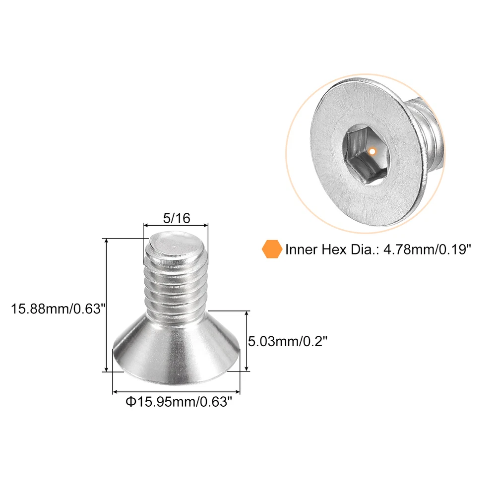 Document Description:Material: These flat head screws are made of 304 Stainless Steel which is one of the highest forms of corrosion-resistant metals, making it last longer than other hardware on the market today.Feature: Our flat head machine screws are very strong and are great for both indoor and outdoor use. This stainless is superior to regular steel and provides excellent rust resistance.Function: The flat-head socket cap screws are great to have around for use in wet environments and have strong oxidation resistance. They are strong, corrosion-resistant, and will support all of your projects.Application: Wind power industry, aerospace industry, office equipment industry, petrochemical industry, electronics industry, communications industry, shipbuilding industry, machinery, etc.Specification:Product Name: Flat Head Hex Socket Cap ScrewColor: Silver ToneModel: 5/16-18x5/8"Material: 304 Stainless steelScrew Total Length: 15.88mm/0.63"Inner Hex Dia.: 4.78mm/0.19"Screw Head Size: 15.95x5.03mm/0.63"x0.2"(D*T)Screw Groove Type: Inner HexPackage Content:20Pcsx Flat Head Hex Socket Cap Screw 5/16-18x5/8" Flat Head Socket Cap Screws, 304 Stainless Steel Fasteners 20Pcs Description: Material: These flat head screws are made of 304 Stainless Steel which is one of the highest forms of corrosion-resistant metals, making it last longer than other hardware on the market today. Feature: Our flat head machine screws are very strong and are great for both indoor and outdoor use. This stainless is superior to regular steel and provides excellent rust resistance. Function: The flat-head socket cap screws are great to have around for use in wet environments and have strong oxidation resistance. They are strong, corrosion-resistant, and will support all of your projects. Application: Wind power industry, aerospace industry, office equipment industry, petrochemical industry, electronics industry, communications industry, shipbuilding industry, machinery, etc. Specification: Product Name: Flat Head Hex Socket Cap Screw Color: Silver Tone Model: 5/16-18x5/8" Material: 304 Stainless steel Screw Total Length: 15.88mm/0.63" Inner Hex Dia.: 4.78mm/0.19" Screw Head Size: 15.95x5.03mm/0.63"x0.2"(D*T) Screw Groove Type: Inner Hex Package Content: 20Pcsx Flat Head Hex Socket Cap Screw Hot Item Payment 1.We accept eBay payment . 2.Payment must be received within 7 business days of auction closing. Shipping 1.We ship to your eBay or Paypal address. Please make sure your eBay and Paypal address is correct before you pay. 2.Items will be shipped within 1-3 business day when we received payment. 3.Delivery time depends on destination and other factors. Description Policy 5/16-18x5/8" Flat Head Socket Cap Screws, 304 Stainless Steel Fasteners 20Pcs Description: Material: These flat head screws are made of 304 Stainless Steel which is one of the highest forms of corrosion-resistant metals, making it last longer than other hardware on the market today. Feature: Our flat head machine screws are very strong and are great for both indoor and outdoor use. This stainless is superior to regular steel and provides excellent rust resistance. Function: The flat-head socket cap screws are great to have around for use in wet environments and have strong oxidation resistance. They are strong, corrosion-resistant, and will support all of your projects. Application: Wind power industry, aerospace industry, office equipment industry, petrochemical industry, electronics industry, communications industry, shipbuilding industry, machinery, etc. Specification: Product Name: Flat Head Hex Socket Cap Screw Color: Silver Tone Model: 5/16-18x5/8" Material: 304 Stainless steel Screw Total Length: 15.88mm/0.63" Inner Hex Dia.: 4.78mm/0.19" Screw Head Size: 15.95x5.03mm/0.63"x0.2"(D*T) Screw Groove Type: Inner Hex Package Content: 20Pcsx Flat Head Hex Socket Cap Screw Hot Item Payment 1.We accept eBay payment . 2.Payment must be received within 7 business days of auction closing. Shipping 1.We ship to your eBay or Paypal address. Please make sure your eBay and Paypal address is correct before you pay. 2.Items will be shipped within 1-3 business day when we received payment. 3.Delivery time depends on destination and other factors.