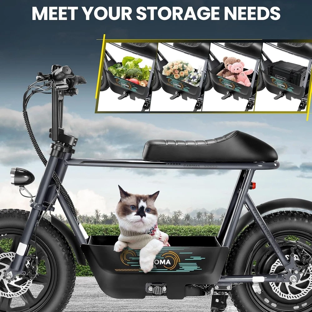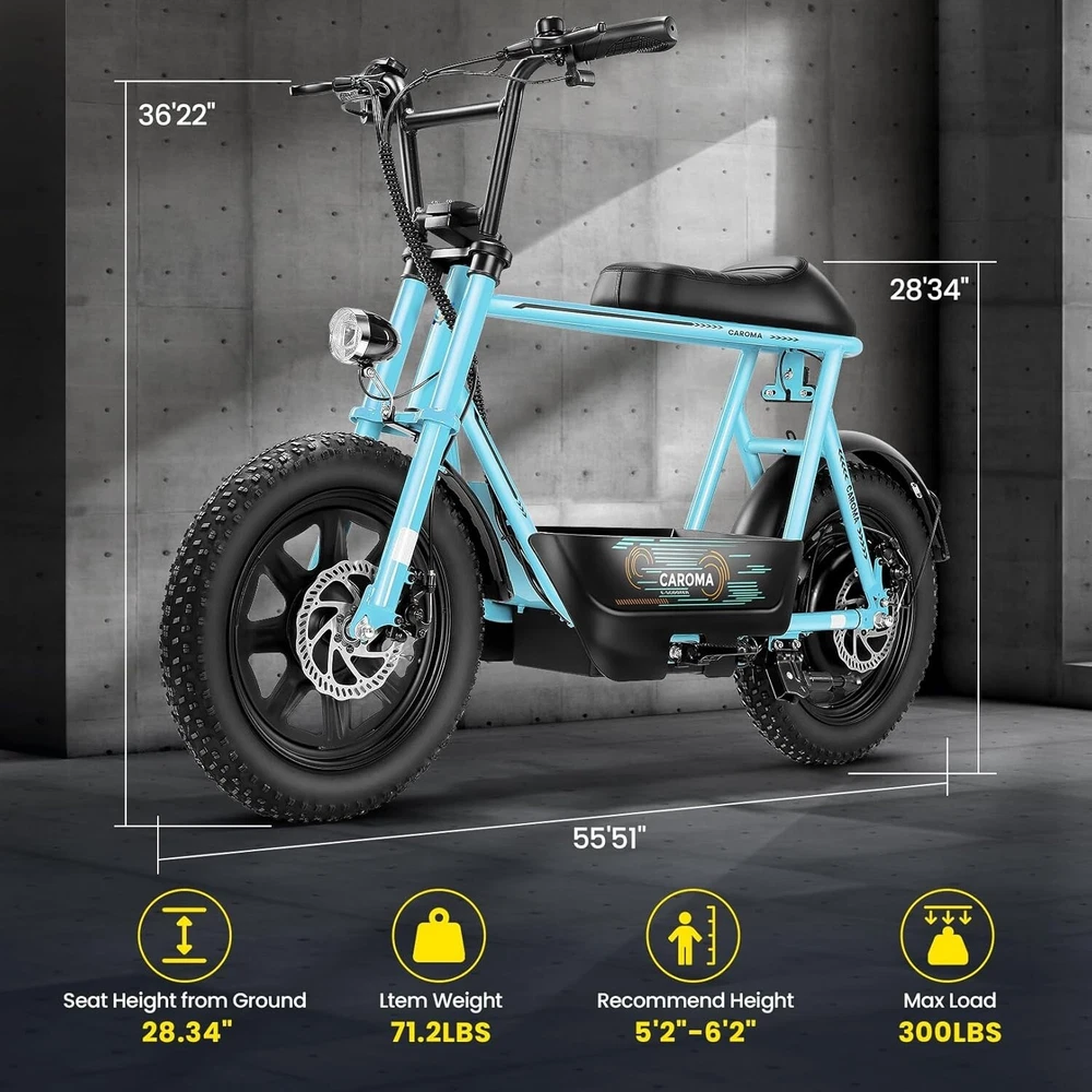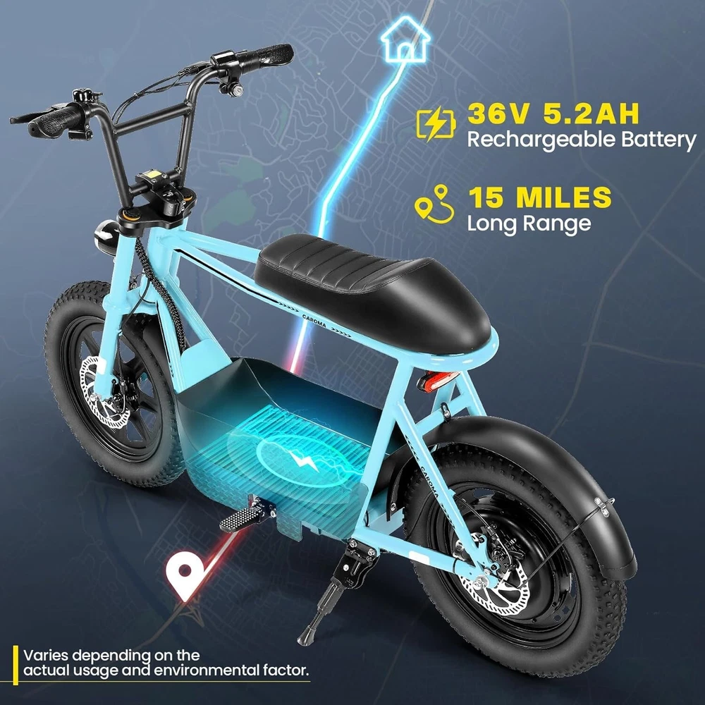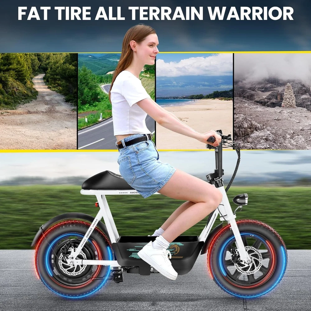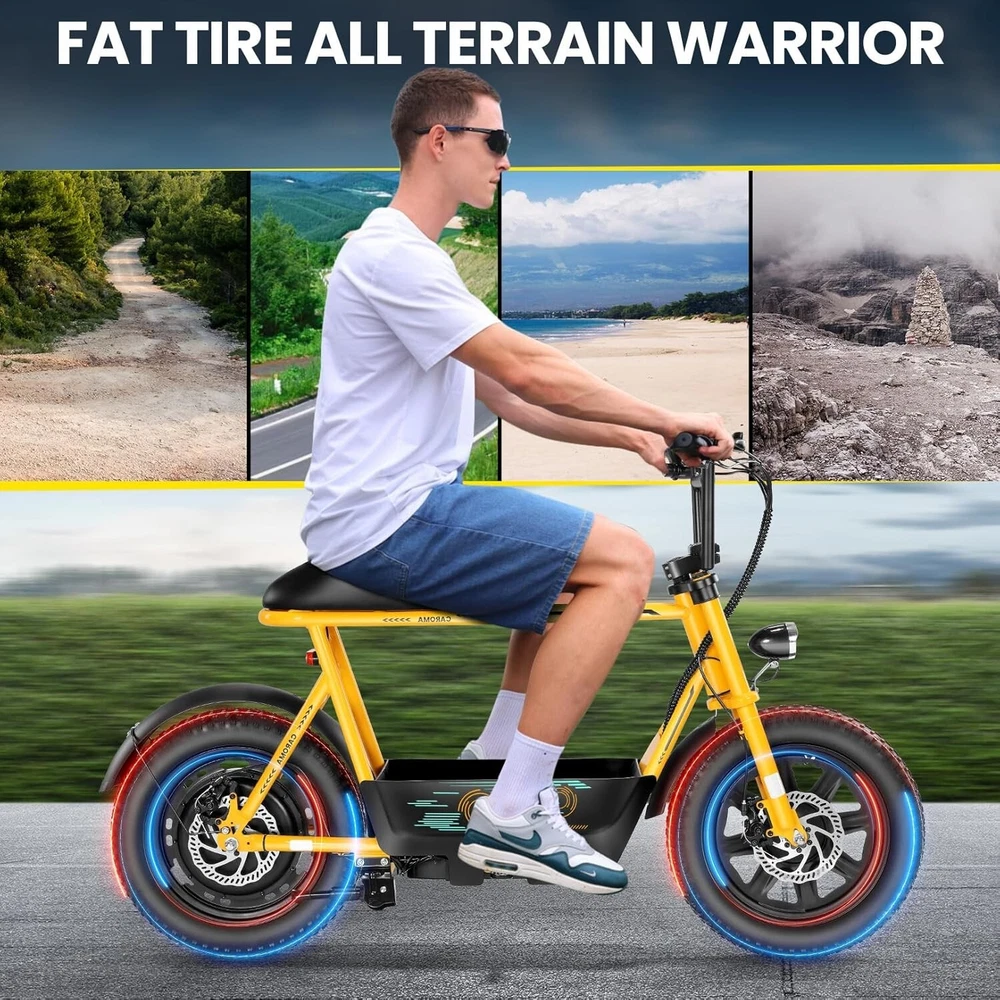 Product Description About this item ใ€๐™๐™ฃ๐™ž๐™ฆ๐™ช๐™š ๐™Ž๐™ฉ๐™ฎ๐™ก๐™š & ๐™Ž๐™ฅ๐™ค๐™ง๐™ฉ๐™จ ๐™‘๐™ž๐™จ๐™ž๐™ค๐™ฃใ€‘:This ๐—บ๐—ผ๐˜๐—ผ๐—ฟ๐—ฐ๐˜†๐—ฐ๐—น๐—ฒ ๐˜€๐˜๐˜†๐—น๐—ฒ electric scooter for adults features a ๐˜‚๐—ป๐—ถ๐—พ๐˜‚๐—ฒ ๐—ฎ๐—ป๐—ฑ ๐—ถ๐—บ๐—ฎ๐—ด๐—ถ๐—ป๐—ฎ๐˜๐—ถ๐˜ƒ๐—ฒ ๐—ฑ๐—ฒ๐˜€๐—ถ๐—ด๐—ป. The saddle is both delicate and soft, with a strengthened pole that creates a thrilling sports adventure experience. You'll turn heads with this bike and be the envy of others. Join us and try out the latest fashion trend. ใ€๐˜ผ๐™ก๐™ก-๐™๐™š๐™ง๐™ง๐™–๐™ž๐™ฃ ๐™ˆ๐™–๐™จ๐™ฉ๐™š๐™ง๐™ฎใ€‘:๐Ÿญ๐Ÿฒ*๐Ÿฏ" ๐—ณ๐—ฎ๐˜ ๐˜๐—ถ๐—ฟ๐—ฒ๐˜€ provide a larger contact area, giving the scooter better stability and grip on a variety of surfaces. Fat tires better absorb vibrations on the road, providing a smooth and comfortable ride even on uneven roads,๐—ฟ๐—ฒ๐—ฑ๐˜‚๐—ฐ๐—ถ๐—ป๐—ด ๐˜๐—ต๐—ฒ ๐—ฟ๐—ถ๐˜€๐—ธ of a blowout when driving over sharp objects, more suitable for extreme or irregular terrain, such as off-road mountain or beach, expanding the range of riding environments. ใ€๐™‹๐™š๐™–๐™  ๐Ÿญ๐Ÿฎ๐Ÿฌ๐Ÿฌ๐—ช ๐™ˆ๐™ค๐™ฉ๐™ค๐™ง & ๐Ÿฑ๐Ÿฌ๐Ÿฌ๐™’๐™ ๐˜ฝ๐™–๐™ฉ๐™ฉ๐™š๐™ง๐™ฎใ€‘: ๐—–๐—”๐—ฅ๐—ข๐— ๐—” ๐——๐Ÿฏ ๐—ฒ๐—น๐—ฒ๐—ฐ๐˜๐—ฟ๐—ถ๐—ฐ ๐˜€๐—ฐ๐—ผ๐—ผ๐˜๐—ฒ๐—ฟ with seat is equipped with a ๐Ÿณ๐Ÿฑ๐Ÿฌ๐—ช(๐—ฃ๐—ฒ๐—ฎ๐—ธ ๐Ÿญ๐Ÿฎ๐Ÿฌ๐Ÿฌ๐—ช) brushless hub motor and ๐Ÿฑ๐Ÿฌ๐Ÿฌ๐—ช๐—ต long lasting battery, so that it can reach ๐Ÿฎ๐Ÿฌ๐— ๐—ฃ๐—› top speed and travel up to ๐Ÿฏ๐Ÿฌ ๐—บ๐—ถ๐—น๐—ฒ๐˜€ on a single charge. The E sooter can run smoothly even on a ๐Ÿฎ๐Ÿฌยฐ road. ใ€๐™‹๐™š๐™ง๐™›๐™š๐™˜๐™ฉ ๐™€๐™ก๐™š๐™˜๐™ฉ๐™ง๐™ž๐™˜ ๐˜ฝ๐™ž๐™ ๐™š ๐™›๐™ค๐™ง ๐˜ผ๐™™๐™ช๐™ก๐™ฉ๐™จ ๐™๐™ฃ๐™™๐™š๐™ง $๐Ÿฑ๐Ÿญ๐Ÿฌใ€‘:๐—–๐—”๐—ฅ๐—ข๐— ๐—” ๐——๐Ÿฏ ๐—ฒ๐—น๐—ฒ๐—ฐ๐˜๐—ฟ๐—ถ๐—ฐ ๐˜€๐—ฐ๐—ผ๐—ผ๐˜๐—ฒ๐—ฟ is a standout choice with its unbeatable price/performance ratio. Not only does it excel in its price range, but its unique design ensuring you turn heads wherever you go. Electric scooter arrives ๐Ÿด๐Ÿฑ% ๐—ฝ๐—ฟ๐—ฒ-๐—ฎ๐˜€๐˜€๐—ฒ๐—บ๐—ฏ๐—น๐—ฒ๐—ฑ. Simply install the front wheel, handlebars, pedal and basket, you're ready to hit the road with ease. ใ€๐™๐™ง๐™ช๐™จ๐™ฉ๐™š๐™™ ๐™Œ๐™ช๐™–๐™ก๐™ž๐™ฉ๐™ฎ ๐˜ผ๐™จ๐™จ๐™ช๐™ง๐™–๐™ฃ๐™˜๐™šใ€‘:The caroma electric scooter is UL 2272 certified. We provide a ๐Ÿญ๐Ÿฎ-๐—บ๐—ผ๐—ป๐˜๐—ต ๐˜„๐—ฎ๐—ฟ๐—ฟ๐—ฎ๐—ป๐˜๐˜† for this electric scooter. If you encounter problems when using the product, please refer to the manual. If the problem cannot be solved, feel free to contact our customer service. ใ€๐™‡๐˜พ๐˜ฟ ๐˜ฟ๐™ž๐™จ๐™ฅ๐™ก๐™–๐™ฎ & ๐™Ž๐™–๐™›๐™š ๐™ฉ๐™ค ๐™๐™ž๐™™๐™šใ€‘:The LCD monitor shows the ๐—ฏ๐—ฎ๐˜๐˜๐—ฒ๐—ฟ๐˜† ๐—น๐—ฒ๐˜ƒ๐—ฒ๐—น of the e scooter, so you can get a clear picture of your riding. The effective front and rear disc brake on the e-scooters provide excellent stability and control. Complete with a ๐—ฐ๐—ผ๐—ผ๐—น ๐—ต๐—ฒ๐—ฎ๐—ฑ๐—น๐—ถ๐—ด๐—ต๐˜ for optimal safety during night rides. The high-brightness headlight and rear brake light ๐—ธ๐—ฒ๐—ฒ๐—ฝ ๐˜†๐—ผ๐˜‚๐—ฟ ๐—ฟ๐—ถ๐—ฑ๐—ถ๐—ป๐—ด ๐˜€๐—ฎ๐—ณ๐—ฒ at night.