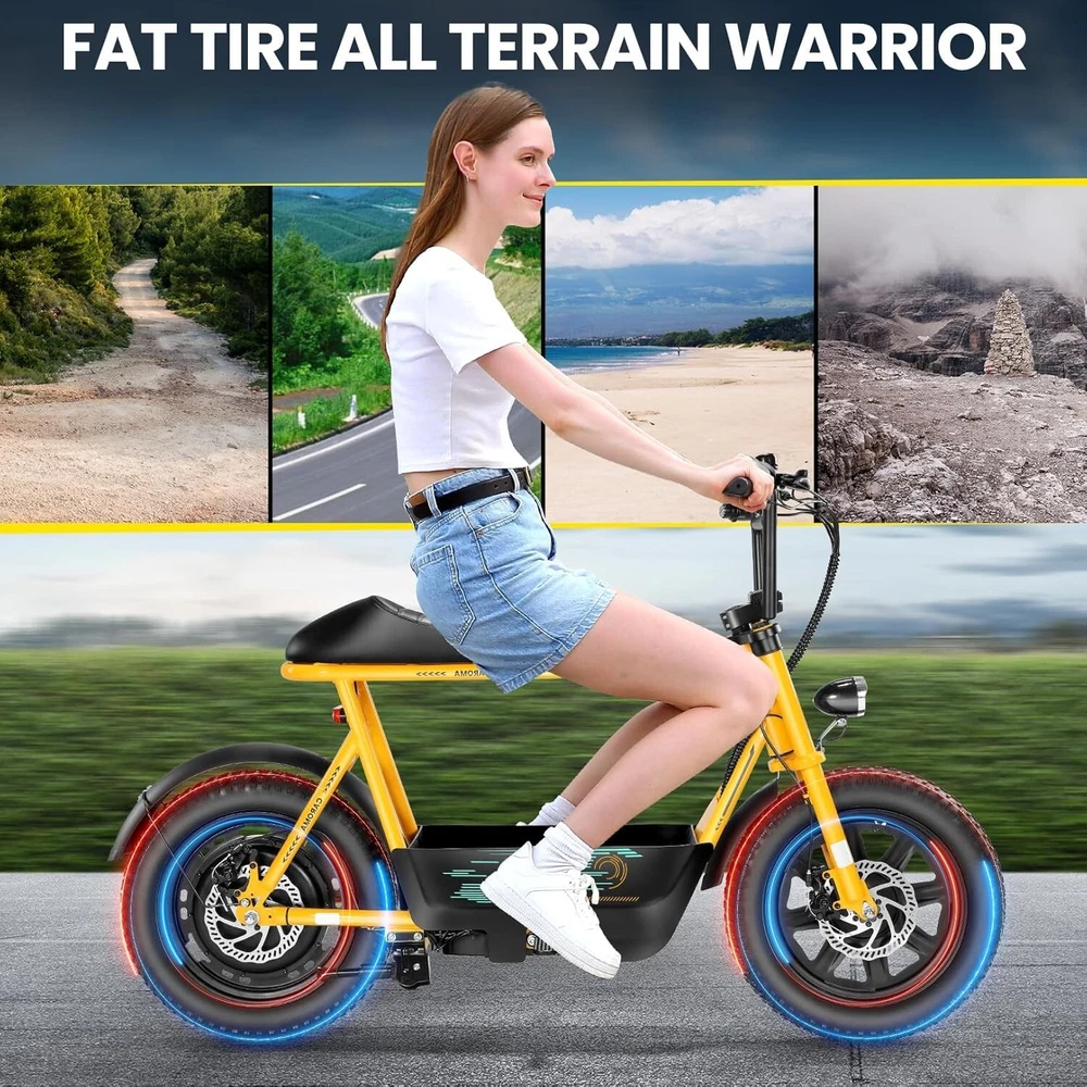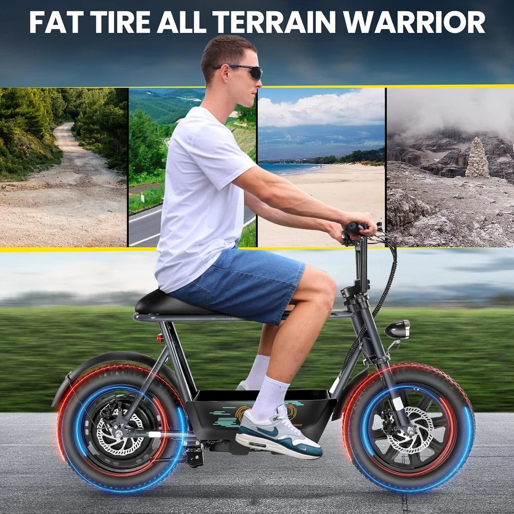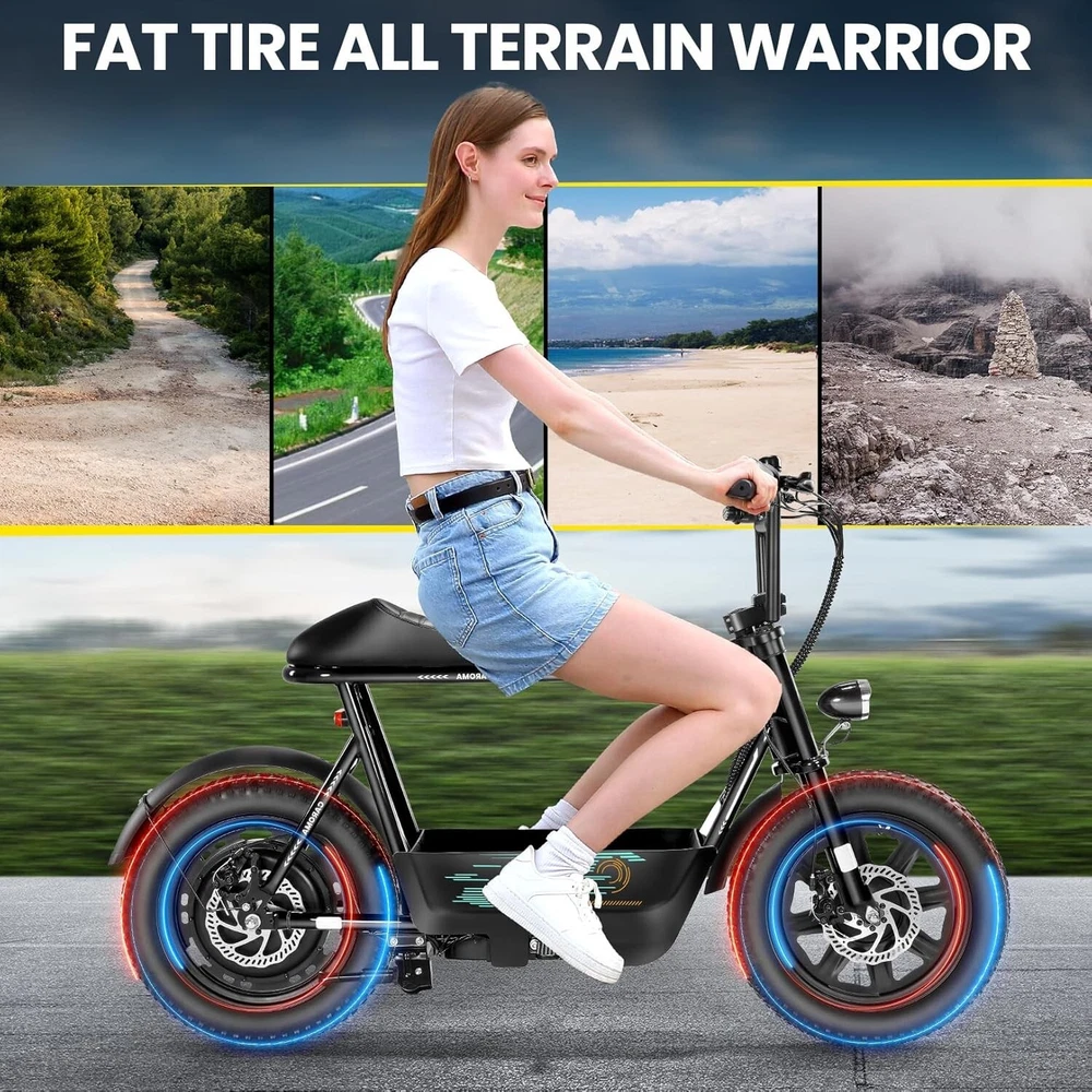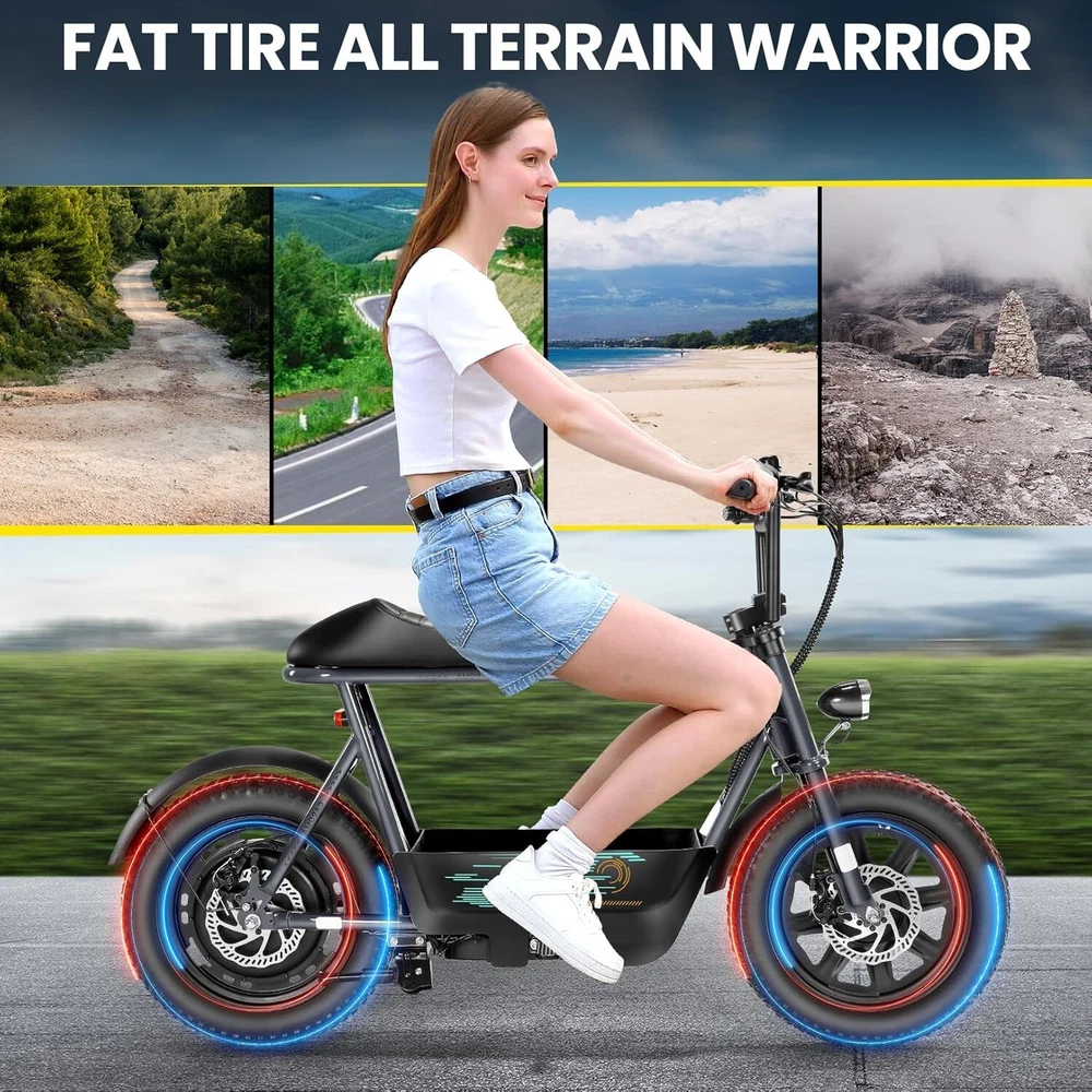 Product Description About this item ใ€๐™๐™ฃ๐™ž๐™ฆ๐™ช๐™š ๐™Ž๐™ฉ๐™ฎ๐™ก๐™š & ๐™Ž๐™ฅ๐™ค๐™ง๐™ฉ๐™จ ๐™‘๐™ž๐™จ๐™ž๐™ค๐™ฃใ€‘:This ๐—บ๐—ผ๐˜๐—ผ๐—ฟ๐—ฐ๐˜†๐—ฐ๐—น๐—ฒ ๐˜€๐˜๐˜†๐—น๐—ฒ electric scooter for adults features a ๐˜‚๐—ป๐—ถ๐—พ๐˜‚๐—ฒ ๐—ฎ๐—ป๐—ฑ ๐—ถ๐—บ๐—ฎ๐—ด๐—ถ๐—ป๐—ฎ๐˜๐—ถ๐˜ƒ๐—ฒ ๐—ฑ๐—ฒ๐˜€๐—ถ๐—ด๐—ป. The saddle is both delicate and soft, with a strengthened pole that creates a thrilling sports adventure experience. You'll turn heads with this bike and be the envy of others. Join us and try out the latest fashion trend. ใ€๐˜ผ๐™ก๐™ก-๐™๐™š๐™ง๐™ง๐™–๐™ž๐™ฃ ๐™ˆ๐™–๐™จ๐™ฉ๐™š๐™ง๐™ฎใ€‘:๐Ÿญ๐Ÿฒ*๐Ÿฏ" ๐—ณ๐—ฎ๐˜ ๐˜๐—ถ๐—ฟ๐—ฒ๐˜€ provide a larger contact area, giving the scooter better stability and grip on a variety of surfaces. Fat tires better absorb vibrations on the road, providing a smooth and comfortable ride even on uneven roads,๐—ฟ๐—ฒ๐—ฑ๐˜‚๐—ฐ๐—ถ๐—ป๐—ด ๐˜๐—ต๐—ฒ ๐—ฟ๐—ถ๐˜€๐—ธ of a blowout when driving over sharp objects, more suitable for extreme or irregular terrain, such as off-road mountain or beach, expanding the range of riding environments. ใ€๐™‹๐™š๐™–๐™  ๐Ÿญ๐Ÿฎ๐Ÿฌ๐Ÿฌ๐—ช ๐™ˆ๐™ค๐™ฉ๐™ค๐™ง & ๐Ÿฑ๐Ÿฌ๐Ÿฌ๐™’๐™ ๐˜ฝ๐™–๐™ฉ๐™ฉ๐™š๐™ง๐™ฎใ€‘: ๐—–๐—”๐—ฅ๐—ข๐— ๐—” ๐——๐Ÿฏ ๐—ฒ๐—น๐—ฒ๐—ฐ๐˜๐—ฟ๐—ถ๐—ฐ ๐˜€๐—ฐ๐—ผ๐—ผ๐˜๐—ฒ๐—ฟ with seat is equipped with a ๐Ÿณ๐Ÿฑ๐Ÿฌ๐—ช(๐—ฃ๐—ฒ๐—ฎ๐—ธ ๐Ÿญ๐Ÿฎ๐Ÿฌ๐Ÿฌ๐—ช) brushless hub motor and ๐Ÿฑ๐Ÿฌ๐Ÿฌ๐—ช๐—ต long lasting battery, so that it can reach ๐Ÿฎ๐Ÿฌ๐— ๐—ฃ๐—› top speed and travel up to ๐Ÿฏ๐Ÿฌ ๐—บ๐—ถ๐—น๐—ฒ๐˜€ on a single charge. The E sooter can run smoothly even on a ๐Ÿฎ๐Ÿฌยฐ road. ใ€๐™‹๐™š๐™ง๐™›๐™š๐™˜๐™ฉ ๐™€๐™ก๐™š๐™˜๐™ฉ๐™ง๐™ž๐™˜ ๐˜ฝ๐™ž๐™ ๐™š ๐™›๐™ค๐™ง ๐˜ผ๐™™๐™ช๐™ก๐™ฉ๐™จ ๐™๐™ฃ๐™™๐™š๐™ง $๐Ÿฑ๐Ÿญ๐Ÿฌใ€‘:๐—–๐—”๐—ฅ๐—ข๐— ๐—” ๐——๐Ÿฏ ๐—ฒ๐—น๐—ฒ๐—ฐ๐˜๐—ฟ๐—ถ๐—ฐ ๐˜€๐—ฐ๐—ผ๐—ผ๐˜๐—ฒ๐—ฟ is a standout choice with its unbeatable price/performance ratio. Not only does it excel in its price range, but its unique design ensuring you turn heads wherever you go. Electric scooter arrives ๐Ÿด๐Ÿฑ% ๐—ฝ๐—ฟ๐—ฒ-๐—ฎ๐˜€๐˜€๐—ฒ๐—บ๐—ฏ๐—น๐—ฒ๐—ฑ. Simply install the front wheel, handlebars, pedal and basket, you're ready to hit the road with ease. ใ€๐™๐™ง๐™ช๐™จ๐™ฉ๐™š๐™™ ๐™Œ๐™ช๐™–๐™ก๐™ž๐™ฉ๐™ฎ ๐˜ผ๐™จ๐™จ๐™ช๐™ง๐™–๐™ฃ๐™˜๐™šใ€‘:The caroma electric scooter is UL 2272 certified. We provide a ๐Ÿญ๐Ÿฎ-๐—บ๐—ผ๐—ป๐˜๐—ต ๐˜„๐—ฎ๐—ฟ๐—ฟ๐—ฎ๐—ป๐˜๐˜† for this electric scooter. If you encounter problems when using the product, please refer to the manual. If the problem cannot be solved, feel free to contact our customer service. ใ€๐™‡๐˜พ๐˜ฟ ๐˜ฟ๐™ž๐™จ๐™ฅ๐™ก๐™–๐™ฎ & ๐™Ž๐™–๐™›๐™š ๐™ฉ๐™ค ๐™๐™ž๐™™๐™šใ€‘:The LCD monitor shows the ๐—ฏ๐—ฎ๐˜๐˜๐—ฒ๐—ฟ๐˜† ๐—น๐—ฒ๐˜ƒ๐—ฒ๐—น of the e scooter, so you can get a clear picture of your riding. The effective front and rear disc brake on the e-scooters provide excellent stability and control. Complete with a ๐—ฐ๐—ผ๐—ผ๐—น ๐—ต๐—ฒ๐—ฎ๐—ฑ๐—น๐—ถ๐—ด๐—ต๐˜ for optimal safety during night rides. The high-brightness headlight and rear brake light ๐—ธ๐—ฒ๐—ฒ๐—ฝ ๐˜†๐—ผ๐˜‚๐—ฟ ๐—ฟ๐—ถ๐—ฑ๐—ถ๐—ป๐—ด ๐˜€๐—ฎ๐—ณ๐—ฒ at night.