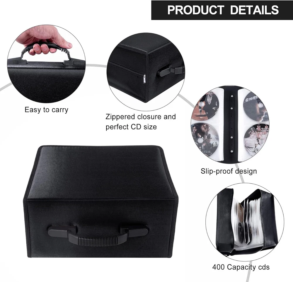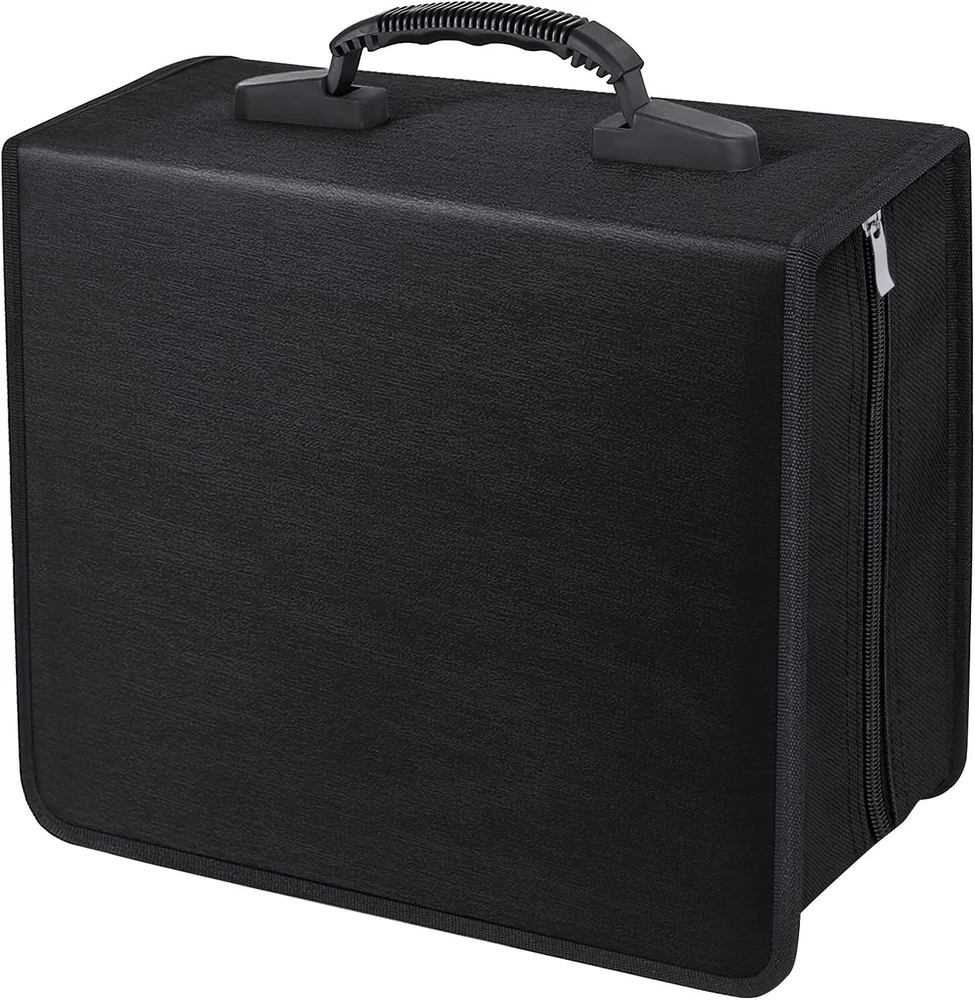 High Quality Material: DVD Binder made of high quality Nylon, moisture & tear resistant Plastic and Non-woven fabric material for long time use. Large Capacity: This Fasmov CD/DVDStorage binder have 400 slots, but the best status is holding around 520 CD/DVD Discs and the zipper can be closed easily and perfectly, this design is for replacing the damaged non-woven fabric CD slots. Easy to transport: Zipper enclosure for safe storage and maximum protection from dust and scratches, Addition Heavy duty hand strap on top for for easiler carry. Perfect Design: Nice looking, simple zipper opening, and easy access to the CDs; Easily remove and re-insert, removable pages allow for convenient organization, offers protection to keep your CD/DVD in good conditiong for long time use. Ideal Solution: Perfect for music CDs, DVD & Blu-ray movies, and video game discs, keep all kind of Discs in a compact space, not easy to shake. Product Details: Max. Capacity: 520 PCS Material: Nylon Color: Black Dimension: 31.5x29x18cm/12.4"x11.4"x7.1" Package included: 1 x 520Pcs Disc CD DVD Storage Bag Payment Payments are accepted through Paypal only. It's a quick, safe and free way to pay for your online purchases.Payments are instant, so we can prepare your order for shipping as soon as you have paid. Shipping If you have not received your item after estimated delivered days, please do not hurry to open case to us. We would recheck the shipping status for you and decide refund or something in your request. We do COMBINED SHIPMENT on any multiple purchases. We are pleased to grant a 10% shipping cost discount on purchases with more than one (1) item. We are also happy to offer personalized discounts for larger order. Returns All returned products must be in their original packaging with all included accessories intact,and must be accompanied by a copy of the Return Item Authorization (RMA) issued by us,and sent to the address indicated in the Return Item Authorization.We shall notify you once we have received and processed your returned item. We typically process your returned items for evaluation & investigation within seven (7) days of receiving them.If it meets our warranty requirements,a refund will be given or a brand new replacement unit will be sent to you at our cost. Taxes & Custom Duties. The shipping cost does not cover any local taxes, import duties, customs clearance,or any other import-related costs levied by your government.Please check with your local customs office for more information. Contact US Any questions, please feel free to contact with us. We will solve the problem for you asap on Monday when we back to work. If you are satisfied with the product or our service, we really appreciate that we could have your positive comment, it would be driving force for us.