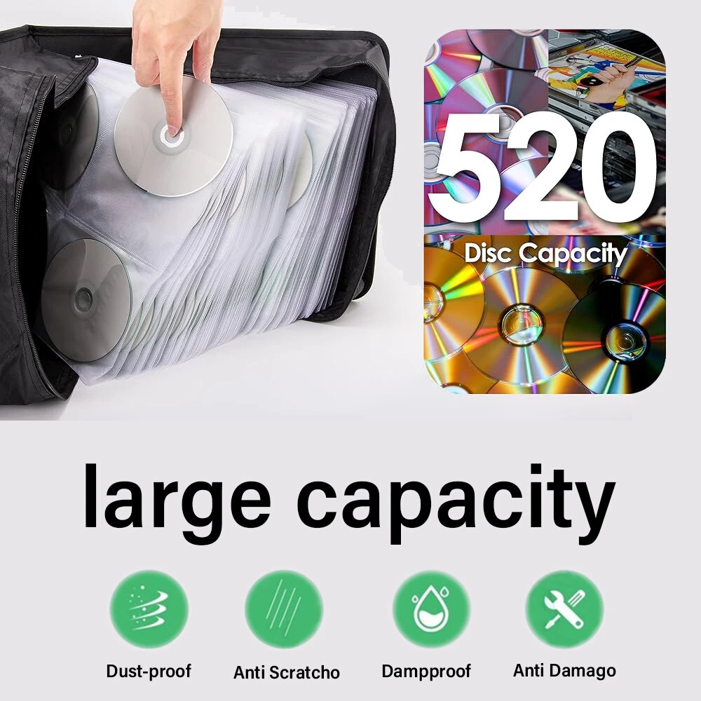 Feature: - Large capacity can hold 520pcs CD/VCD/DVD - 65 pages-8 discs per page, holds up to 520 discs - High quality PU material for reliable protection - Easy to put in, take out or carry around - Protect CDs from dust, damp, scratches and corruption - Great for traveling or just staying organized when collecting CDs - Made with Zipper design, secure for your CD DVD Specification: Max. Capacity: 520 PCS Material: PU Color: Black Dimension: 12.4x11.4x7.1 inches Package Included: 1 x 520 Disc CD DVD Storage Bag