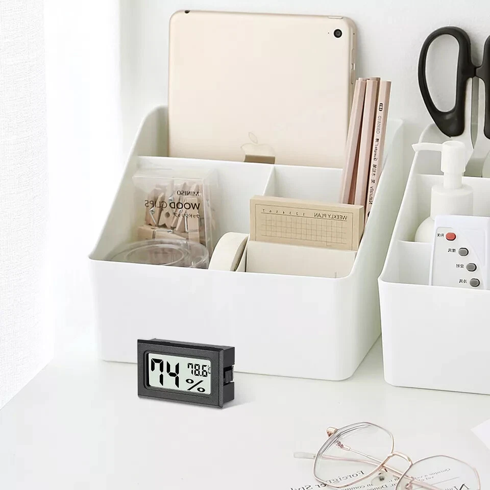 Features: Note:This product is a Celsius thermometer and cannot be converted to Fahrenheit. Mini Digital Humidity Thermometer allows you to easily know the temperature and humidity around you 2in1 meter with built-in probe; digital electronic thermometer and hygrometer for measuring temperature and humidity for indoor use Centigrade(°C) display, this thermometer displays temperature in Centigrade Temperature measuring range: -58°C-158°C ; Humidity measuring range: 10%-99%RH (Measures conditions every 10 seconds) Temperature measurement accuracy: ±1°C; Humidity measurement accuracy: ±5%RH Specification: Brand New Color:Black The indoor temperature and humidity display Default Centigrade temperature Type: Digital Thermometer Hygrometer Material: ABS Screen: LCD display Temperature measurement accuracy: ± 1.0 °C Temperature sampling cycle: 10 seconds Relative Humidity Test range: 10% -99% Humidity Resolution: 1% Humidity measurement accuracy: ± 5 (at room temperature 25 ℃)% Size: 48 × 28.6 × 15 (mm)/1.9*1.1*0.6 inch Display resolution: 0.1 °C Display: LCD (three and a half) Power: 0.15 mW under working conditions Battery: 2 1.5V of LR44 button batteries Temperature measurement accuracy: ± 1 °C Packet contents: 5-20pcs Digital Thermometer Hygrometer(Centigrade )