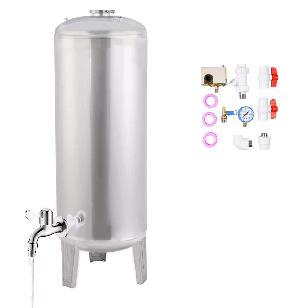 Store category Sign Up Now ! You may also like Product Description Bullet Points: Robust Performance: Reinforced to last, the Stainless Steel Pressure Tank can withstand up to 6kg pressure, ensuring dependable durability and safety. Its working pressure within 3kg ensures smooth operation. Long-Lasting Use: With a body entirely made of stainless steel, this water pressure tank ensures long-lasting performance. Its resistant to wear and tear, along with its waterproof and temperature-resistant capacity, makes it a dependable choice. Dependable Performance: Our stainless steel pressure tank is equipped with an automatic discharge system that prevents negative pressure, along with a top cleaning port for easy maintenance. Its unique design ensures dependable performance. Hassle-Free Hydration: Our Stainless Steel Pressure Tank ensures a simple-to-use vertical tank that automatically pumps water when it's low and stops when it's full. A seamless pneumatic water supply without the need for any management on your part. Broadly Used: Delivering dependable water pressure for industrial cleaning and agricultural water supply, this stainless steel pressure tank provides high performance for a wide range of applications, including watering your garden and pumping well water. This Water Pressure Tank has a working pressure of 3kg and is capable of automatic discharge and stops automatically when water is full. With a wide range of applications, this tank is perfect for any household or commercial use. Specifications: Material: Stainless steel Type: 200L Product size: about 40x90cm/15.75x35.43 inches Suitable for: School, factory, home, irrigation Packing List: 1*200L stainless steel pressure tank 1*Pressure control 1*Pressure gauge 1*Safety tap 1*2-in-1 air check tap 1*Discharge outlet elbow 2*Adhesive 1*Outlet connector 1*Outlet ball tap 1*Discharge outlet ball tap Payment Delivery details Terms of sales About us Feedback & DSRs Payment Before you palce an order, please kindly make sure that you have a paypal account. We accept PAYPAL payment only. Payment should be completed within 2 days after auction closed, or unpaid dispute will be filed for an closing auction. An unpaid case will be filled after 4 days. Delivery details We ship to your eBay address. Each package will be shipped to US by UPS Regular Parcel with tracking number. Please check your shipping address carefully before checkout, it can't be changed if order completed. All items will be shipped within 1-2 business day upon receipt of payment.Orders placed on weekend will be shipped within 3 days. If you do not receive your item in 7-10 business days.please contact us immediately for further assistance. We will be responsible for any damages or losses incurred in the shipping process. About us We maintain high standards of excellence FIVE STAR and strive for 100% customer satisfaction! Positive Feedback is very important to us. We hope that you contact us immediately Before you give us neutral or negative feedback, so that we can satisfactorily address your concerns. We promise to offer the lowest price and high quality produce. Our working time: From Monday to Friday(9:30 am to 18:00pm), we don't working on holidays ,hope you can understand and know that , thank you. Please always talk to us via ebay Message. We appreciate your business and look forward to growing our e-Bay sales with satisfied customers. Feedback Contact us If you have any questions, please feel free to contact with us by ebay Message during our business hours ( 9:30a.m. to 5:30 p.m.), or email us through eBay, we will try our best to help you to resolve it. For any presale or after-sale questions,please do feel free to email us! Due to the time difference, each email will be replied within 1 working day,and weekend will be delayed a bit. Feedback