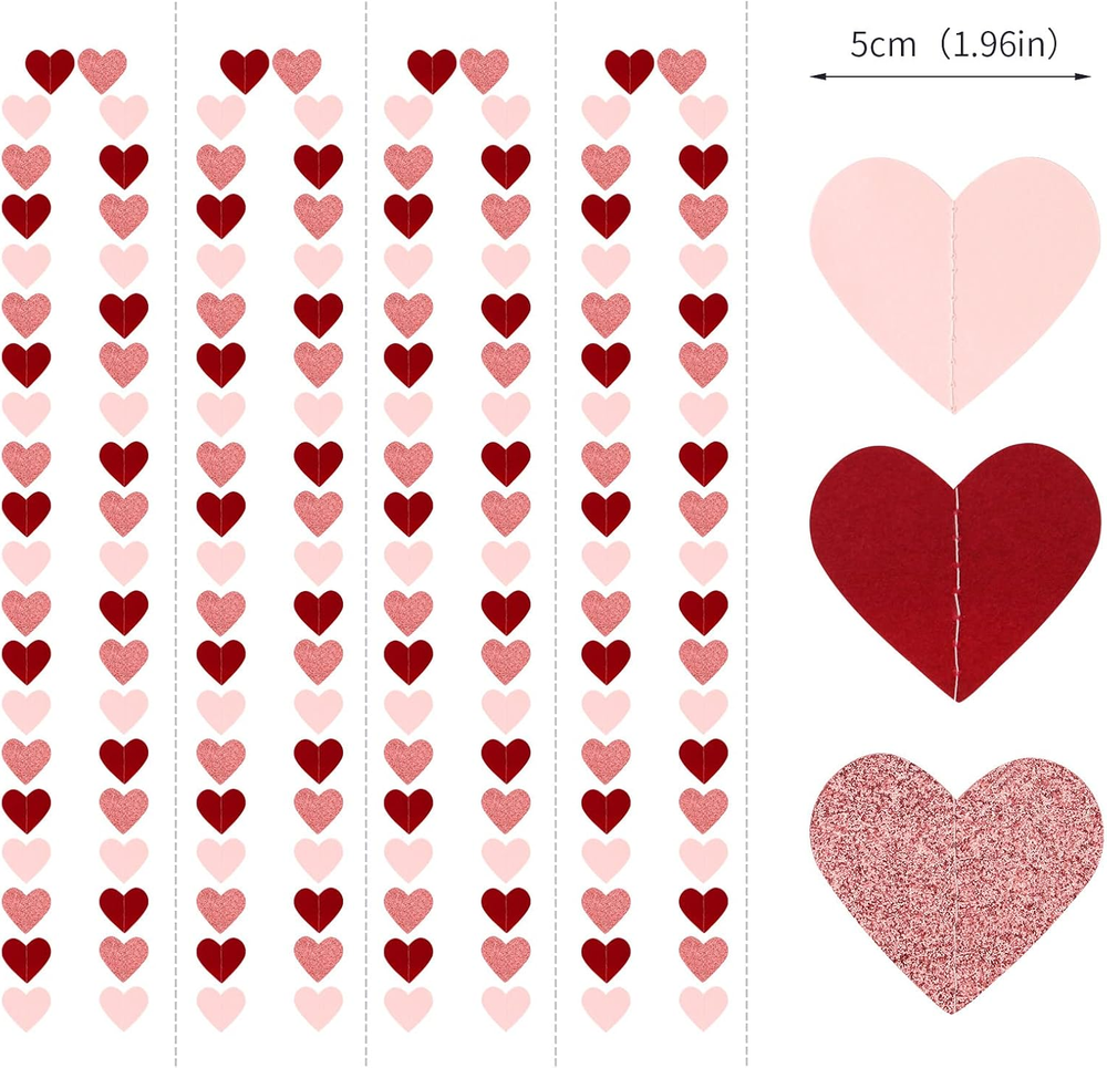【Package including】The party garlands includes 4 x paper heart garlands, each backdrop bunting is 13 feet/ 4 meters long, total length is 52 feet/ 12 meters. Every love shape Streamer Banner has 40pcs dots which the size is 1.97” 【High Quanlity】The material of the party streamers is eco-friendly paper and double sided rose gold gittler pink red paper .You can cut to any length you want if you need shorter length than 4M and the paper is durable and won't fall apart because of the cut. 【 Easy to assemble 】Just open the package to hang it directly because they have been sewn together with double sturdy thread, which can really save your time and energy.The pink white rose garland can be hanging from ceilin,above a table, under the verandah, or from branches in trees . 【Widely Used】They are perfect for gender reveal,bachelorette, bridal shower, engagement party decor,birthday decorations for women, baby shower for girl, weddings, graduations, anniversaries,mothers day,valentines day, burgundy party decorations,rose gold party decorations. 【Quality Guarantee】If you are not satisfied with the color, quality or other aspects,please contact us for a refund or replacement. We have a 30 day refund guarantee for every purchase. 【Package including】The party garlands includes 4 x paper heart garlands, each backdrop bunting is 13 feet/ 4 meters long, total length is 52 feet/ 12 meters. Every love shape Streamer Banner has 40pcs dots which the size is 1.97” 【High Quanlity】The material of the party streamers is eco-friendly paper and double sided rose gold gittler pink red paper .You can cut to any length you want if you need shorter length than 4M and the paper is durable and won't fall apart because of the cut. 【 Easy to assemble 】Just open the package to hang it directly because they have been sewn together with double sturdy thread, which can really save your time and energy.The pink white rose garland can be hanging from ceilin,above a table, under the verandah, or from branches in trees . 【Widely Used】They are perfect for gender reveal,bachelorette, bridal shower, engagement party decor,birthday decorations for women, baby shower for girl, weddings, graduations, anniversaries,mothers day,valentines day, burgundy party decorations,rose gold party decorations.【Quality Guarantee】If you are not satisfied with the color, quality or other aspects,please contact us for a refund or replacement. We have a 30 day refund guarantee for every purchase.