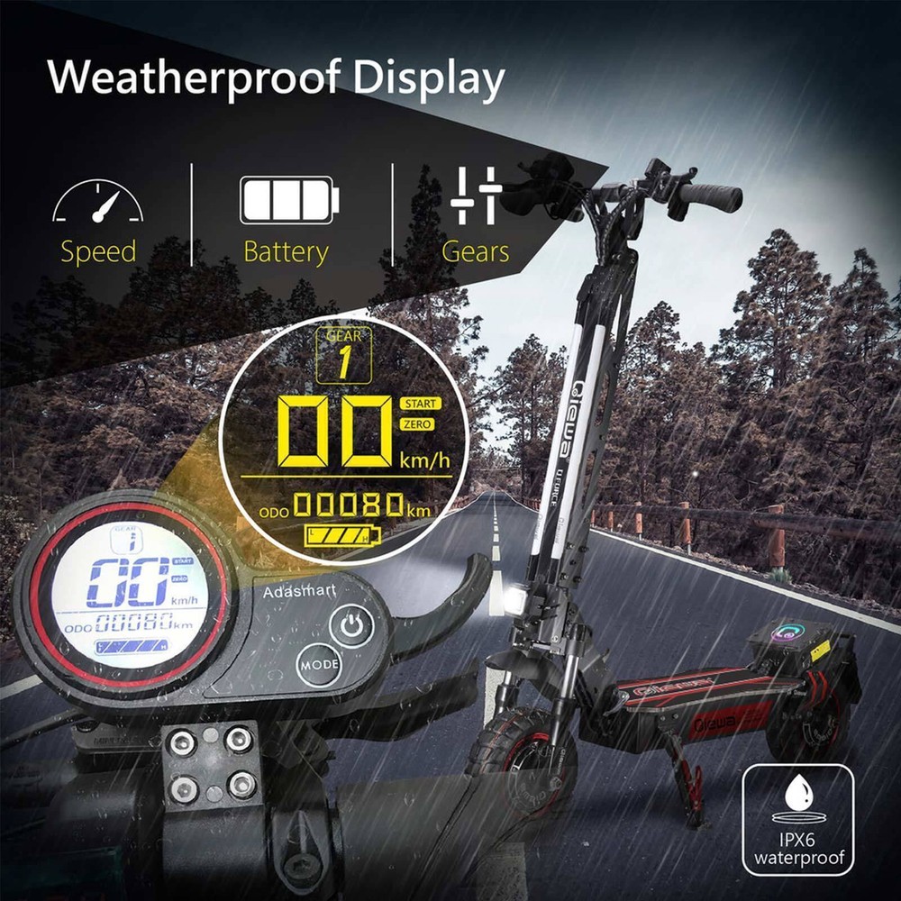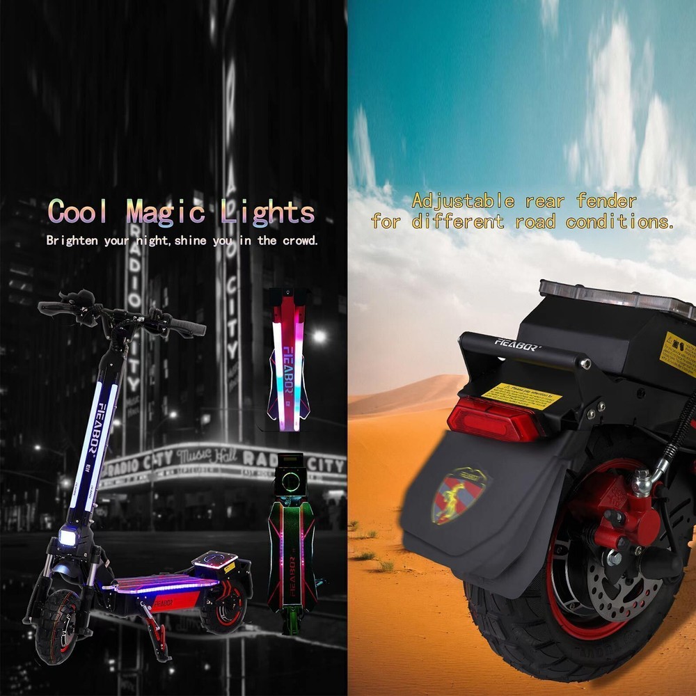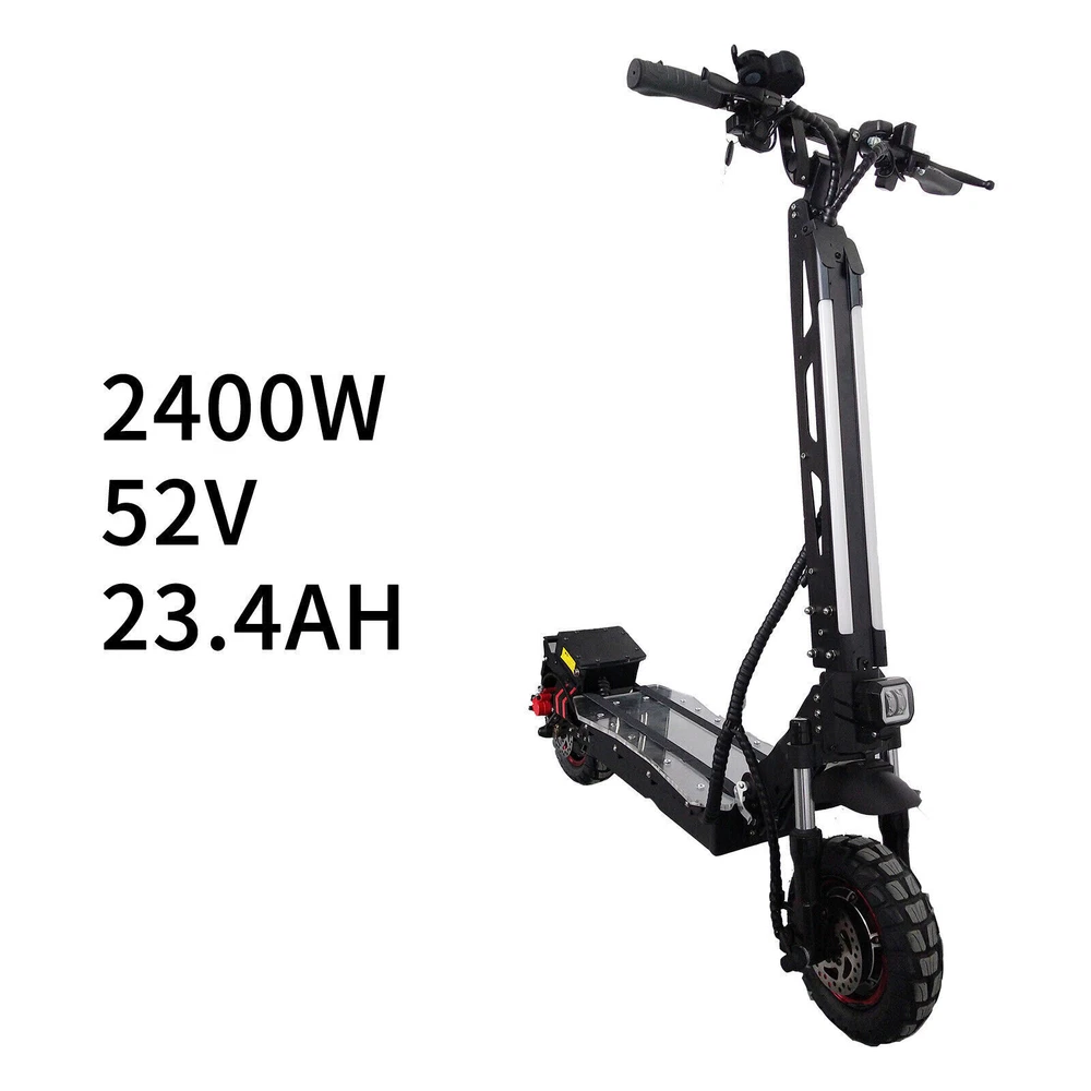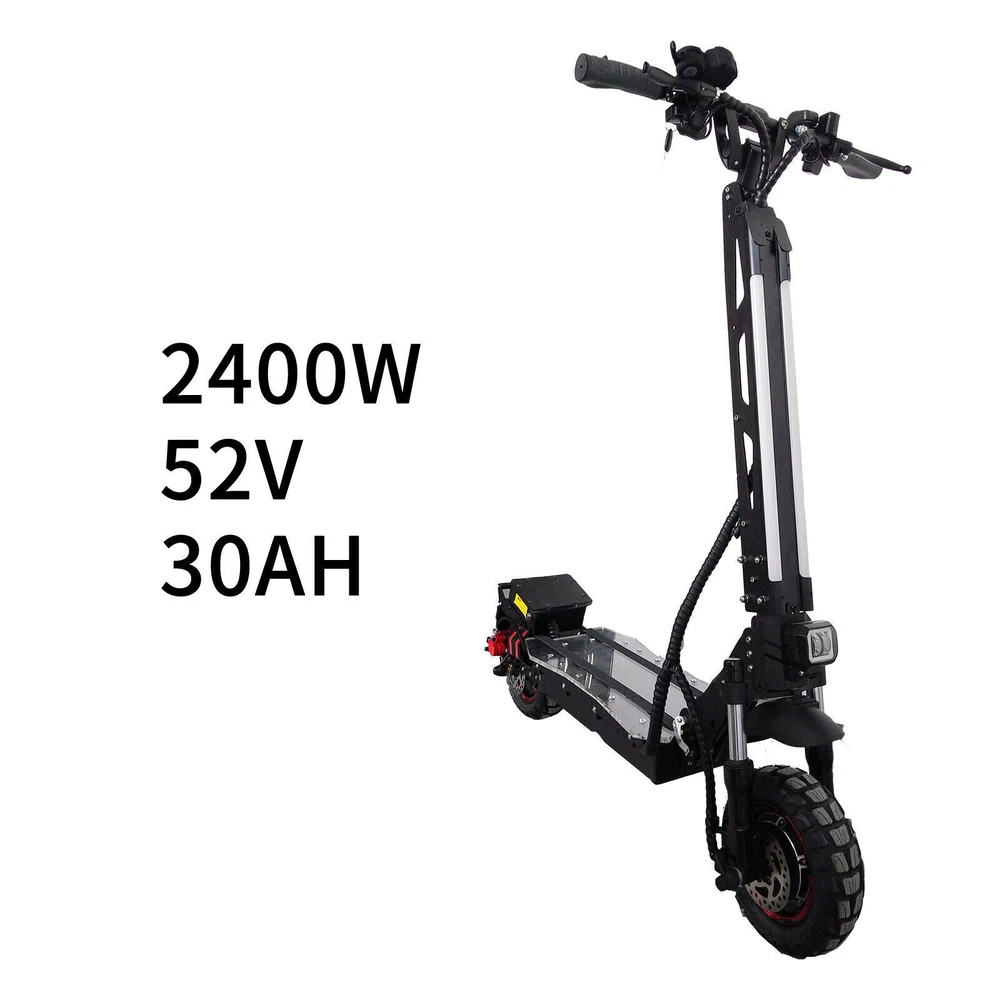 This electric scooter is a beast! The dual 2400W motors deliver insane power, perfect for off-road adventures. The hydraulic shocks make rides smooth, even on rough terrain. Folding it is a breeze, and the sturdy build feels premium. The disc brakes give solid stopping power, and the bright headlight ensures safe night rides. Super fast, super fun—worth every penny!