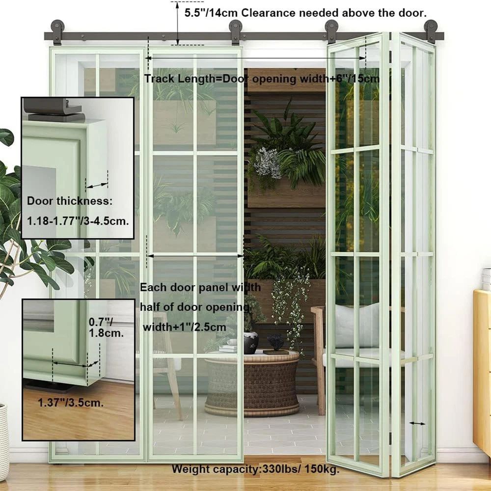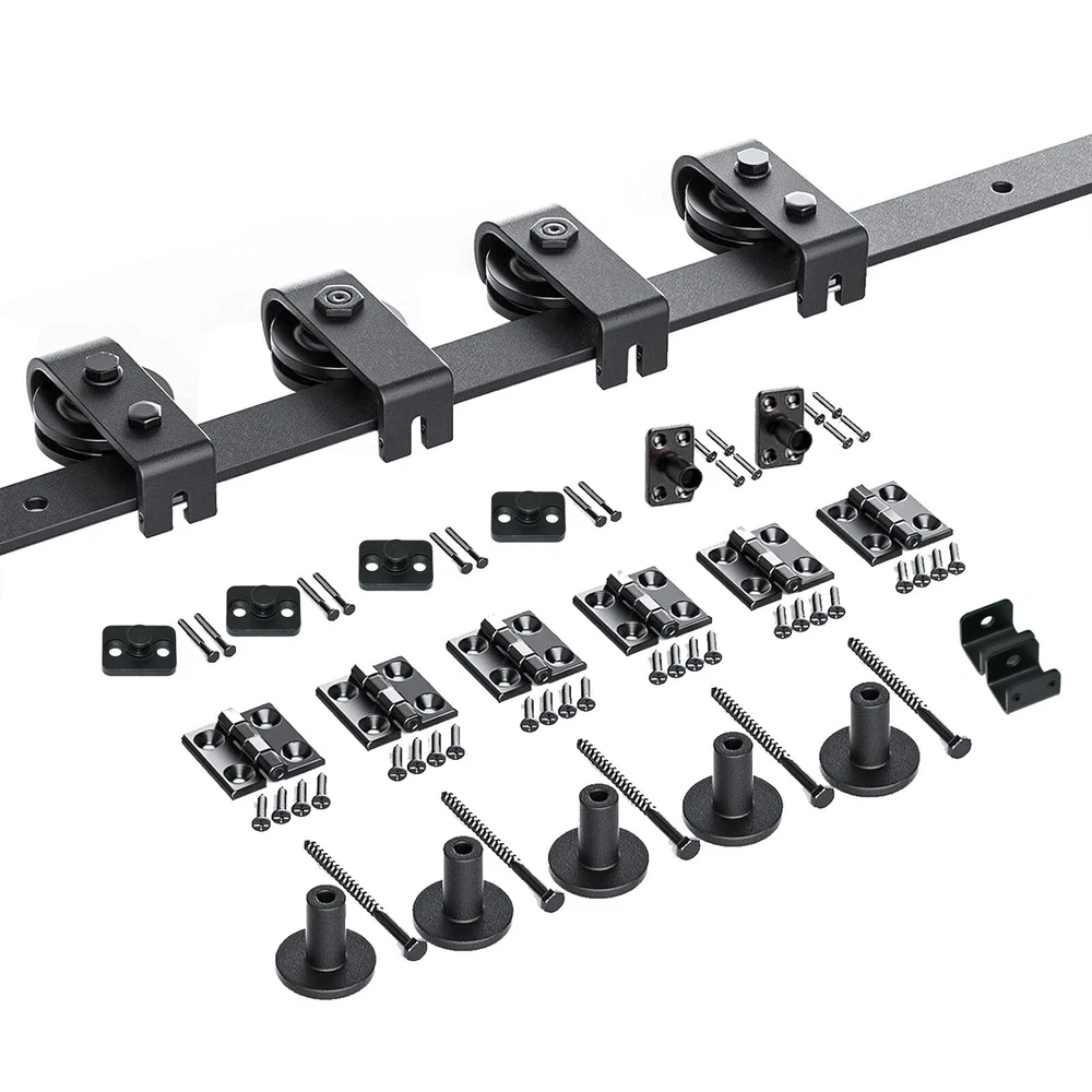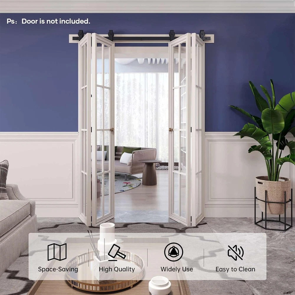 52in Bifold Sliding Barn Door Hardware Folding Roller Flat Track Kit For 4 Door