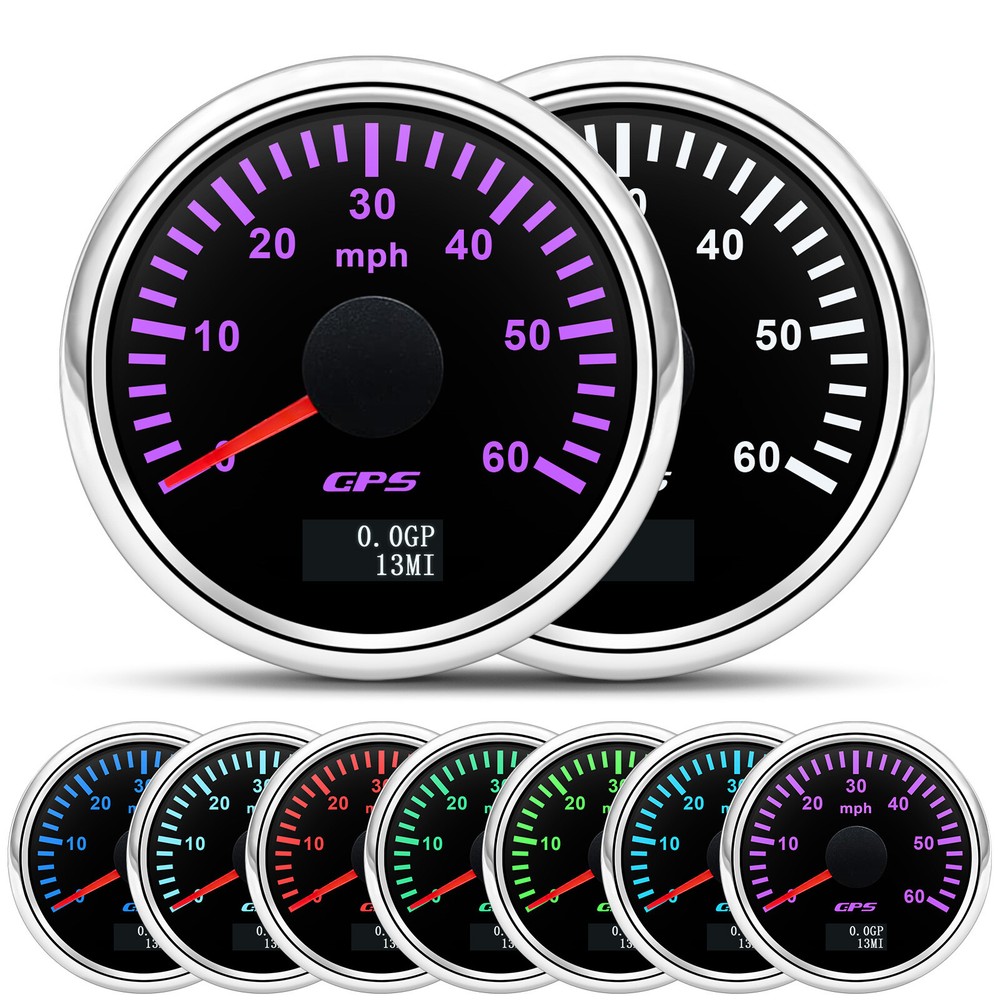 52mm GPS Speedometer Gauge 0-30MPH with 7-Color LED for Boats Cars Motorcycles
