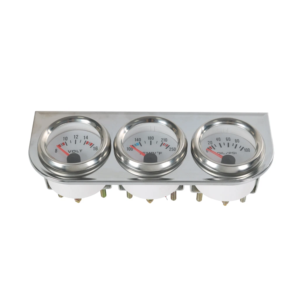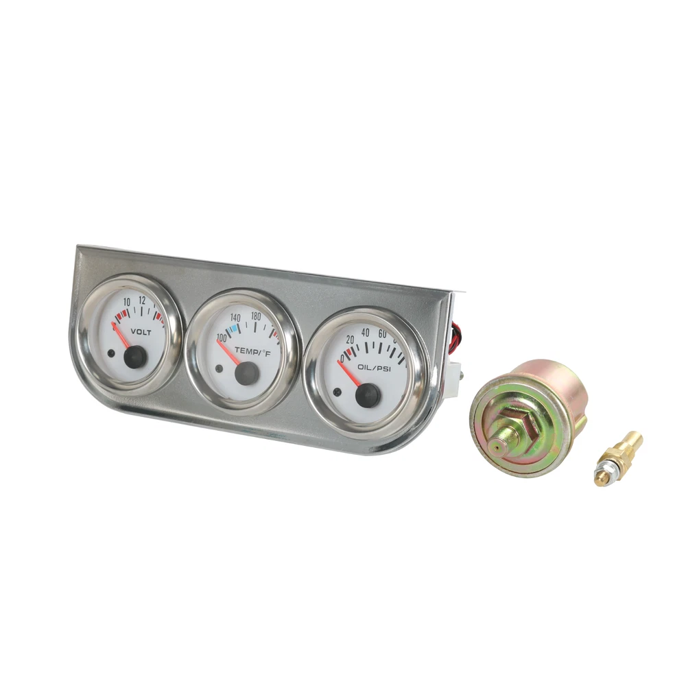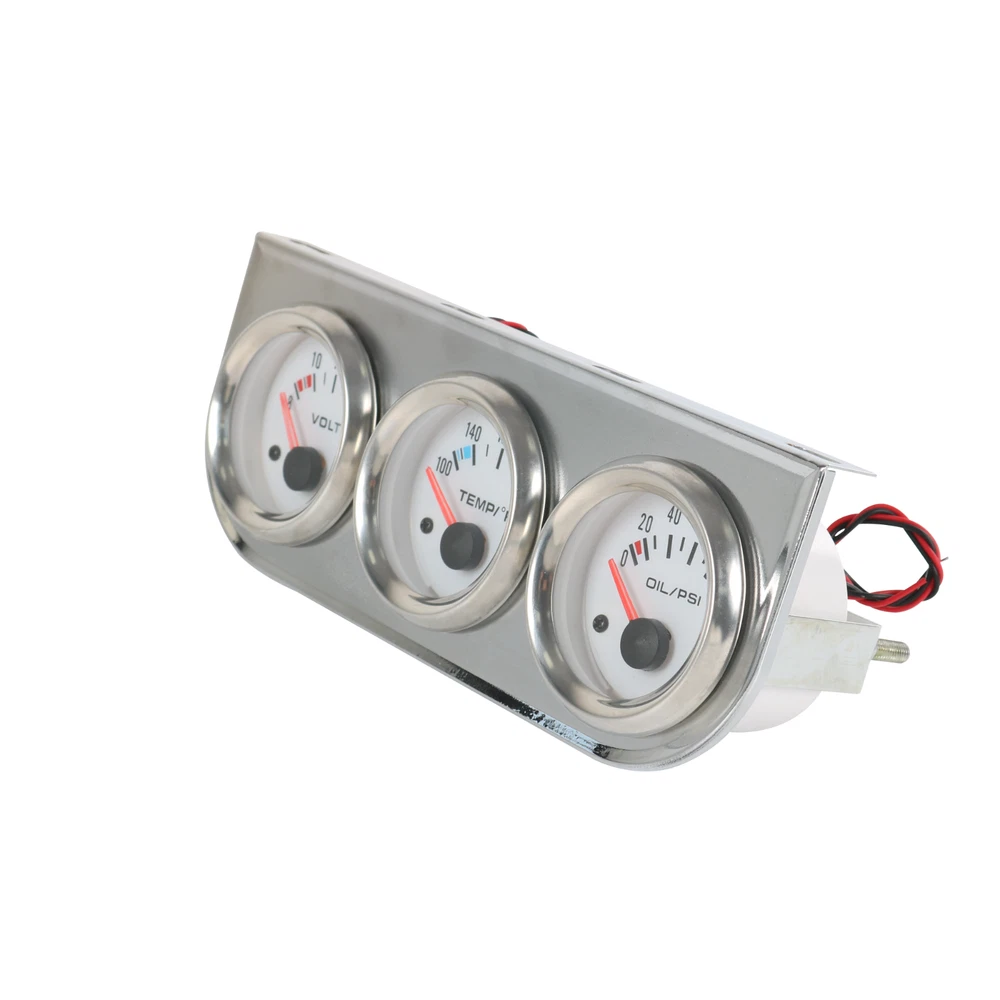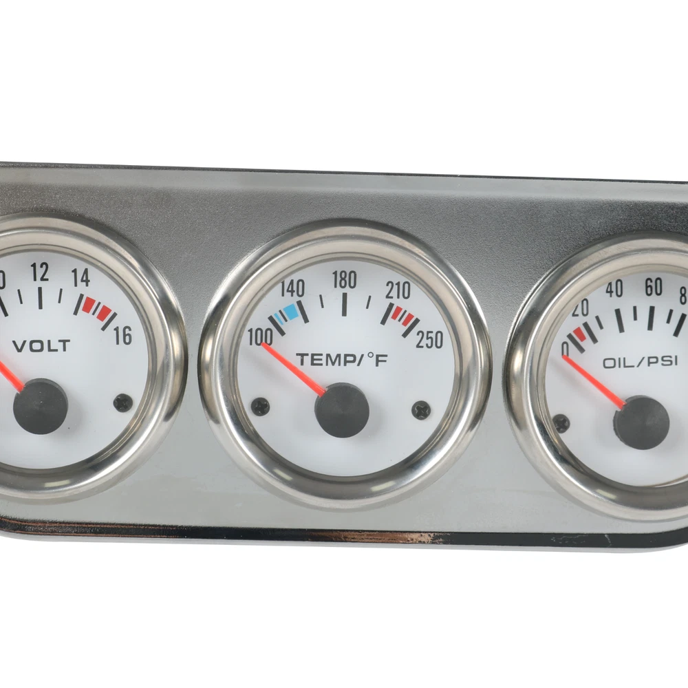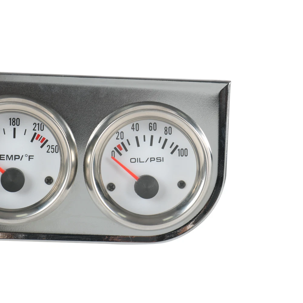 Universal 2'' 52mm Chrome Volt Water Oil Pressure Triple 3 Gauge Set Gauges Kit ★ 1 Year warranty, long durable life ★ Fast and Free Ecomomic/Standard shipping Manufacturer: JDMSPEED Application: This item is universal fit for most 12V vehicles Specification: Color: Chrome housing, white face, red needles Size: Like the picture show Water Temp Gauge: 100 to 280 ℉ Volts Gauge: 8V to 16V Oil Pressure Gauge: 0 to 100 psi Size of Sensor: Z 1/2 Features: Universal Chrome 3-Gauge Mechanical Kit Includes oil pressure, voltage, and water temperature. Gauges are illuminated. Installation kit included with everything needed to install. PS: Ship items within one working days All parts are in stock and ready to ship The part you see is the part you receive Standard size, perfect match for your vehicle All parts are fully inspected and professionally packaged We respond to any and all buyer questions or issues Shipping and Payment Return Warranty Delivery Warning Shipping and Payment We ship all the packages within 1-2 business days. Our shipment arrive your address will take around 2-10 business days. Orders placed on Saturday or Sundays should be processed and shipped on Monday. Hope you can understand. If you didn't received packages in 15 business days, please contact us freely, and we will check and solve it. Please purchase and pay for the item through eBay auction, and do not manually send us a PayPal payment. Return 60-day money back guarantee We offer a 6-month warranty for most of our products that starts on the original purchase date. If you are not satisfied with our product, most items can be returned in their new/original/unworn condition within 60 days. We will offer a refund or exchange (Shipping and handling fees are not refundable). A 15% restocking fee ($10 minimum) may be applicable. Items that have been worn, misused, abused, damaged, and/or altered beyond warranty coverage and period will not be refunded or exchanged. Warranty This item have 1-year warranty. In the event the item should fail due to manufacturing defects during intended use, we will replace the part by free. We only warranty cost of item parts. Any installation or other fees are non-refundable. Note: Any modifying the item of any kind without contacting us will void any and all warranty coverage for this item. Please contact us before modifying the part so that we have the opportunity to correct the situation. You can contact us by ebay message to get the full text of the written warranty. Delivery We ship all the packages within 1-2 business days. Arrival time for the USA buyers: about 1-6 business days. Arrival time for Canada buyers: about 3-10 business days. Please allow 3 to 6 working days to receive your item(s). International Buyers - Please Note: Import duties, taxes, and charges are not included in the item price or shipping cost. These charges are the buyer's responsibility. Please check with your country's customs office to determine what these additional costs will be prior to bidding or buying. Warning This product can expose you to chemicals including Chromium (Hexavalent Compounds), which is known to the State of California to cause cancer, and birth defects or other reproductive harm. For more information, go to California goverment website, you can search California P65Warnings. Type Instrument Cluster Manufacturer Part Number 100816 Other Part Number Voltage Meter + Water Temp + Oil Press Gauge Interchange Part Number Universal Chrome 2inch 52MM Triple Gauge Kit Size 2'' 52mm Feature Chrome Display Type Analog Items Included Temperature Gauge, Oil Pressure Gauge, Mounting Hardware Needle Color Red Features Illuminated (Backlit) OE/OEM Part Number This item is universal fit for most 12V vehicles Unit of Measure Degrees Farenheit, psi Color Silver Brand JDMSPEED Manufacturer Warranty 1 Year