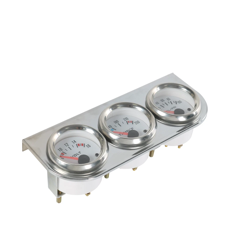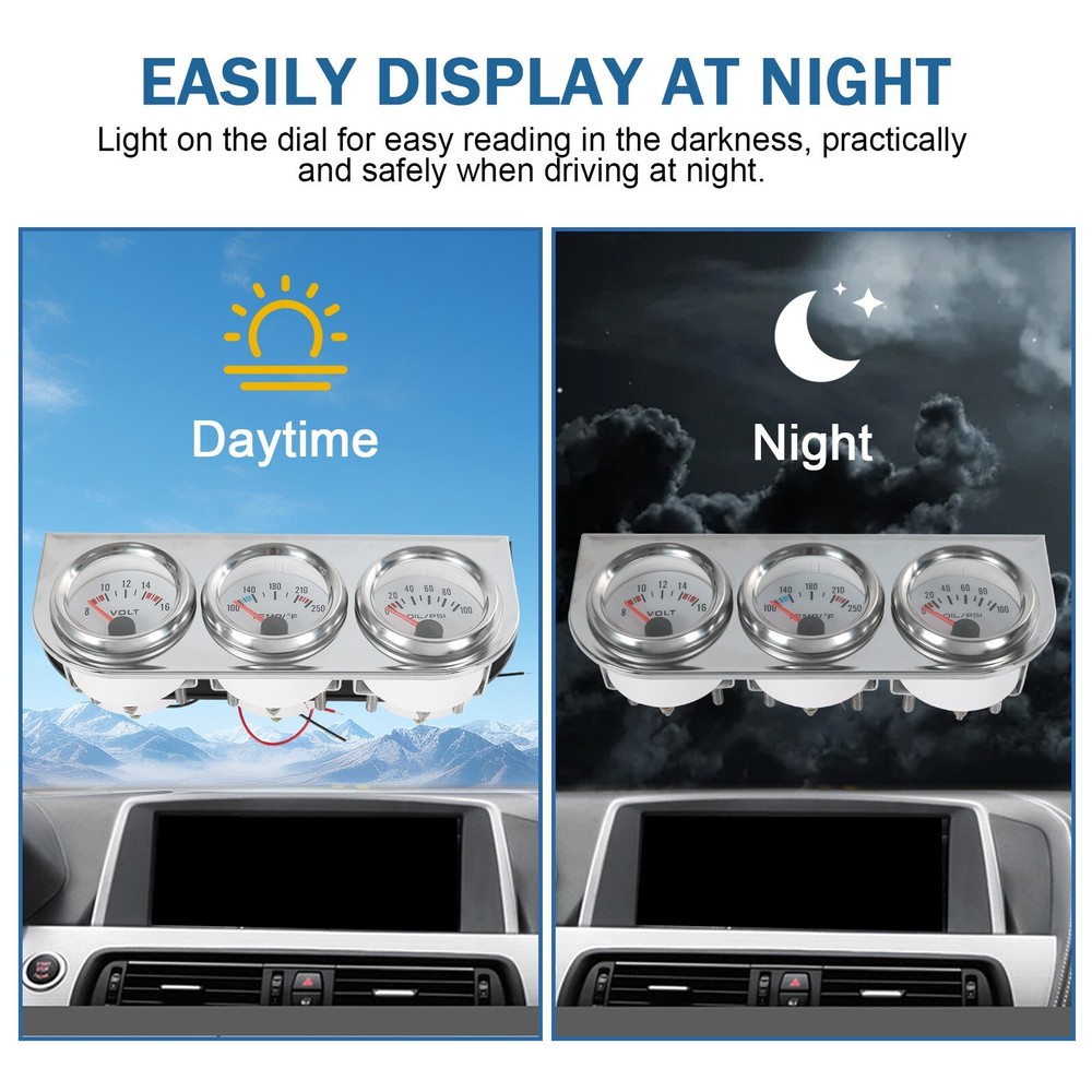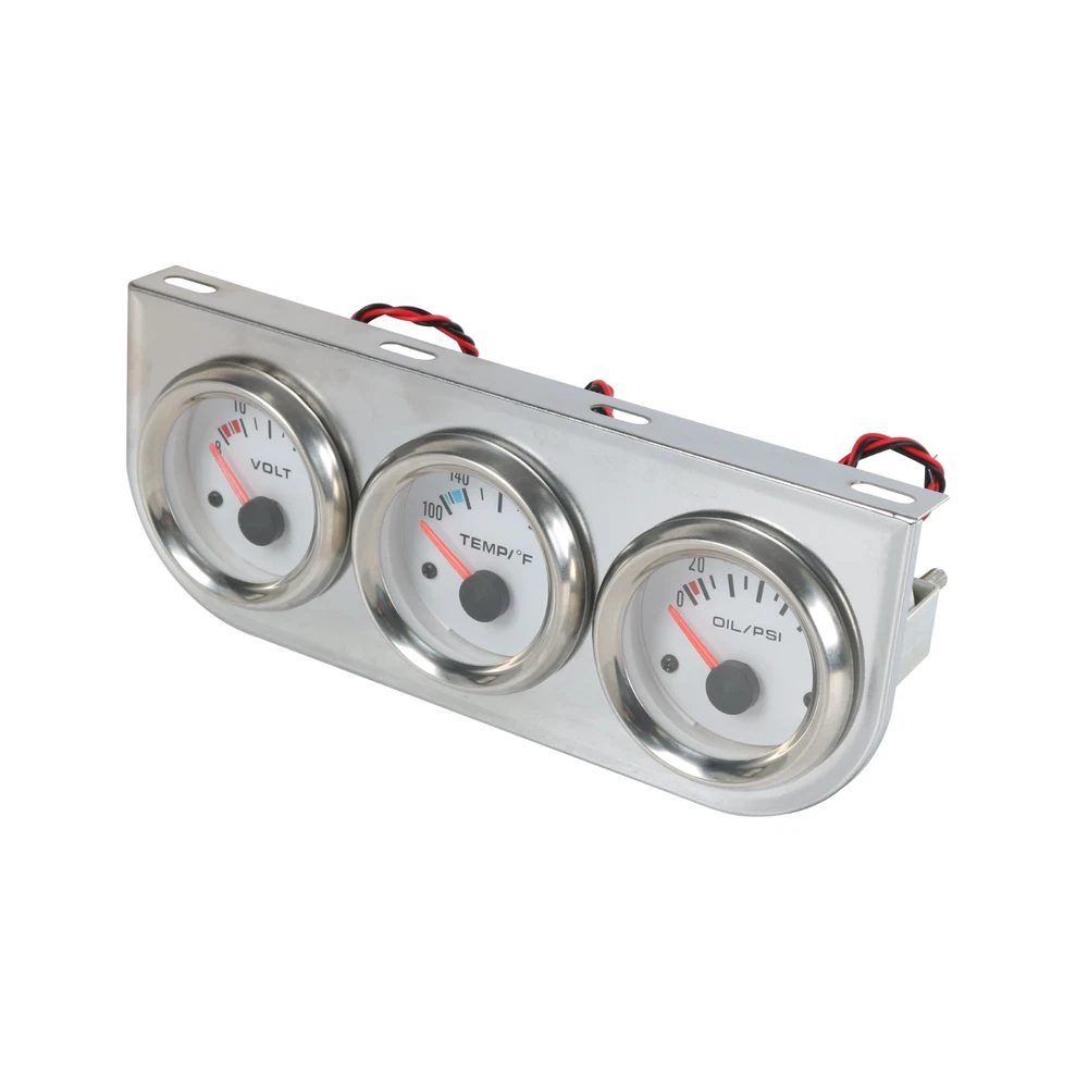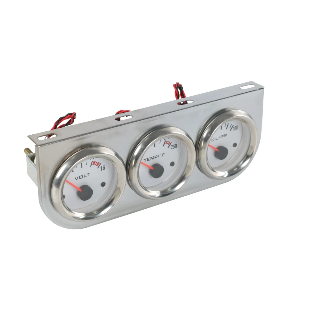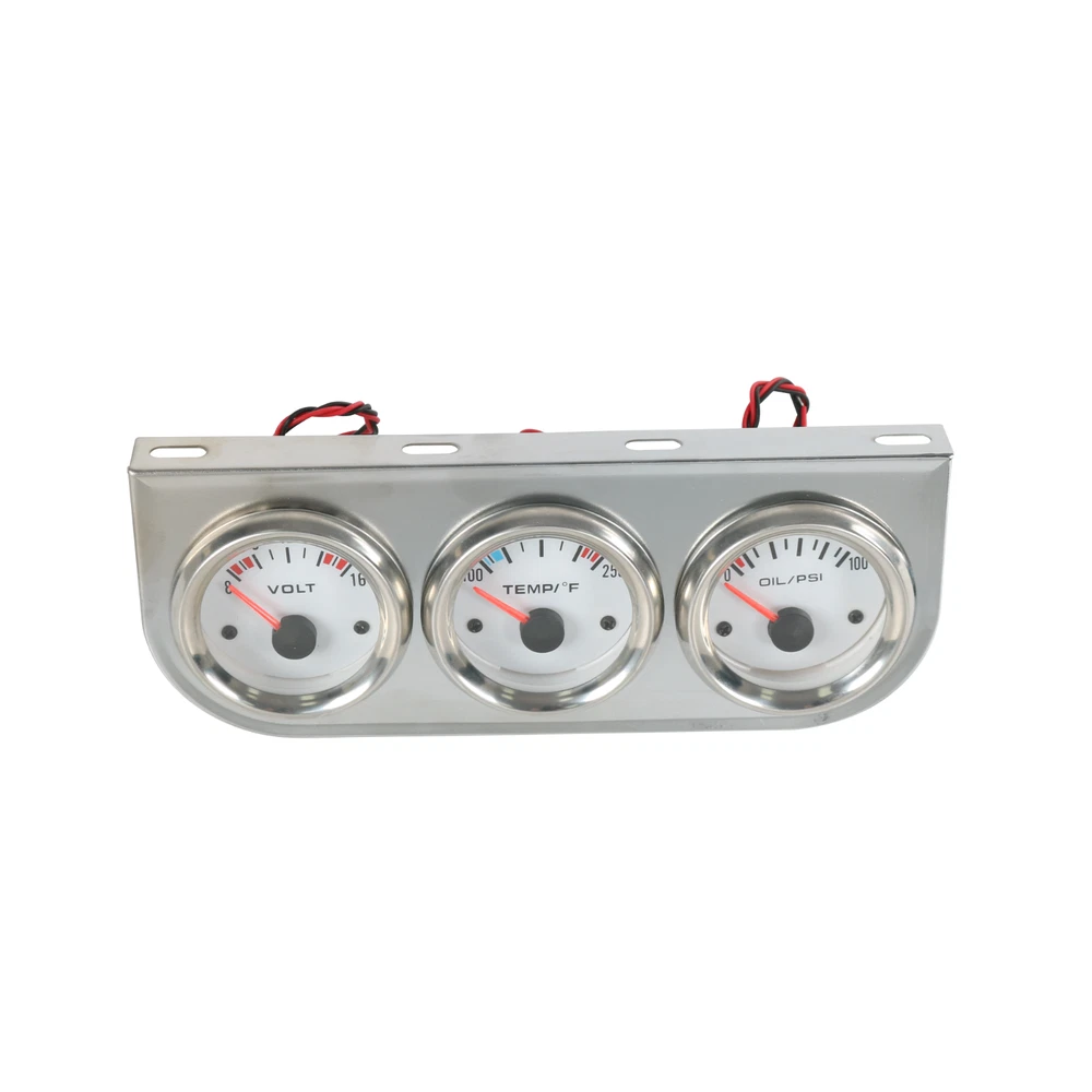 Universal 2'' 52mm Chrome Volt Water Oil Pressure Triple 3 Gauge Set Gauges Kit ★ 1 Year warranty, long durable life ★ Fast and Free Ecomomic/Standard shipping Manufacturer: JDMSPEED Application: This item is universal fit for most 12V vehicles Specification: Color: Chrome housing, white face, red needles Size: Like the picture show Water Temp Gauge: 100 to 280 ℉ Volts Gauge: 8V to 16V Oil Pressure Gauge: 0 to 100 psi Size of Sensor: Z 1/2 Features: Universal Chrome 3-Gauge Mechanical Kit Includes oil pressure, voltage, and water temperature. Gauges are illuminated. Installation kit included with everything needed to install. PS: Ship items within one working days All parts are in stock and ready to ship The part you see is the part you receive Standard size, perfect match for your vehicle All parts are fully inspected and professionally packaged We respond to any and all buyer questions or issues Shipping and Payment Return Warranty Delivery Warning Shipping and Payment We ship all the packages within 1-2 business days. Our shipment arrive your address will take around 2-10 business days. Orders placed on Saturday or Sundays should be processed and shipped on Monday. Hope you can understand. If you didn't received packages in 15 business days, please contact us freely, and we will check and solve it. Please purchase and pay for the item through eBay auction, and do not manually send us a PayPal payment. Return 60-day money back guarantee We offer a 6-month warranty for most of our products that starts on the original purchase date. If you are not satisfied with our product, most items can be returned in their new/original/unworn condition within 60 days. We will offer a refund or exchange (Shipping and handling fees are not refundable). A 15% restocking fee ($10 minimum) may be applicable. Items that have been worn, misused, abused, damaged, and/or altered beyond warranty coverage and period will not be refunded or exchanged. Warranty This item have 1-year warranty. In the event the item should fail due to manufacturing defects during intended use, we will replace the part by free. We only warranty cost of item parts. Any installation or other fees are non-refundable. Note: Any modifying the item of any kind without contacting us will void any and all warranty coverage for this item. Please contact us before modifying the part so that we have the opportunity to correct the situation. You can contact us by ebay message to get the full text of the written warranty. Delivery We ship all the packages within 1-2 business days. Arrival time for the USA buyers: about 1-6 business days. Arrival time for Canada buyers: about 3-10 business days. Please allow 3 to 6 working days to receive your item(s). International Buyers - Please Note: Import duties, taxes, and charges are not included in the item price or shipping cost. These charges are the buyer's responsibility. Please check with your country's customs office to determine what these additional costs will be prior to bidding or buying. Warning This product can expose you to chemicals including Chromium (Hexavalent Compounds), which is known to the State of California to cause cancer, and birth defects or other reproductive harm. For more information, go to California goverment website, you can search California P65Warnings. Type Instrument Cluster Manufacturer Part Number 100816 Other Part Number Voltage Meter + Water Temp + Oil Press Gauge Interchange Part Number Universal Chrome 2inch 52MM Triple Gauge Kit Size 2'' 52mm Feature Chrome Display Type Analog Items Included Temperature Gauge, Oil Pressure Gauge, Mounting Hardware Needle Color Red Features Illuminated (Backlit) OE/OEM Part Number This item is universal fit for most 12V vehicles Unit of Measure Degrees Farenheit, psi Color Silver Brand JDMSPEED Manufacturer Warranty 1 Year