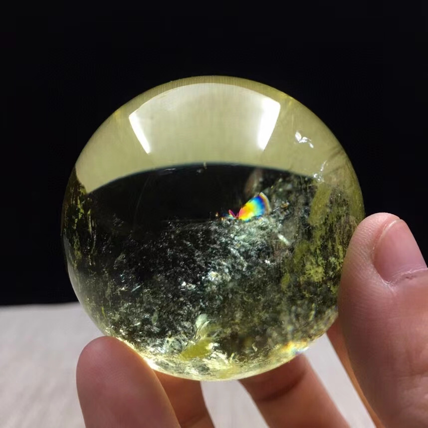 53mm AAA+ Natural Citrine Quartz Sphere Rainbow Crystal for Reiki Healing 210g