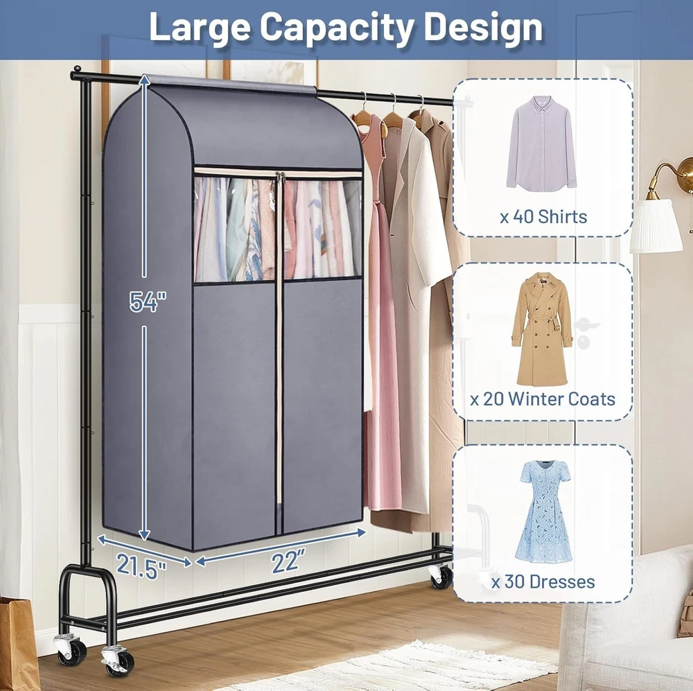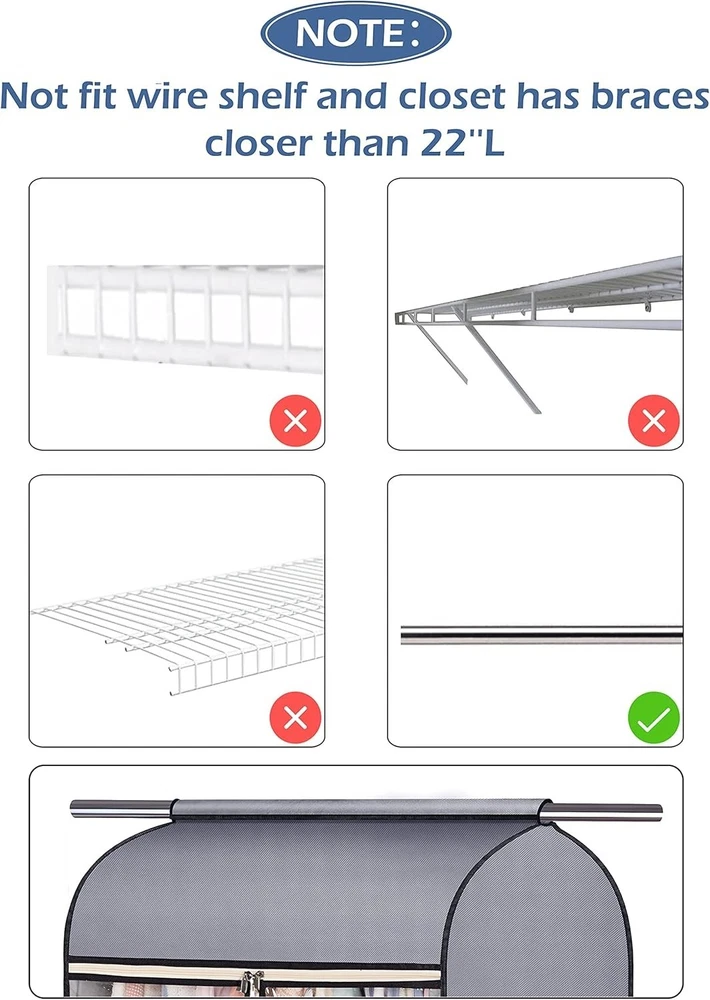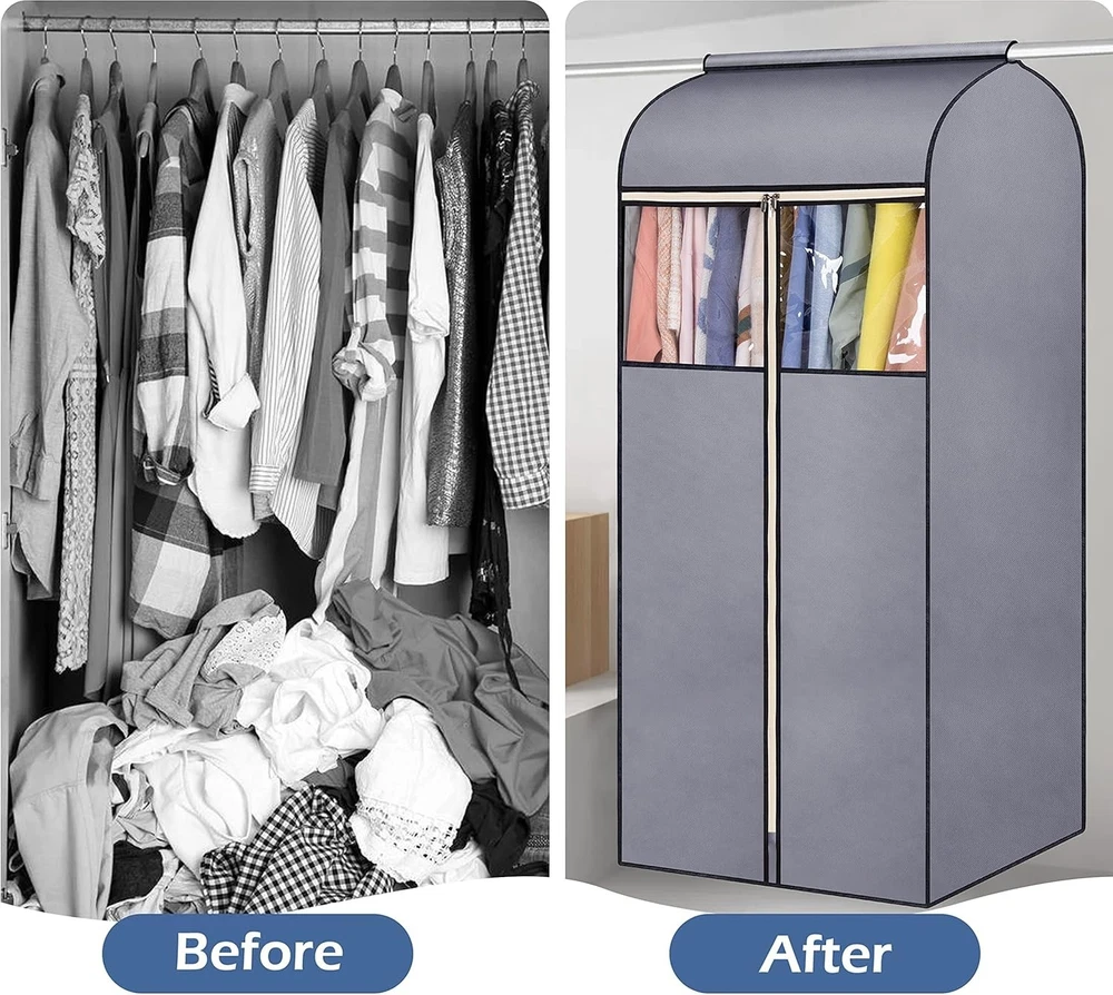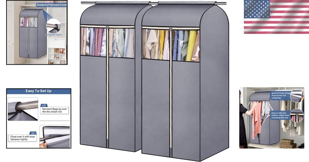 54'' Hanging Garment Bags - 2 Packs for Stylish Closet Organization & Protection ‹ › ‹ › ‹ › ‹ › ‹ › ‹ › ‹ › ‹ › ‹ › 54'' Hanging Garment Bags - 2 Packs Transform your closet organization and protect your garments with these elegant 54'' Hanging Garment Bags. Crafted for the style-conscious individual, each pack contains two bags tailored for spacious storage and protection. Product Features: Measuring 22L x 21.5W x 54H inches, spacious enough to accommodate 20-30 pieces of clothing, including ball gowns, suits, heavy winter coats, and down jackets. Top strong loop fastener secures the bag around your existing closet rod, preventing dust and dirt from entering. Simple set-up with no need for frames or bars; the top flap rests securely, while the loop fastener functions to hold the garment rack firmly in place. Clear PVC window allows for effortless visibility of contents without unzipping the bag, making organization a breeze. Durable 3-head metal zippers that operate smoothly, ensuring the bags completely close to keep your garments clean. Versatile design perfectly suited for use in wardrobes, closet racks, RVs, attics, basements, apartments, garages, and college dorms. Benefits: Elegant storage solution that enhances your closet aesthetic. Ultimate protection for formal wear and delicate garments against dust and damage. Easy access to your wardrobe, ensuring you can quickly find your favorite outfits. Perfect for maintaining order, adding both style and practicality to any living space. Why Choose Our Hanging Garment Bags? Elevate your closet organization while achieving luxurious garment protection with our 54'' Hanging Garment Bags. Their stylish yet functional design not only safeguards your precious clothing items but also adds a touch of sophistication to your storage solutions. With effortless setup, durable materials, and spacious designs, these garment bags are essential for the discerning individual who values both style and function. Don’t compromise on the care of your clothing. Invest in these hanging garment bags today for an organized, elegant, and clean closet experience. Shipping Free & Fast Shipping - We offer free shipping to most of the USA with a normal delivery time of 3-7 days. However, due to the current situation, additional delivery time (up to 3 weeks) may be required for some items. Alternative Carriers - We may use alternative carriers (e.g. USPS, FedEx, UPS, etc.) to ensure your package arrives safely and on time. Due to the use of multiple carriers, we are unable to provide a tracking number automatically. Handling Time - Orders are processed and shipped within 1-2 business days of receiving cleared payment. Shipping Restrictions - Shipping to Alaska, Hawaii, Puerto Rico, Guam, and other US territories may incur shipping charges or delivery restrictions. Please contact us before ordering, or your order can be refunded/cancelled. State Restrictions - There may be restrictions based on your state of purchase. For example, certain items may not be shipped to California due to state regulations. Contact for Tracking Updates - If you require tracking updates or have any concerns about the delivery of your order, please feel free to contact us, and we will be happy to assist you. Return 30-Day Hassle-Free Returns - We want you to be completely satisfied with your purchase. If you are not, you can return the item within 30 days of receiving it for a full refund or exchange. Easy Return Process - To start a return, simply contact us and we will provide you with a prepaid return shipping label and detailed instructions. Restocking Fee - There are no restocking fees for returns. However, the buyer is responsible for return shipping costs if the return is not due to a seller's error. Refund Processing Time - Refunds will be processed within 5 business days of receiving the returned item in its condition. Payment We accept all major credit cards, PayPal, and Apple Pay for your convenience. Your payment information is secure and encrypted to ensure a safe and seamless transaction. Please complete your payment within 3 days of purchase to avoid any delays in shipping. Feedback Your feedback is extremely important to us. We strive to provide the best products and customer service possible. If you are satisfied with your purchase, please take a moment to leave us a positive review. If you have any concerns or issues with your order, please contact us before leaving negative feedback. We are committed to resolving any problems and ensuring your satisfaction. Contact Us If you have any questions or concerns, please feel free to out to our customer support team. You can contact us through the eBay messaging system. We are available Monday to Friday, 9:00 am to 5:00 pm EST, and we will do our best to respond to your inquiry within 24 hours. Buy it now and enjoy a pleasant shopping experience! Unit Quantity: 2 Material: Fabric,Breathable Non-Woven Fabric Features: Dust-proof,Hanging,Zipper,Clear PVC Window Item Height: 54 Inches Item Length: Hanging Garment Bags Item Width: Hanging Garment Bags Type: Clothes Cover Size: Large Color: Gray Capacity: 20-30 Pieces Item Depth: 21.5 in Item Weight: Less Than 2 lb Number of Items in Set: Two-Piece Number in Pack: 2 Number of Compartments: 1 Shape: Rectangular