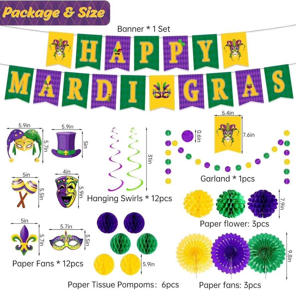 Store New Arrivals Add to Favorite View Feedback Contact 54 Pieces Mardi Gras Party Decorations and Supplies Set, Purple Green and Gold Party Decorations for New Orleans Mardi Gras,Fat Tuesday Decorations Description Item model number hz2212311514 Unit Count 38.0 Count Color Mardi Gras Pattern Mardi Gras Material Paper Country of Origin China Item Weight 13.4 ounces Theme Mardi Gras Manufacturer recommended age 14 years and up Occasion Birthday Package Dimensions 7.68 x 6.3 x 2.09 inches Included Components function(f) {var _np=(window.P._namespace("DetailPageProductOverviewTemplatesJava"));if(_np.guardFatal){_np.guardFatal(f)(_np);}else{f(_np);}}(function(P) { P.when('A').execute(function(A){ A.on('a:truncate:po-attribute-truncate-2:updated', function(data) { var isTruncated = !data.truncateInstance.getIfTextFits(); var seeMoreElement = document.getElementById('po-attribute-see-more-id-2'); if(seeMoreElement) { seeMoreElement.style.display = isTruncated ? '' : 'none'; } }) }); })); Carnival Banner Decoration, Double-sided Cardstock, Hanging Swirls, Letter Cards, Paper Lanterns, Installation Accessories See more Mardi Gras party decoration kit: You will receive 1 piece of carnival banner decoration, 12 piece double-sided cardstock in 6 designs, 12 piece of Mardi Gras hanging swirls in 2 color, 17 piece letter cards, 12 piece of paper lanterns in 3 colors, and other iinstallation accessories. Premium material: These Mardi Gras party ceiling decorations are made of metallic foil and premium card stock, which is not fragile and not easy to bend. The masquerade dancing background hanging swirls and strings can be used many times on different occasions. Attractive design: Mardi Gras decorations feature purple, gold and green, which are the classic colors of the carnival. Add crown, fleurs-de-lis, drum, top hat and other patterns to help create a party atmosphere. Compared with others, our package includes garlands, cards, banner, pompoms, hanging swirls and other ornaments to meet your needs. Easy to assemble: Each kind of decoration has its own packaging, with its own small tools for installation such as strings, double-sided tape, clips, etc. Almost all ornaments have holes for you to install. Wide application: Mardi Gras carnival masquerade dancing background is applicable to carnival, Fat Tuesday themed celebration, birthday, baby shower, wedding, anniversary, masquerade party and various indoor or outdoor parties with Mardi Gras theme. Package include: Mardi Gras party ceiling decorations* 54 pieces Size: As picture shown Material: Paper + PVC Color: Green, purple, gold Occasion: Mardi Gras, Fat Tuesday Notice: The colors of these compressed facial sponges may exist slight difference due to different screens. ABOUT US We offer the best prices around on high quality products. Our E-store includes media such as books, movies, music and games while offering electronics, toys, sporting apparel, clothing, tools, general home, garden items and more. SHIPPING We are always working hard to ensure your package arrives as soon as possible. Please understand that some factors like weather, high postal traffic, and the performance of shipping companies are outside of our control. We offer free shipping to the lower 48 states and ship within 2 business days of payment, usually sooner. We do not accept P.O. Boxes. Please provide a physical address. For shipping outside of the continental USA, we only use eBay's Global Shipping Program.The item is shipped to KY and then sent to the rest of the world. International customers are responsible for all duties and taxes. Continue to check out in order to calculate costs for shipping the item to your country. Messages regarding eBay's Global Shipping Program MUST be directed at eBay EXCLUSIVELY. RETURNS We offer a 30-Day Return Policy on items which you are not completely satisfied with. You have the option for a full-refund or an exchange of the item. No returns are available on items shipped outside of the USA. PAYMENT We accept PayPal. CONTACT US This page content is yet to come Please ad us to your favorite seller and visit again later Thank You CUSTOMER SATISFACTION We try our very best to make sure every customer is completely satisfied. If there's a problem, message us! We're happy to help. WE ACCEPT Copyright © 2021 AutoDS. | All Rights Reserved