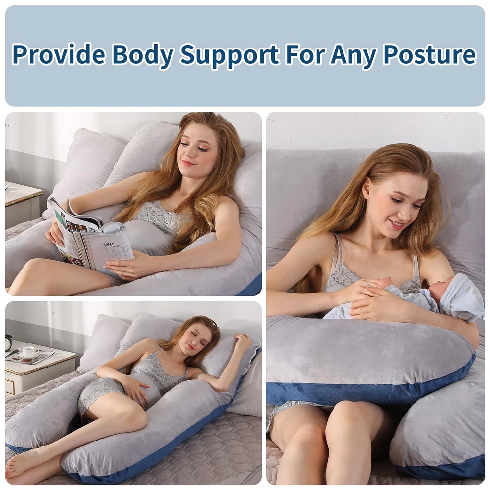 Sound like a familiar scene: You’re exhausted and can’t wait to crawl into bed, but when you do, your ever-growing bump is right there, creating a wedge between you and a good night’s sleep. While you might have dismissed a pregnancy pillow as an unnecessary purchase (after all, you have plenty of pillows already), a great pregnancy pillow is actually engineered to ease the discomfort of pregnancy and cradle you off to dreamland. Most support your belly, of course, but others target hip or back pain, because let’s face it: carrying a baby for nine months takes its toll on more than just your midsection. This pregnancy pillow help relieve stress, tension,aches, and pains from overworked and tired muscles and weight gain. The full body pillows support all area of the body. The softness of the materricals and the cushiness of the pillow stuffing give the maximum support and comfort needed during pregnancy. Besides, this pillow can be used for others that are not pregnant to help health issues and body aches. Even men can enjoy this pillow as they are not gender specific. Soft and cozy pillow. The U-shape pillow follows the natural contour and shape of your body for full support. It is actually engineered to ease the discomfort of pregnancy and cradle you off to dreamland. Premium filling material. High density and extra comfortable, this unique Bionic Polyethylene filling provides comfort, painless and sound sleep for side sleeping and retains fluffiness for longer use. Multi functional: This side sleeper pillow creates support for sleeping, reading, nursing, watching TV, and breastfeeding. A favorite for expecting mothers, husband, boyfriend and adults suffering from neck and shoulder pain, fibromyalgia, sciatica, poor posture, athletes in physical therapy or recovering from an injury, and anyone having a difficult time getting comfortable in the bed. Height adjustable.The double zipper design makes it easy to remove the filling and reduce the height if this body pillow is too high for you. Removable and washable pillow cover: For your health, we recommend you to wash the cover twice a month or once a week if it is very hot.