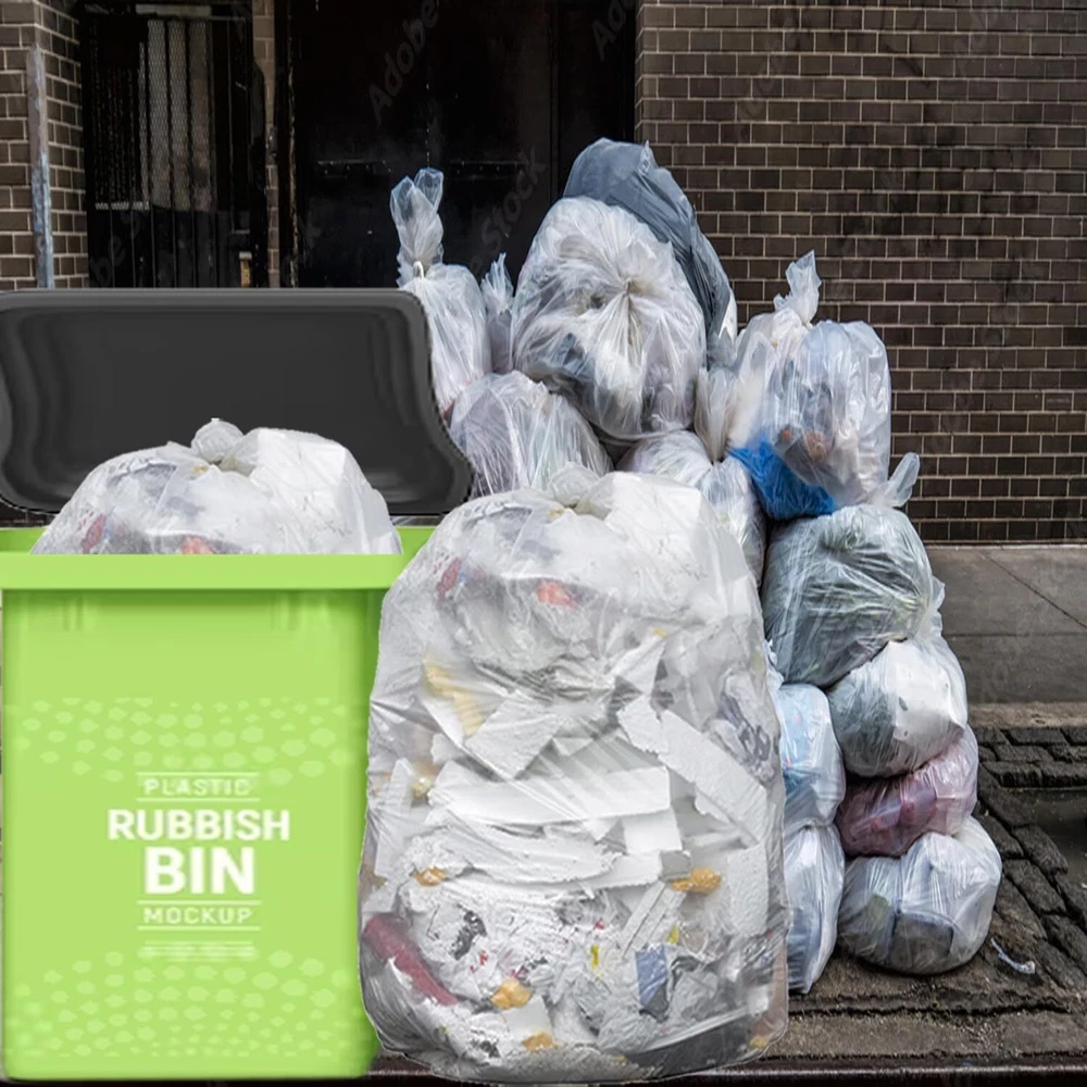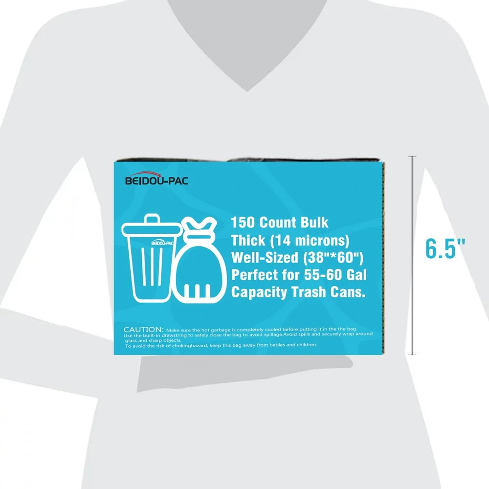 55-60 Gallon-Clear-Plastic-Recycling-Trash-Bag 1, Product information: 55-60 gallon large clear plastic recyclable garbage bags, Size: 38"* 60"x 14 mic, Total 150 clear bags bulk (25 PCS/ROLL , 6 CORELESS ROLLS/CTN), Perfect for 55-60 Gal Capacity Office, commercial, industrial or residential waste. 2, High-density polyethylene film, sturdy and durable,Unscented, Hygienic and Safe. 3, High quality customized garbage bags design, Star seal at the bottom can increase the load carrying capacity, leak-proof trash bin liners does not break or tear easily. 4, Open simply and easily, Coreless rolls in dispenser box for easy use and neat storage, easy to pull apart and easy to open.It can also be used as a gift wrapping. 5, Smart Ideas for Your Home, Commercial, Industrial:This Clear bag is great for use in various settings such as home, kitchen, outdoor industrial garbage can liner for custodians, landscapers, lawn bags, outdoor bins and more. see through bags bulk value pack, With our bulk options, you'll have plenty of bags for months to come.