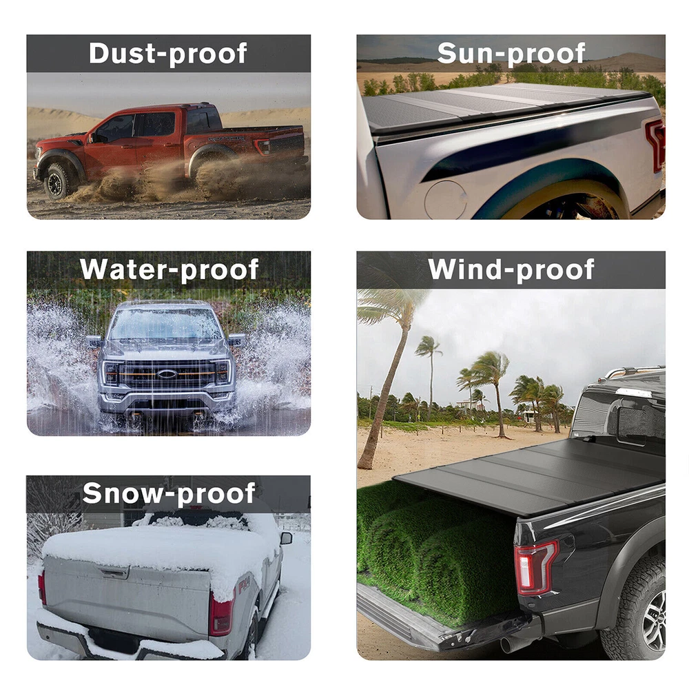 Shop Contact Feedback Store Categories Store Categories Wheel Hub Bearing Shock Struts Air Intake Manifold Auto Tools Air Intake Tube Engine Valve Cover Headlights Tail Lights Fuel Pumps Fuel Injectors Oxygen Sensor ABS Sensor Air Flow Sensor Distributor Radiator Fan Mirrors Carburetor VVT Valve Exhaust Manifold EGR Valve Water Pump Bed Tonneau Cover Sun Visor Control Arm Nox Sensor Other Installation Guide: ONE YEAR WARRANTY Please measure your truck bed length and make sure you have the correct model before ordering! Application: 2007-2024 Toyota Tundra 5.5' / 66.7" Crew Max Bed Description: Comes fully assembled with all hardware needed to install Straps secure the cover on both sides for driving with the cover open. Cover can be removed quickly and effortlessly to offer 100% access A simple latching system allows you to quickly open and close the tonneau cover Cover is secured by quick release clamps. Keeps your equipment inside your bed dry When the tailgate is closed, your belongings are safe Cover can be washed with soap and water Features: 100% Brand New Package include: 1 X 4-Fold Hard Truck Bed Tonneau Cover All hardware for installation Material is FRP+PP honeycomb Perfect Material 1. Impact Resistance : Fiberglass Reinforced Polymer ( FRP) shell achieves 20KJ/m² impact strength (equivalent to 15kg weight drop from 1.5m), surpassing aluminum. 2.Thermal/Rigidity Performance: FRP dual-layer skin stays 40% cooler than aluminum, with 35% higher rigidity for superior deformation resistance. 3.Surface Durability: Polymer-optimized surface offers 3X better scratch resistance vs. aluminum/standard fiberglass. 4.Lightweight Load-Bearing: PP honeycomb core reduces density by 60%, boosts compressive strength by 28%, enabling 350 lbs capacity (75% higher than previous 200 lbs design). 5.Ultra-Slim Profile: Sub-1-inch thickness retains 92% under-tonneau storage space, ideal for pickup truck hidden storage. Shipping Return Warranty Customer Service Shipping Handling time: 1-3 day Shipping Cost : Free to US Shipping time: Business days in USA After shipping, the tracking number available by message We ship to eBay address Return No returns are accepted without an RMA number Refund is valid within 60 days after the date delivered Refund will be given as money back or replacement The money less the freight cost will be refunded due to their own fault Item must be returned in original packing same as reached Warranty Warranty after receiving Buyers pay return and replacement shipping cost We will not refund any labor cost Customer Service Any question will be replied within 24 hours except the weekend and holiday. Please contact us by email before opening return, we will try our best to help you. On Jun 23, 2025 at 23:02:21 PDT, seller added the following information: